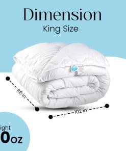 Edredón de pluma de ganso Cozy Dream de East Coast Bedding en tamaño King 86×102 pulgadas, perfecto para todas las estaciones. Este edredón pesado ofrece un calor suave y reconfortante, ideal para aquellas personas que tienden a sentir calor al dormir. La cubierta exterior está hecha completamente de 100% algodón, proporcionando suavidad, transpirabilidad y comodidad. El relleno de plumón y plumas de ganso de alta calidad garantiza la máxima limpieza, ausencia de olores y un edredón suave en la piel. Disfruta de la frescura superior de este edredón con una cubierta de lujo de 100% algodón orgánico. Disponible en cuatro tamaños para que encuentres tu elección ideal de edredón. Viene en una bolsa de plástico para protegerlo del polvo y el agua, convirtiéndolo en un regalo perfecto para tus seres queridos. Limpieza fácil: pretrata las manchas y lava en un ciclo suave y cálido con un enjuague extra, luego seca al aire o utiliza la secadora en un ajuste bajo/secado al aire.