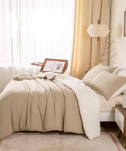 Edredón de Plumas BOHOPOPM Warm Ultra-Soft Sherpa Queen con