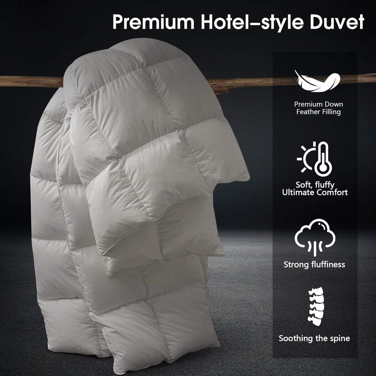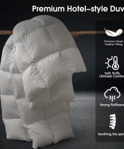 Hemos investigado y probado repetidamente de acuerdo a las necesidades de nuestros clientes para mejorar nuestro material de edredón y resolver una serie de problemas, como la cáscara dura del edredón, ruidos al voltearlo y que las plumas se perforaran fácilmente. Este es un edredón de plumas que se puede utilizar en la habitación, para acampar, en verano e invierno, y como regalo. Es ligero y fácil de transportar. El edredón está hecho de un suave material de poliéster-algodón que es cómodo y delicado al tacto contra la piel. Ofrece un equilibrio perfecto entre peso y calidez para garantizar una comodidad toda la noche. Cuenta con 4 trabillas en las esquinas y 4 lazos centrales, así como costuras doblemente cosidas para una durabilidad duradera. Su estructura de caja de laberinto 3D distribuye uniformemente el relleno para mantenerte cálido y acogedor toda la noche. Se recomienda utilizar este inserto de edredón con una funda de edredón para maximizar su vida útil y obtener una experiencia más cómoda. Recomendamos que agite o golpee el edredón para restaurar su textura esponjosa y, si es necesario lavarlo, sugerimos que lo lleve a la tintorería o lo seque directamente en la secadora para su uso. No lo lave con agua. ¡Disfruta de la calidad de un hotel en la comodidad de tu hogar con este edredón de pluamashipoalergénico y transpirable!
