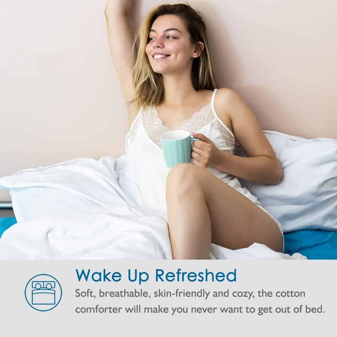 4. Construcción de Calidad: Acolchado de caja de diamante cosido a través de un patrón único para evitar que el relleno se desplace sin agruparse ni zonas frías; 4 bucles en las esquinas aseguran la funda de edredón; bordes con ribete de tela y doble pespunte para mayor durabilidad.