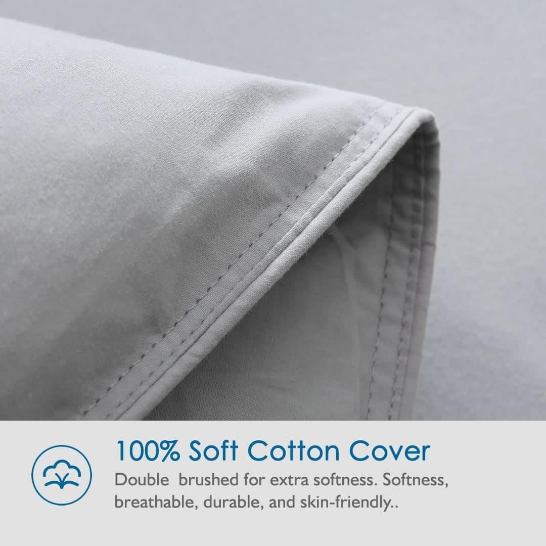 1. 100% Algodón Orgánico: Cubierta ultra suave de 100% algodón orgánico con un acabado ligeramente cepillado para una suavidad adicional, certificado OEKO-TEX para un ambiente de sueño tranquilo y sereno.
