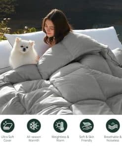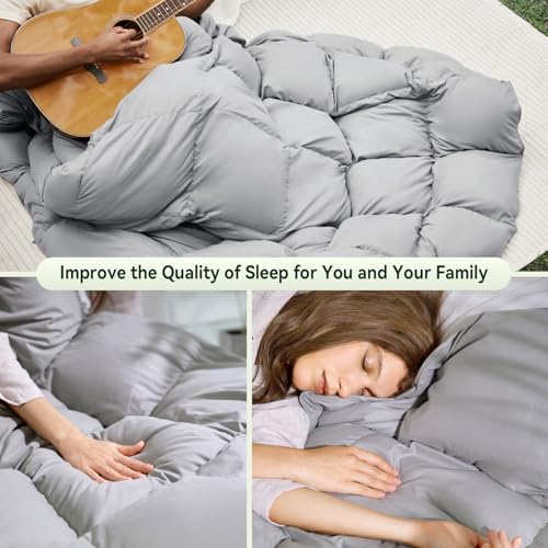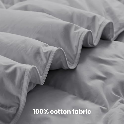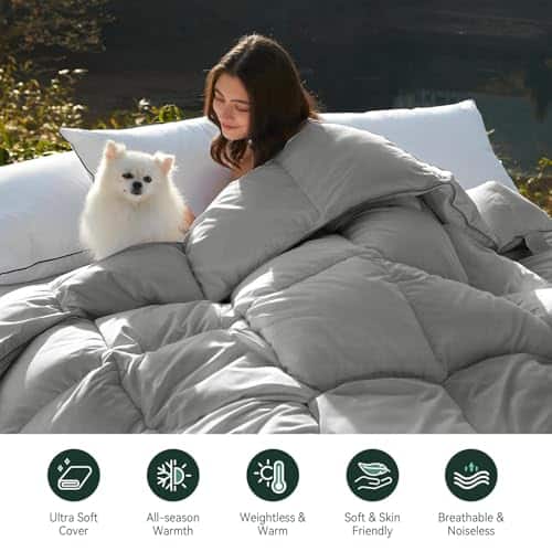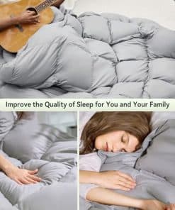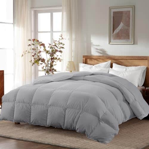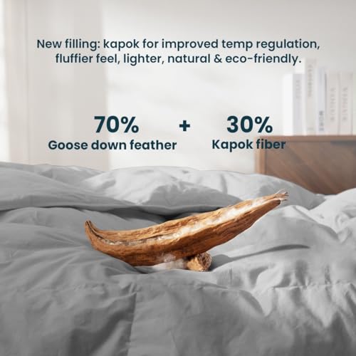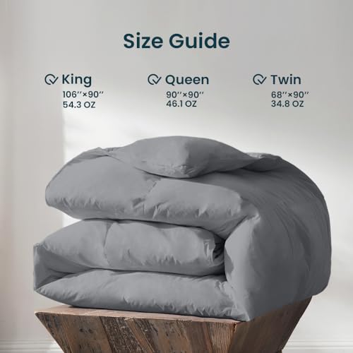 Nuestro Edredón de Plumas de Ganso en tamaño Queen, en color Gris, de 90×90 pulgadas, ofrece comodidad durante todo el año. Combina el peso y el grosor ideal para una esponjosidad y comodidad lujosas en todas las temporadas. Experimenta el lujo de un hotel en tu propia habitación, versátil como un edredón independiente o como un inserto de edredón. Certificado por RDS, ISO y OEKO por su calidad superior y seguridad. Disfruta de la comodidad superior de nuestro edredón de plumas de ganso, mejorado con un 30% de fibras naturales de kapok para mayor suavidad y esponjosidad. La mezcla perfecta de 70% plumas y plumón de ganso, 30% kapok garantiza una calidez ligera y transpirable durante todo el año. Con un generoso peso de relleno de 46oz, experimenta una calidez y comodidad media. Duermes en la máxima comodidad con nuestra tela de algodón 100%. Diseñada para absorber la humedad y ser transpirable, proporciona una experiencia de sueño lujosamente suave y silenciosa. Nuestro edredón cuenta con un diseño de caja de tabique de alta calidad que mantiene el relleno distribuido de manera uniforme y garantiza una durabilidad y calidez duraderas. Sin desplazamientos, sin agrupamientos. El dobladillo con aguja reforzada y las cuatro pestañas de las esquinas aseguran que el edredón permanezca en su lugar, garantizando que el edredón mantenga su forma perfecta dentro de cualquier funda para edredón. Fácilmente mantén la sensación fresca y esponjosa de tu edredón con lavado a máquina en ciclo suave con agua fría y secado en secadora a baja temperatura. Usa una funda para edredón para extender su vida útil. Disfruta la comodidad duradera de nuestra ropa de cama de lujo, diseñada para la facilidad y la elegancia.