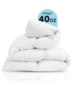 1. EDREDÓN PESADO – El tamaño individual del edredón enfriado de plumas de ganso mide 68 x 86 pulgadas con un peso de relleno de 40 Oz. El esbelto edredón de plumas de ganso ofrece un calor suave, ideal para la mayoría de las personas que tienden a dormir calientes, sirviendo como un versátil edredón de plumón pesado de todas las estaciones.