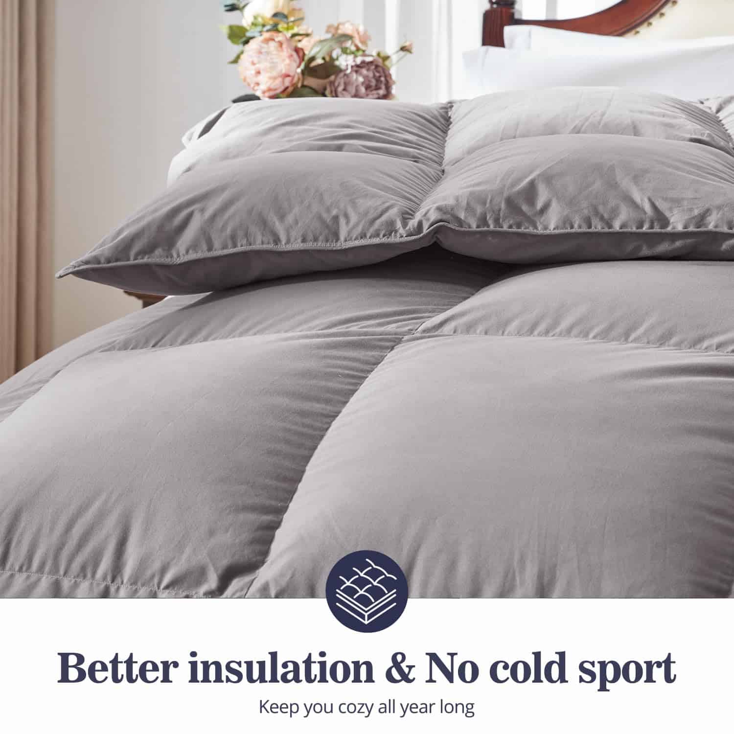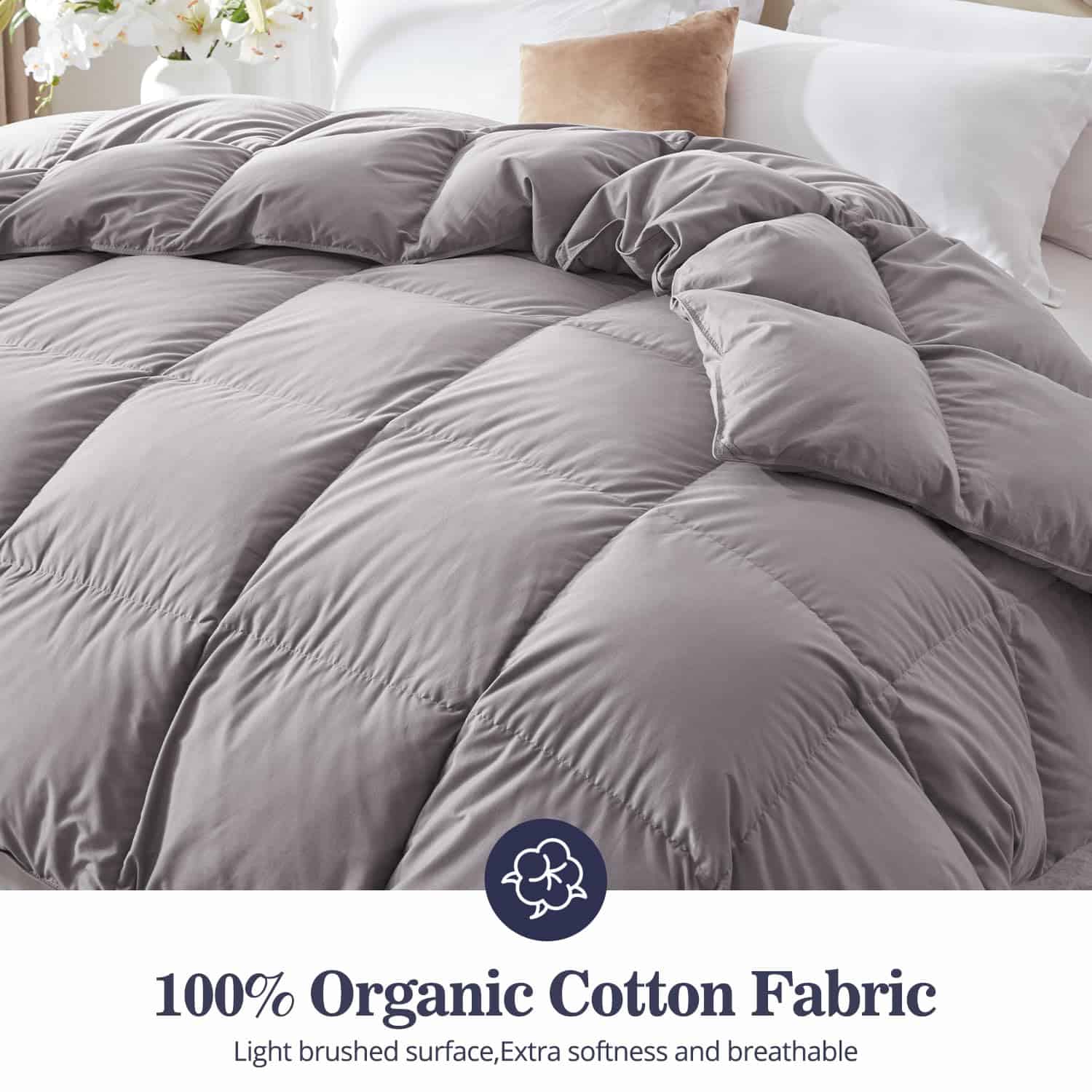 1. TRANSPIRABILIDAD MEJORADA Y REGULACIÓN DE TEMPERATURA Nuestro edredón de plumón tamaño twin mide 68×90 pulgadas. Específicamente diseñado para envolver a los durmientes en un abrazo seco y cómodo. Proporciona una excelente transpirabilidad, asegurando una adecuada circulación de aire durante toda la noche. Esto asegura que la temperatura de su cuerpo se regule, manteniéndolo cómodo sin sobrecalentarse.