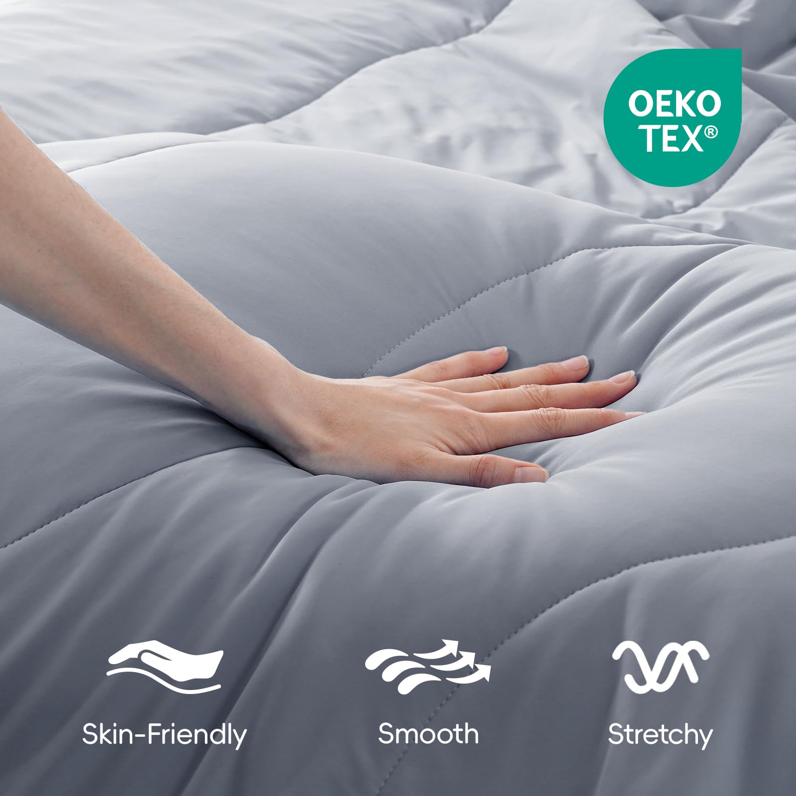 2. TEJIDO EXQUISITO: Edredón transpirable de suave tejido elástico. El alto estándar del proceso de tejido con la proporción científica de tejidos de nailon y spandex asegura que la superficie del edredón esté texturizada de manera hermosa y ordenada, así como el tratamiento cuidadoso de los bordes, lo que mejora enormemente el confort. Cada detalle se une para formar un edredón fresco de alta calidad, de modo que al tocarlo profundamente, puedes sentir la experiencia única de la suavidad sedosa máxima.