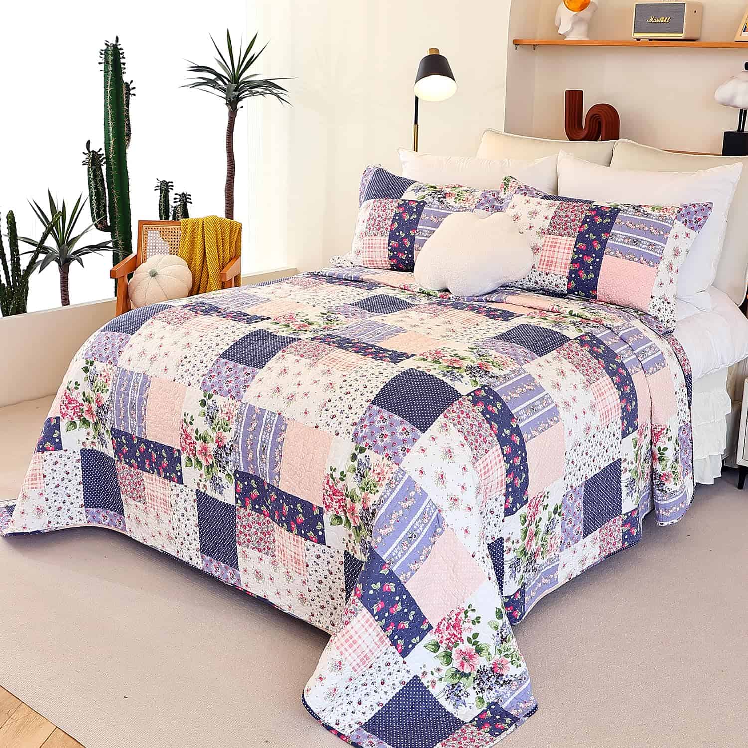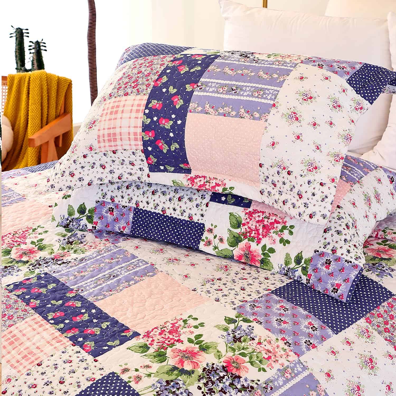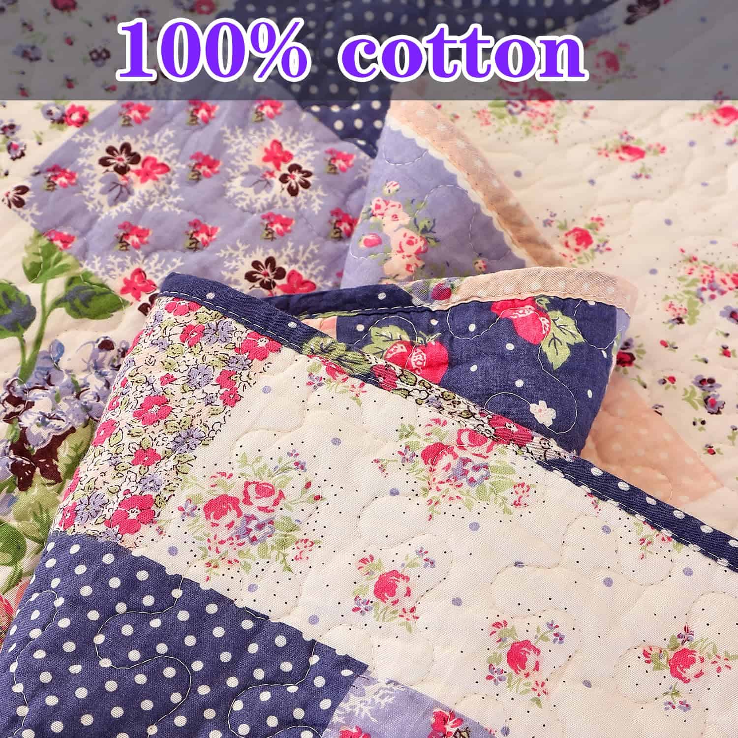 1. MATERIAL PREMIUM: Cubierta 100% algodón suave y Relleno 90% algodón + 10% poliéster. Material transpirable e higroscópico que garantizará la salud de tu piel. Resistencia a la decoloración que te garantiza una buena noche de sueño. El edredón ligero y delgado es una opción ideal para vestir tu cama en primavera, otoño o veranos bochornosos, o colocado sobre un edredón mullido en esos días fríos. 2. PATRÓN Y ESTILO: El juego de cubrecamas de 3 piezas tiene acolchado de vermicelli y un diseño especial con extremos ribeteados con volantes. El edredón de algodón prelavado lleno de algodón natural garantiza la suavidad y mejora el gusto de tu ropa de cama. Las costuras reales con un patrón de bordado introducen la frescura de un jardín interior y actualizan tu dormitorio con este hermoso ramillete floral. 3. TAMAÑO Y CUIDADO FÁCIL: Tamaño Queen – 92 96 pulgadas. Diseñado para la vida diaria, este edredón ligero básico se puede lavar a máquina. Lavar a máquina en agua fría en un ciclo suave, luego simplemente secar al sol o secar a baja temperatura, de esta manera el edredón de cama podrá mantener mejor su calidad, color original y comodidad. 4. MÚLTIPLES FUNCIONES PARA TODAS LAS ESTACIONES: Este hermoso conjunto de edredones de retazos florales se puede utilizar como edredón, cubrecamas, colcha o cubierta de cama. En invierno, puedes colocar el edredón sobre el edredón nórdico para darte más calor. En verano, puedes usar el edredón como edredón nórdico. Este edredón es ligero y portátil, también se puede utilizar al aire libre como para viajes, salidas, camping, en el auto o para echarse una siesta en la oficina. 5. PAQUETE: 1 Edredón Queen (92″X96″) + 2 Fundas de Almohada (20″X26″). El inserto de la almohada no está incluido. EVENHUG suministra directamente de fábrica y puede ajustar y controlar rápidamente el material y la calidad. Respaldado por un equipo de diseño fuerte y profesional, un gran departamento de postventa y un estricto Grupo de Control de Calidad, puedes obtener la mejor calidad a un precio muy razonable. Para prometer la satisfacción al 100%, no dudes en contactarnos en cualquier momento que tengas problemas.