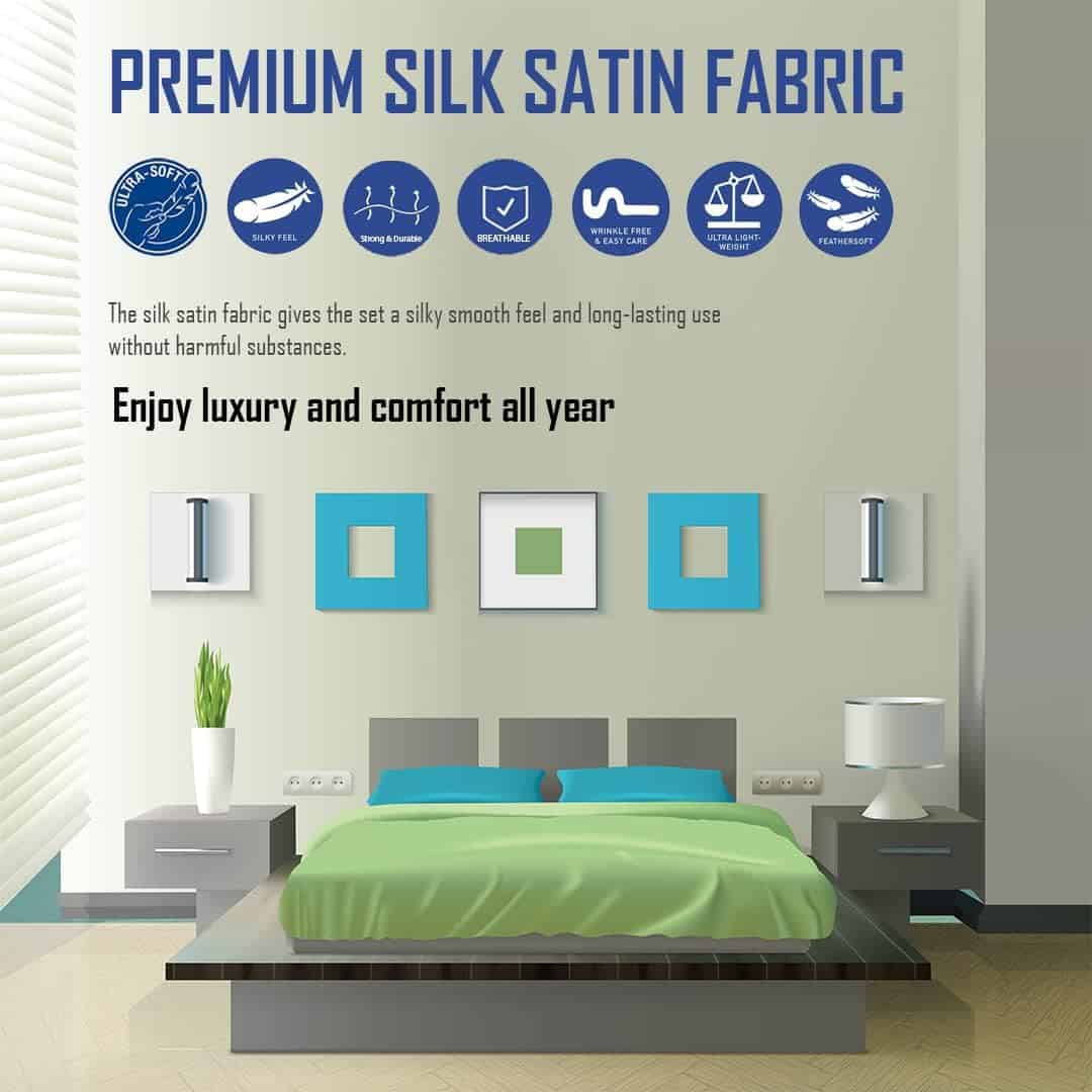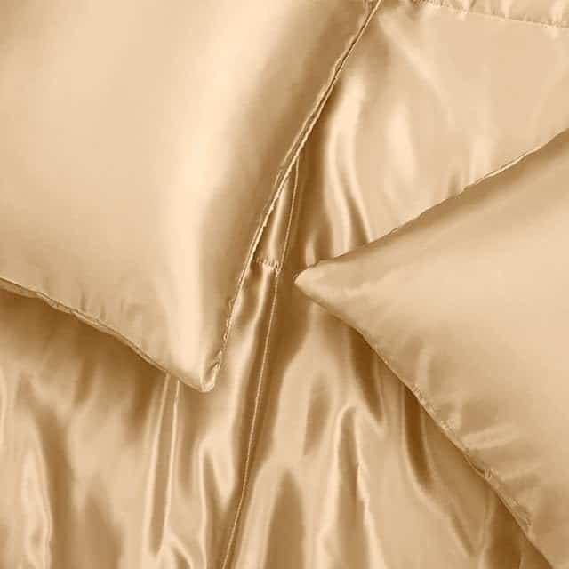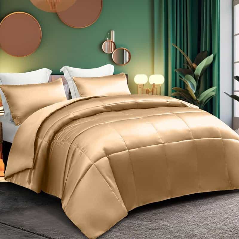 ¡Edredón de Seda Satinada! La combinación de seda satinada imitada combina las ventajas de la seda y los materiales artificiales, repleta de textura de lujo. La apariencia de la tela es suave y elegante, como el brillo de la perla; Súper suave, suave y cómoda, flexible. La textura también es relativamente fina, se siente crujiente, cuidado de la piel fresco en verano. El color es extra brillante y hermoso, es ideal para decorar una habitación de estilo lujoso y encantador en todas las estaciones.