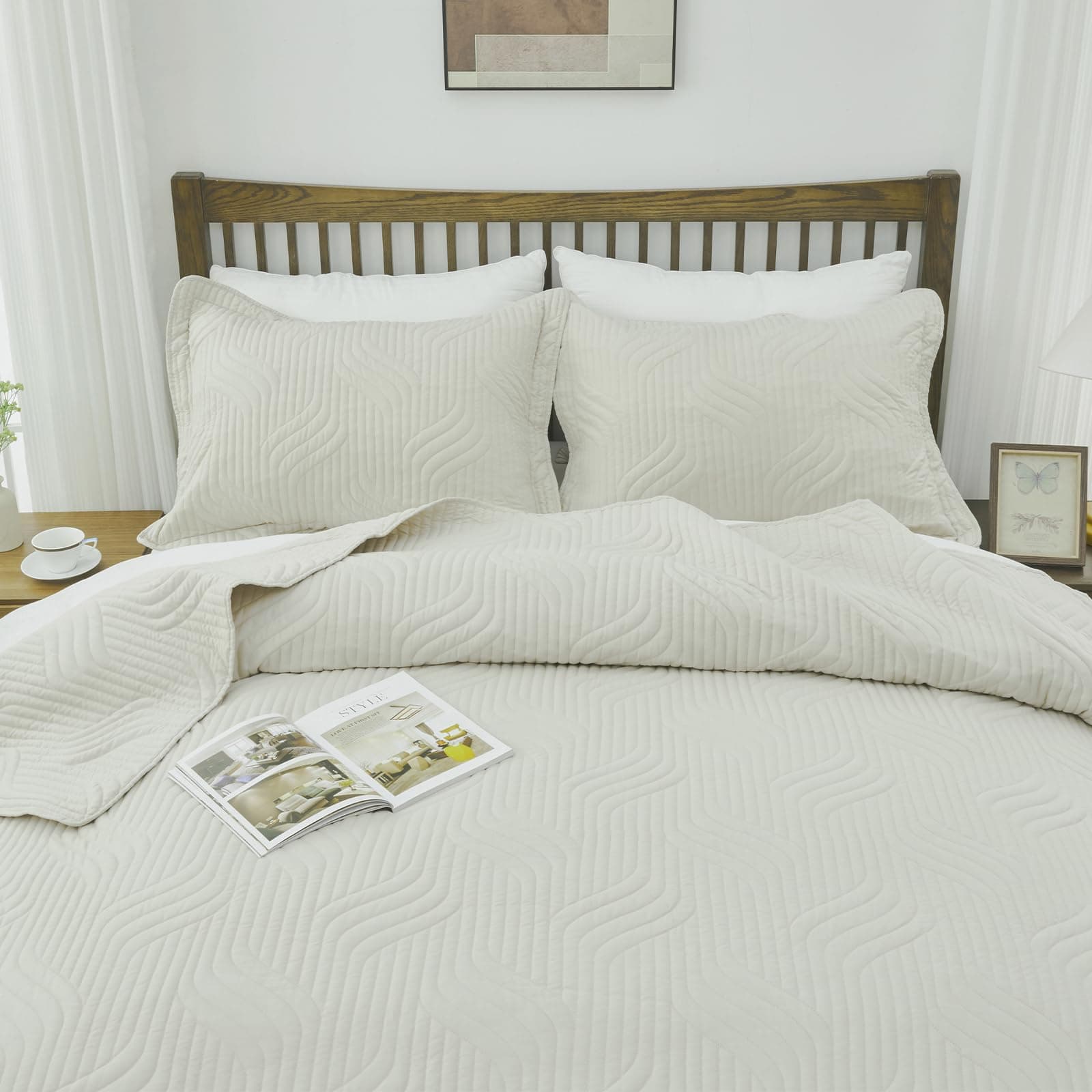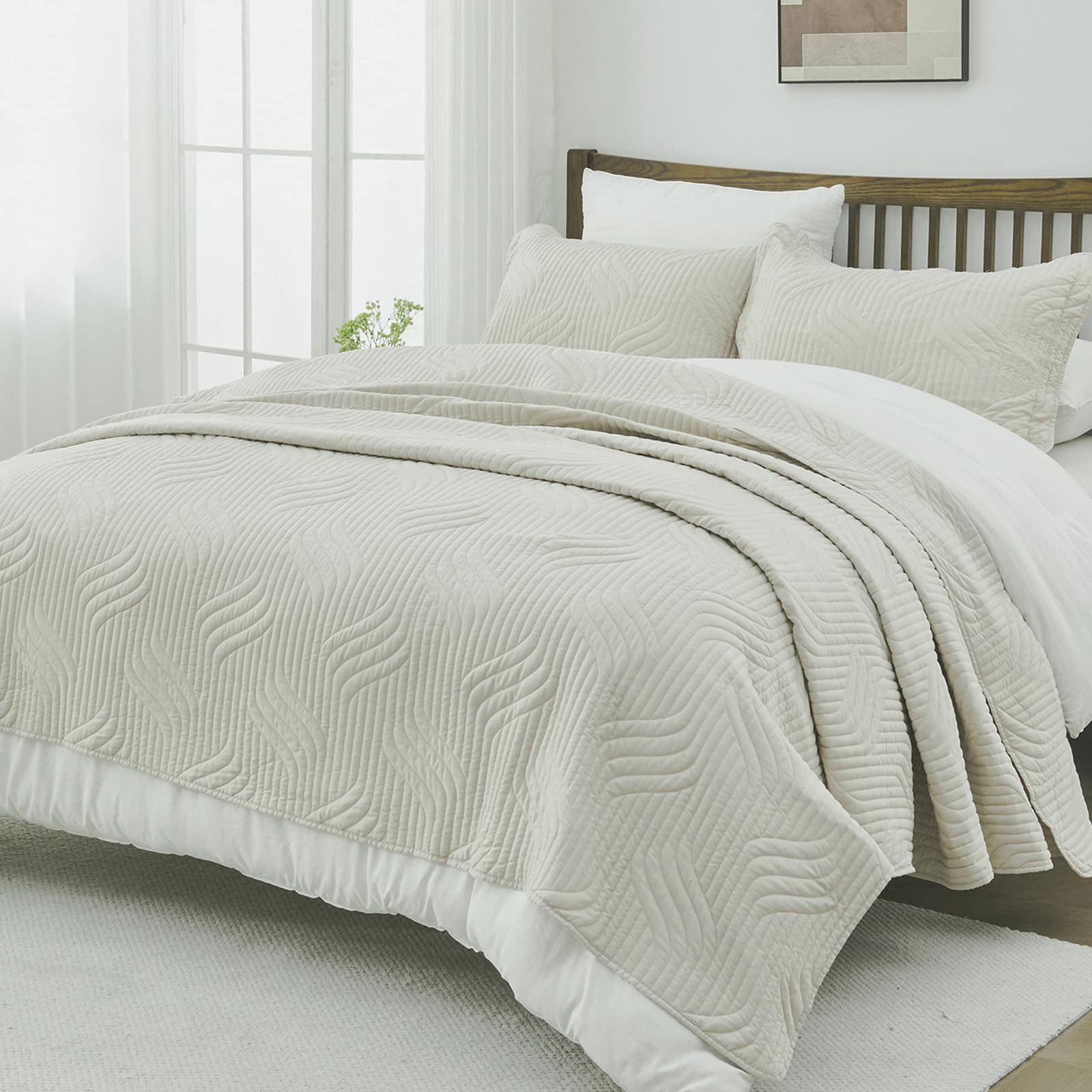 Edredón de tamaño Queen CozyStitch – Edredón -Beige Claro