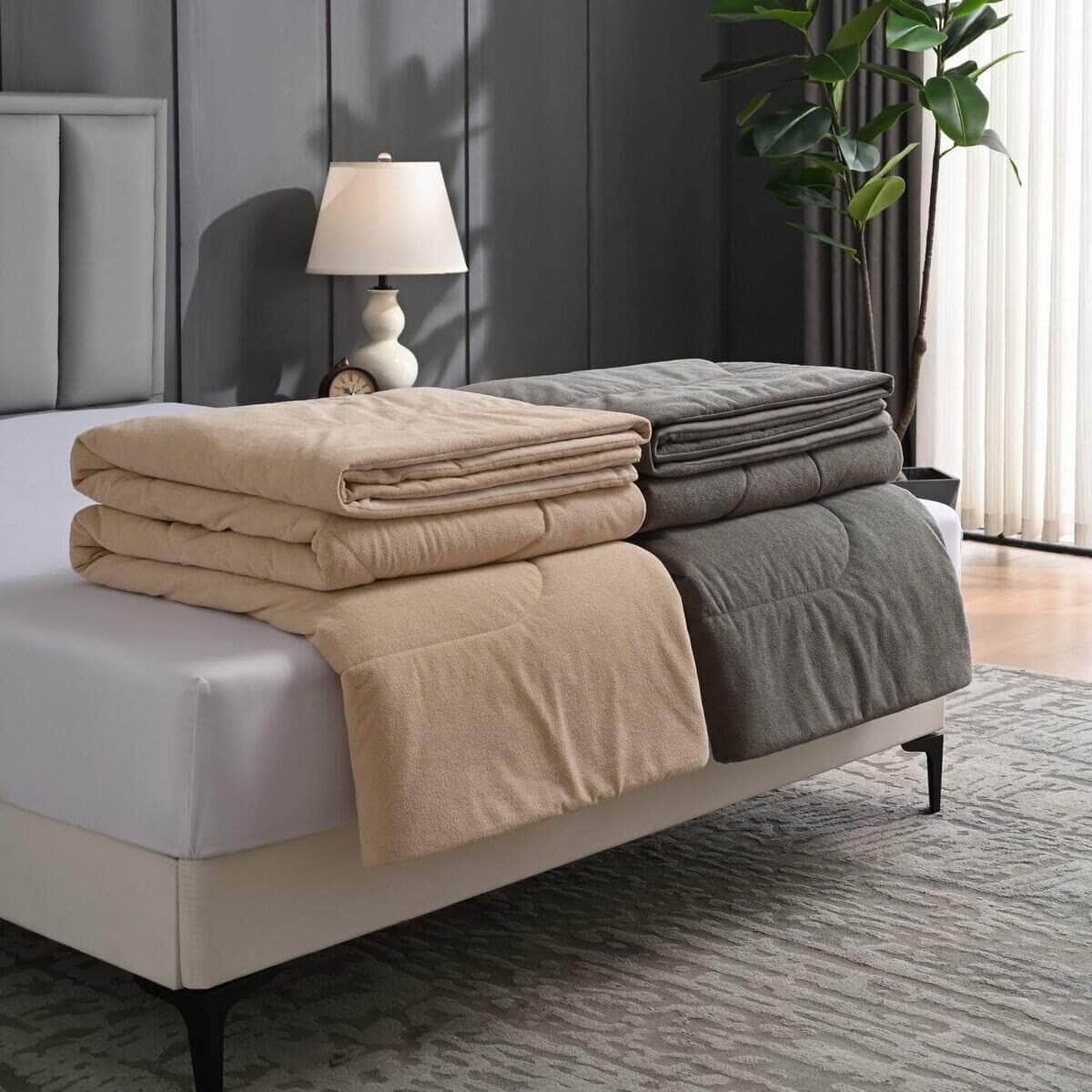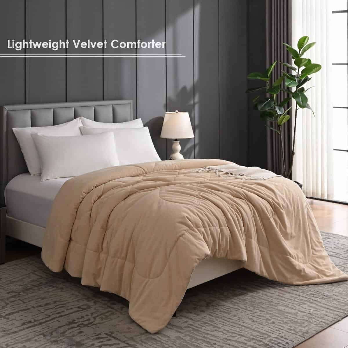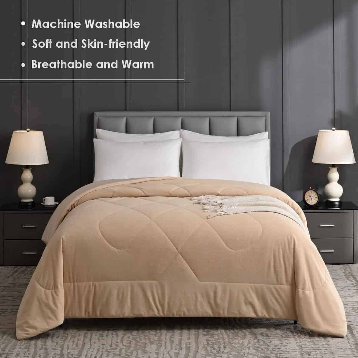 Edredón de Terciopelo Tamaño Queen, Reversible, Color Taupe para Todas las Temporadas, Transpirable y Amigable con la Piel, Suave y Acogedor, Lujo Cálido – 90″X90″. El tejido frontal es de Terciopelo de Alpaca que te mantiene abrigado en clima frío. El lado posterior es de un tejido de punto refrigerante que te brinda una sensación fresca cuando sientes calor. Puedes cambiar fácilmente entre ellos según tus preferencias. Tres tamaños: Twin: 60″ X 90″. Queen: 90″ x 90″. King: 108″ X 90″. Este edredón de alpaca no es pesado, puedes usarlo no solo para dormir, sino también para leer, relajarte o meditar. Transpirable y Suave, perfecto para dormir, acurrucarse, tiempo de barriguita. También es un buen regalo de cumpleaños, regalo de vacaciones, regalo de Navidad, regalo de San Valentín, regalo de aniversario, o regalo del Día del Padre o de la Madre. De fácil mantenimiento, lavable a máquina, lavar por separado en agua fría en ciclo suave. Usar detergente suave. No usar blanqueador. Secar a baja temperatura. No planchar. No lavar en seco. Retirar inmediatamente.