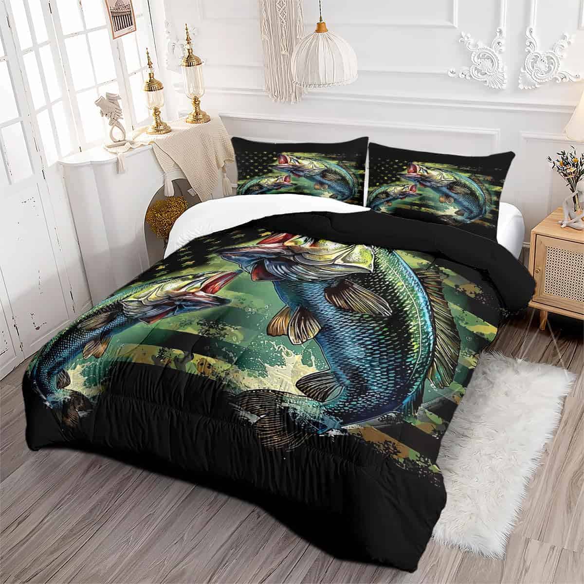 Es hora de ir a la cama. Ahora cierra los ojos y sube a este set de edredón de patrón de pesca y caza de aventuras náuticas marinas, y déjalo llevarte en un viaje para explorar el vasto mundo no descubierto. Características: Nuestro lujoso conjunto de edredón impreso en 3d presenta un divertido y ligero juego de edredón que satisface todo tipo de decoración de tu dormitorio, incluyendo estilo elegante, apasionado, moderno o chic, etc. Dale un nuevo aspecto a tu dormitorio, dormitorio universitario, apartamento, hotel. Es una integración de arte y visión. No es solo un exquisito juego de edredón sino también una gran decoración para el hogar. Este diseño 3d lujosamente chic y lleno de vitalidad, con relleno ligero, más suave y cómodo, se puede usar como inserto de edredón o solo edredón. El edredón ligero no es ni demasiado delgado ni demasiado grueso, se puede usar durante todo el año, también se puede llevar cuando viajas o haces actividades al aire libre, conveniente y práctico, también puede ser un regalo perfecto para viajar, bodas, cumpleaños, vacaciones, Día de la Madre – Día del Padre, Halloween y Navidad. Dado que el edredón está empaquetado en una bolsa al vacío, se recomienda que el edredón se haga al sol y se golpee suavemente durante el horneado para que se esponje. Súper suave y duradero. Fácil de transportar y almacenar. Un excelente regalo para tus hijos, adolescentes, adultos. Especificaciones: Edredón: 68»x86»; Fundas de almohada 20» x 30» TWIN Edredón: 90»x90»; Fundas de almohada 20» x 30» QUEEN. ¿Qué hay en el paquete?: 1x Edredón 2x Fundas de almohada
