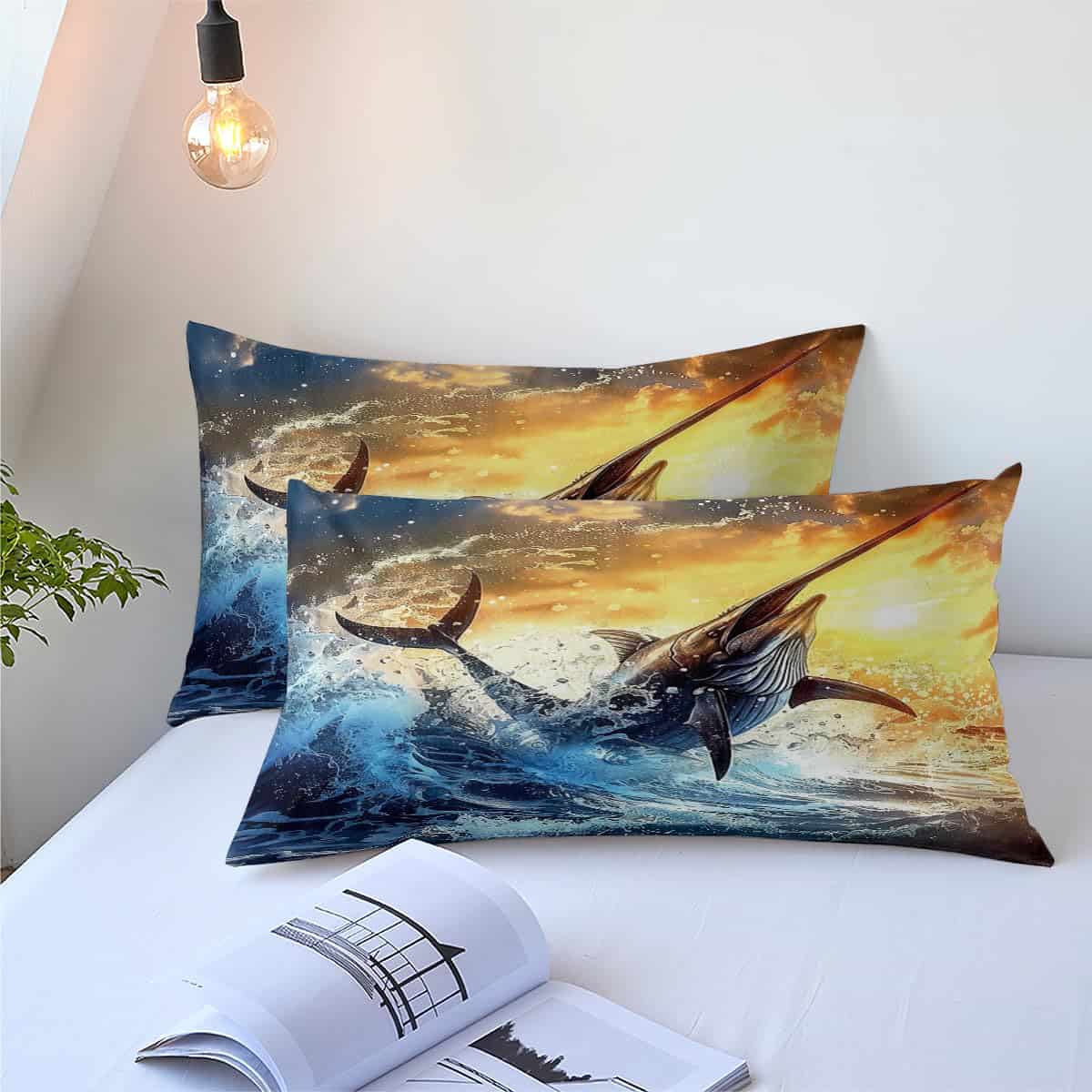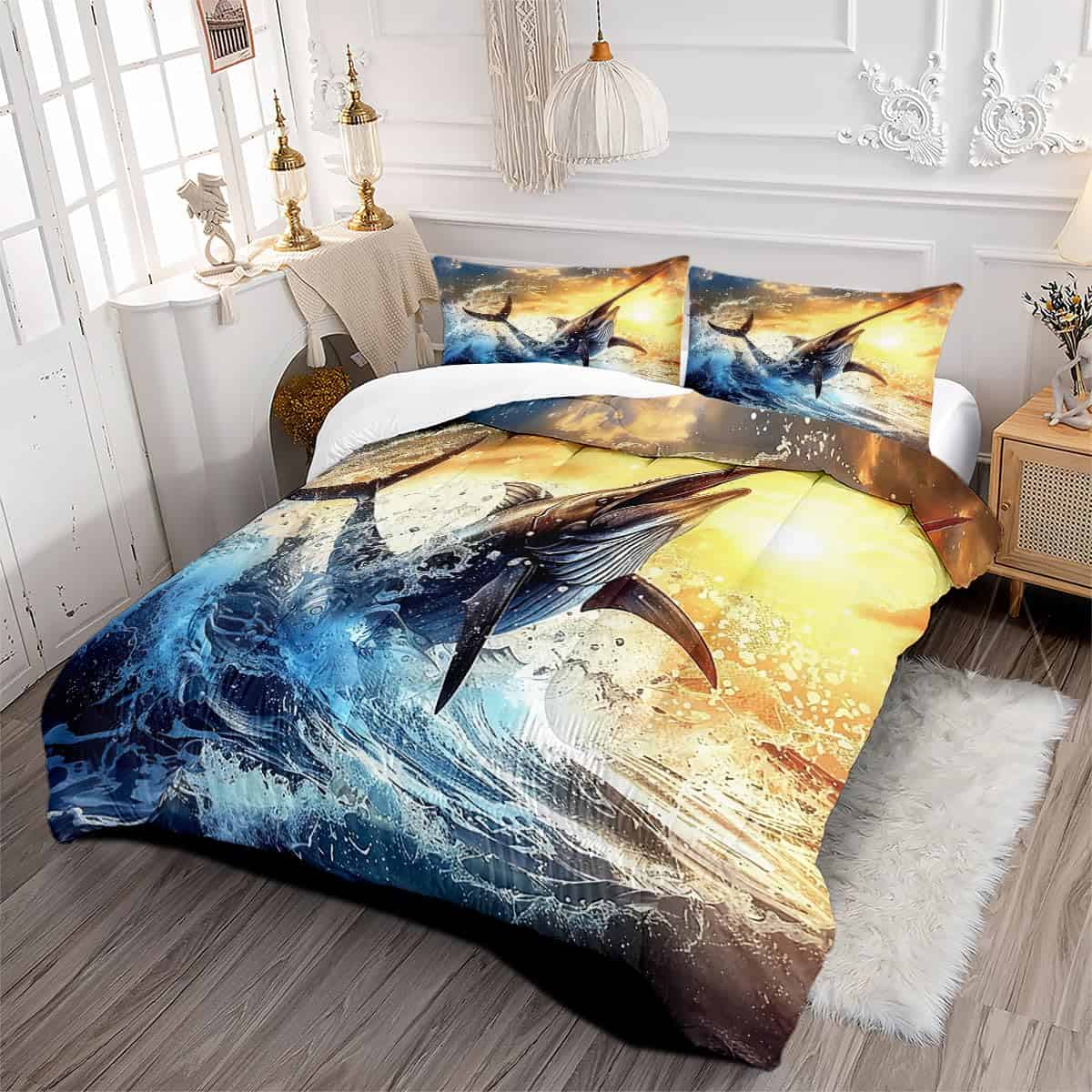 Es hora de dormir. Ahora cierra los ojos y sube a este juego de edredón con patrón de aventura marina náutica de pesca y caza, y déjalo llevarte en un viaje para explorar el vasto mundo inexplorado.