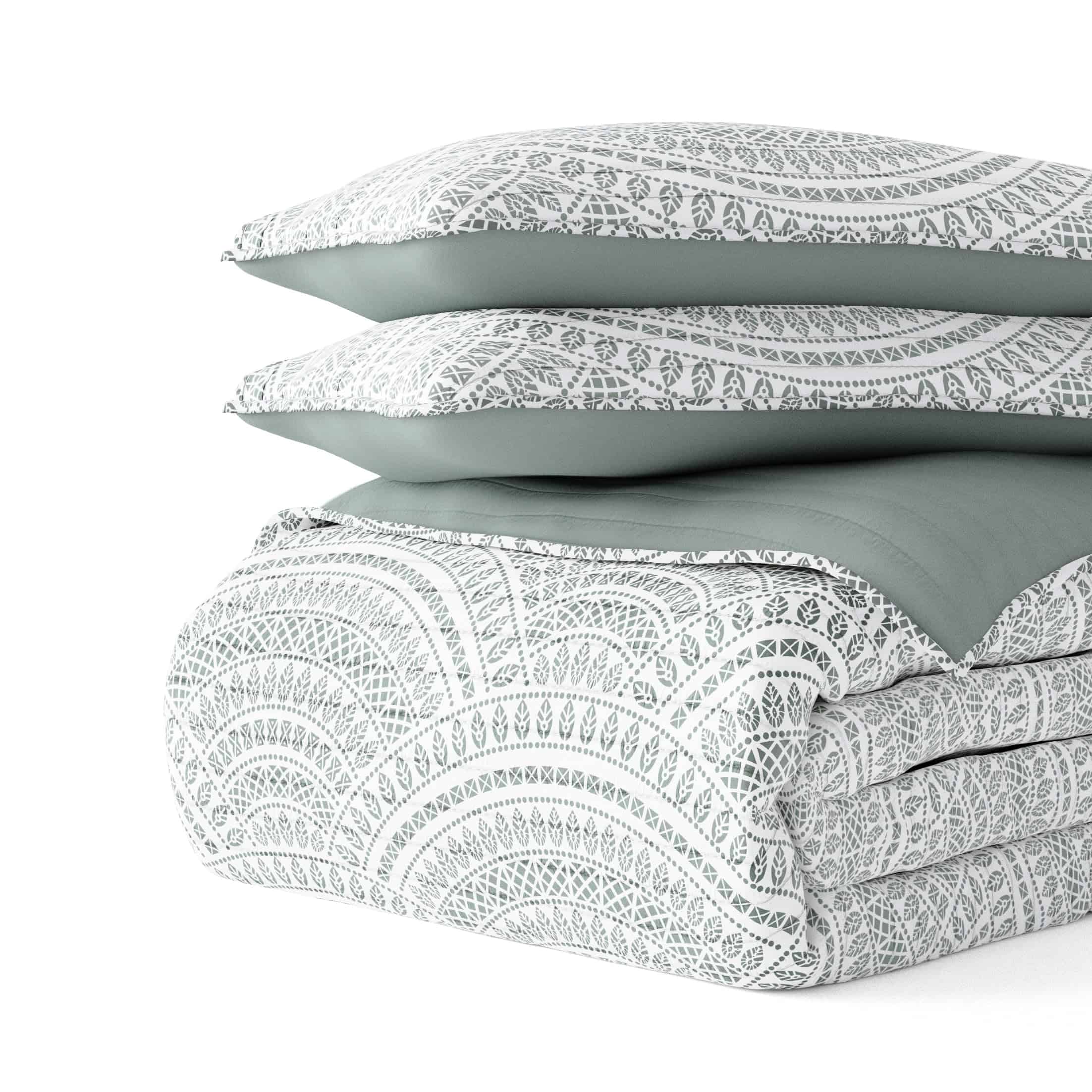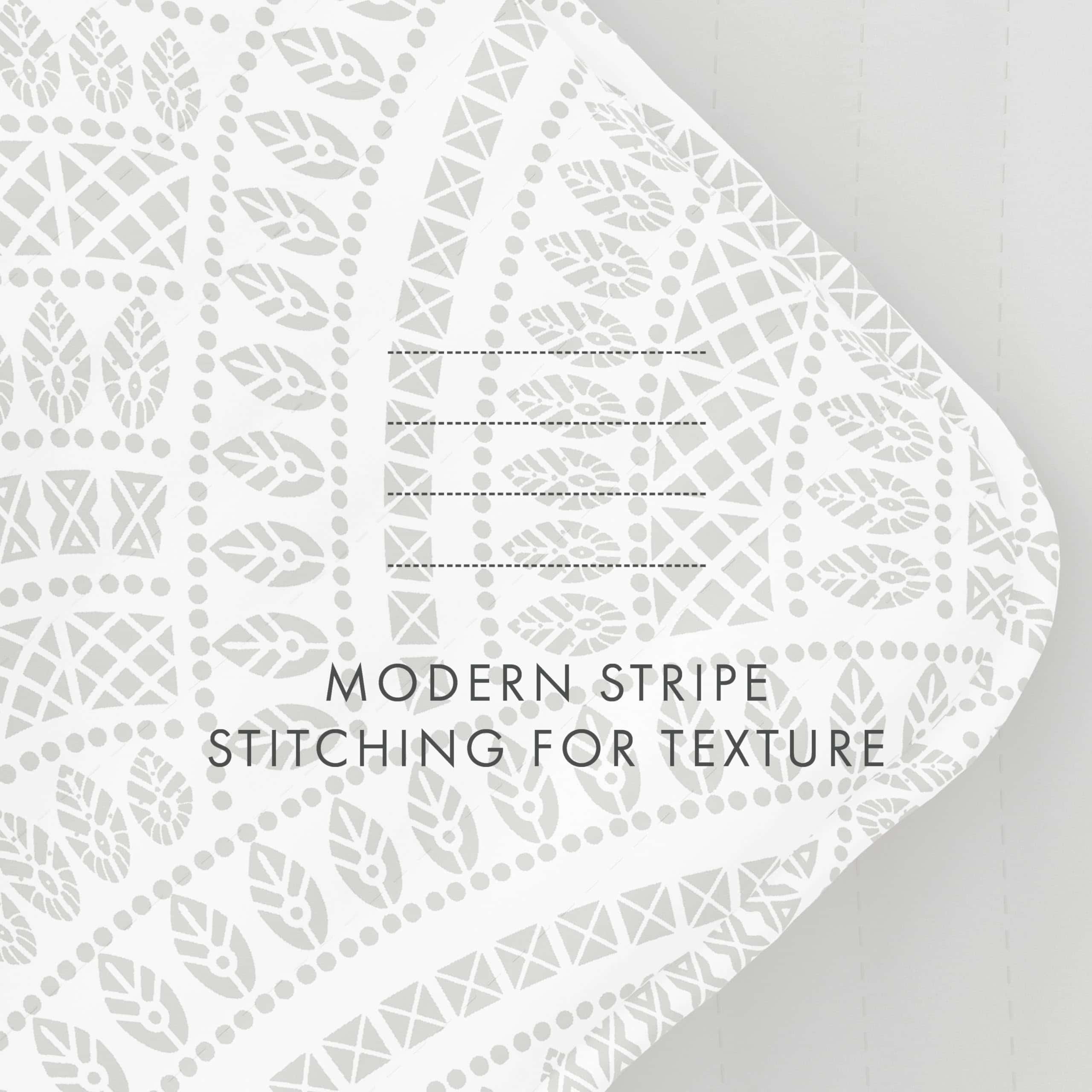 Las hermosas y sutiles costuras acolchadas añaden dimensión y un toque hermoso a cualquier dormitorio. Hilado a partir de nuestros hilos premium, este juego es dos veces más fuerte que el algodón, resistente a las arrugas y una opción perfecta para aquellos con alergias o piel sensible. La reversibilidad le da a cada lado su propio aspecto único. Disponible en una variedad de hermosos diseños de diseñador, lo que facilita refrescar cualquier dormitorio.