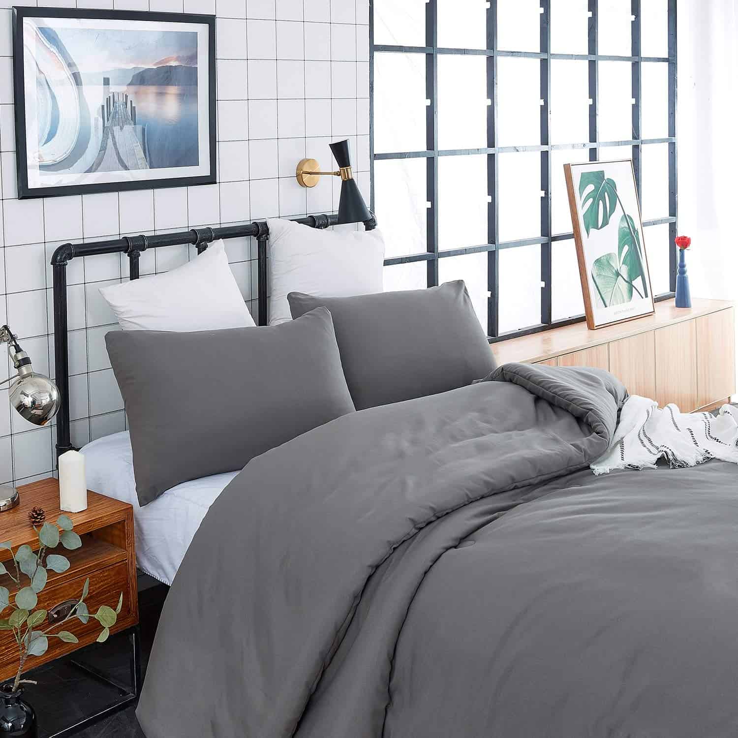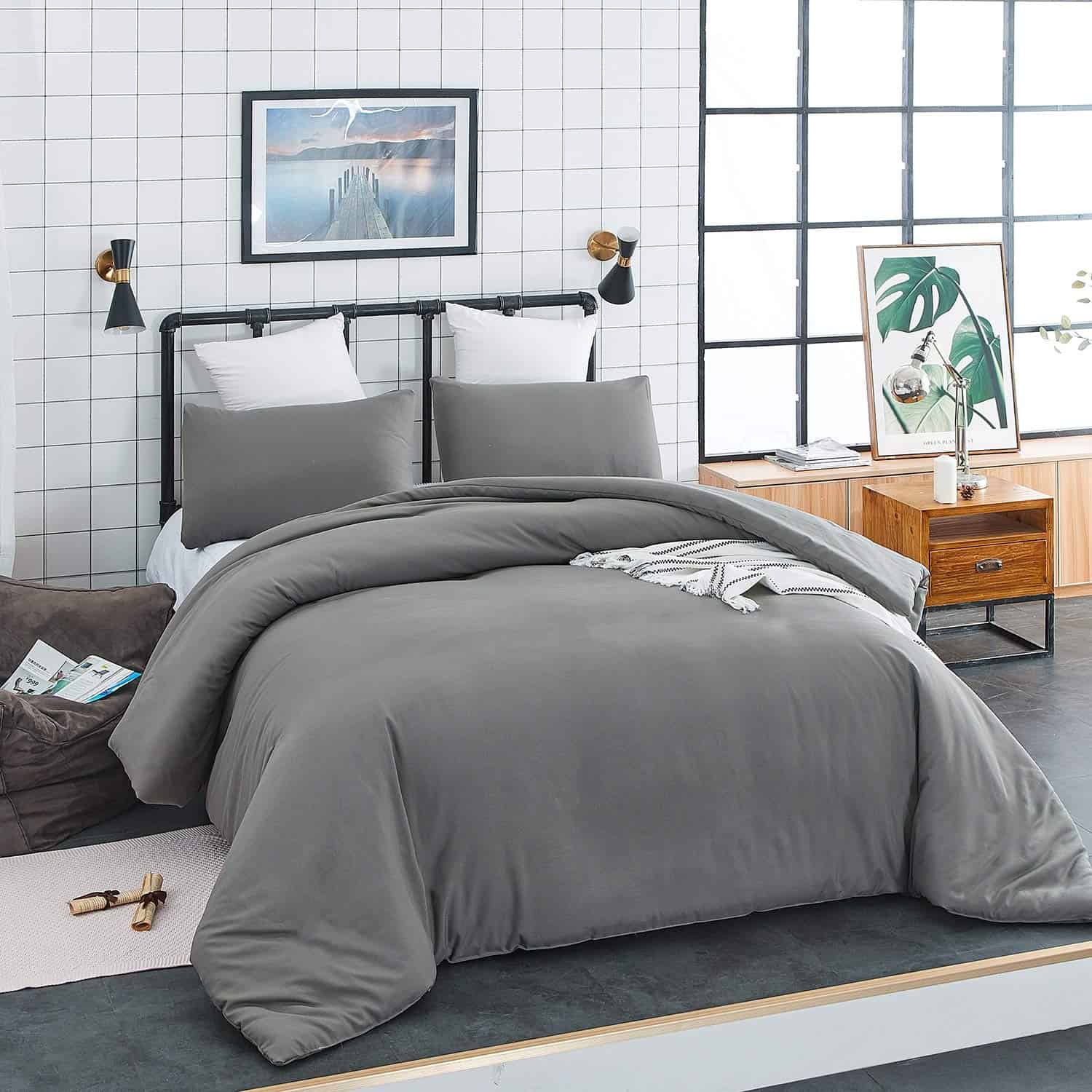 Edredón Gris Houseri Tamaño Queen Gris Oscuro Ropa de Cama