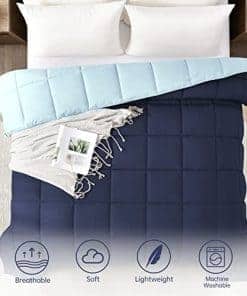 El edredón Homelike Moment California King es el complemento perfecto para tu cama. Con su diseño reversible, podrás cambiar de ambiente con solo voltearlo. Fabricado con materiales amigables con la piel, este edredón acolchado en azul marino y azul claro es suave y transpirable. Su relleno de microfibra entera garantiza que no se apelmacen. Ligero y confortable, este edredón es ideal para su uso durante todo el año, manteniéndote fresco en verano y cálido en invierno. El edredón cali king está diseñado con 4 pestañas en las esquinas para fijar una funda nórdica y puede lavarse y secarse a máquina para un fácil cuidado. Disponible en una amplia gama de colores y tamaños, este edredón Homelike Moment California King es una excelente opción para tu hogar. Aprovecha nuestra garantía de satisfacción, si no quedas satisfecho, contáctanos para devolverlo y obtener un reembolso.