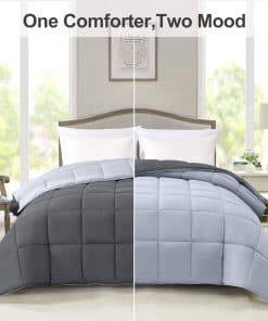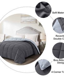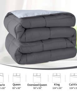 Edredón Homelike Moment Tamaño King – Edredón de plumón alternativo para cama King, Ropa de cama ligera de plumón Suave acolchada, Reversible en gris oscuro/gris claro. El edredón reversible tamaño king se puede dar la vuelta dependiendo de tus sábanas y tu estado de ánimo, un lado es gris oscuro y otro lado es gris claro. Hay más colores disponibles, gris, azul marino, azul, marrón, rosa, beige, blanco, negro, morado, lavanda, turquesa e marfil. El edredón king de verano tiene 4 lengüetas en las esquinas para anclar la funda de edredón, por lo que el edredón de cama king se puede utilizar como inserto de plumón alternativo o como una manta edredón independiente. El edredón king ligero se puede usar durante todo el año. El edredón king de todas las estaciones es lo suficientemente ligero para el verano y lo suficientemente pesado para el invierno sin sentirte atado a la cama. El edredón king ligero es una elección ideal para tu familia y amigos en el Día del Padre, Día de la Madre, Cumpleaños, Navidad, Año Nuevo, Mudanza o Regreso a Clases. El edredón gris king está hecho con material amigable con la piel. Esto garantiza que nuestra manta de microfibra edredón king de verano sea muy suave y transpirable. El relleno del edredón de cama gris king acolchado es de microfibra entera, sin agrupamiento. El edredón gris king se puede lavar y secar en máquina, muy fácil de cuidar y ahorrar dinero. El inserto de edredón gris claro king con buena mano de obra, definitivamente vale cada centavo que gastaste. Hay 5 tamaños disponibles, edredón twin 64×88 pulgadas, edredón full queen 88×88 pulgadas, edredón king 104×88 pulgadas, edredón queen extragrande 98×98 pulgadas, edredón king de california 104×96 pulgadas. Estamos seguros de que te encantará nuestro edredón delgado de cama king. Si tu experiencia de sueño con el edredón king alternativo de plumón no es absolutamente excepcional, simplemente contáctanos para devolverlo