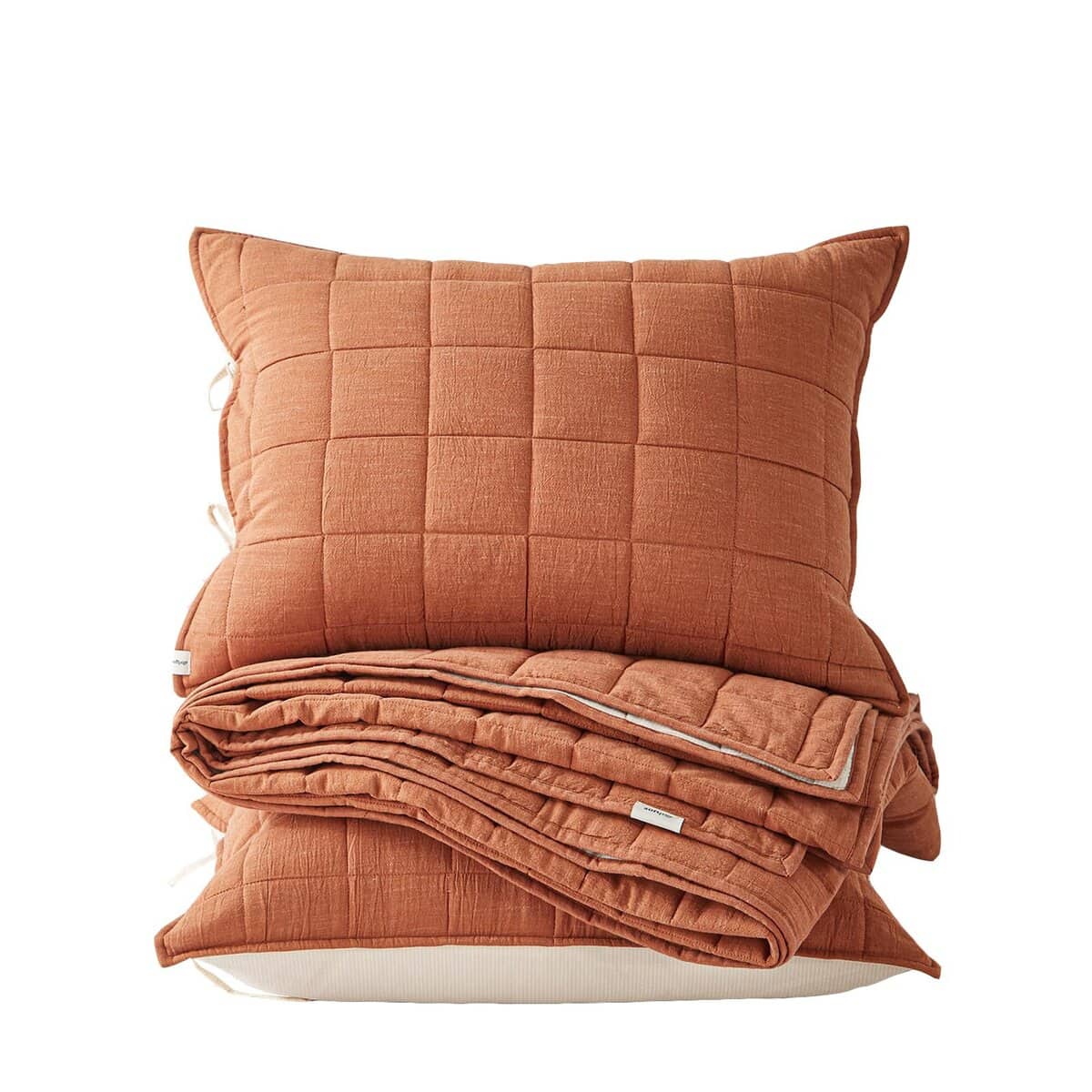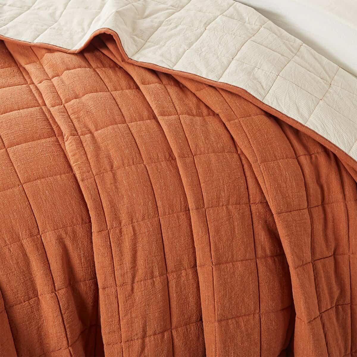 Edredón Individual Burnt Orange de Algodón y Lino – Juego