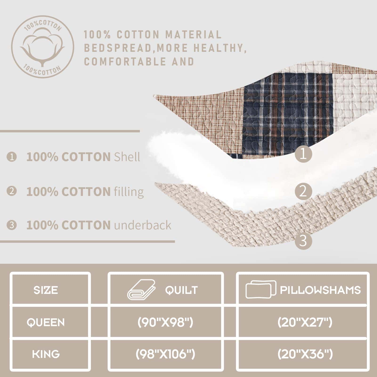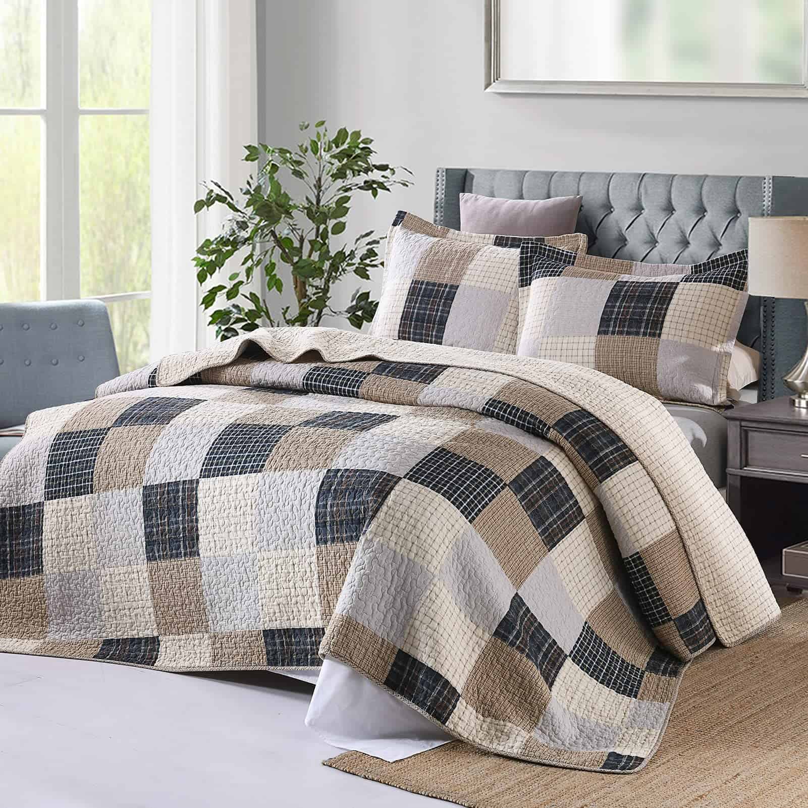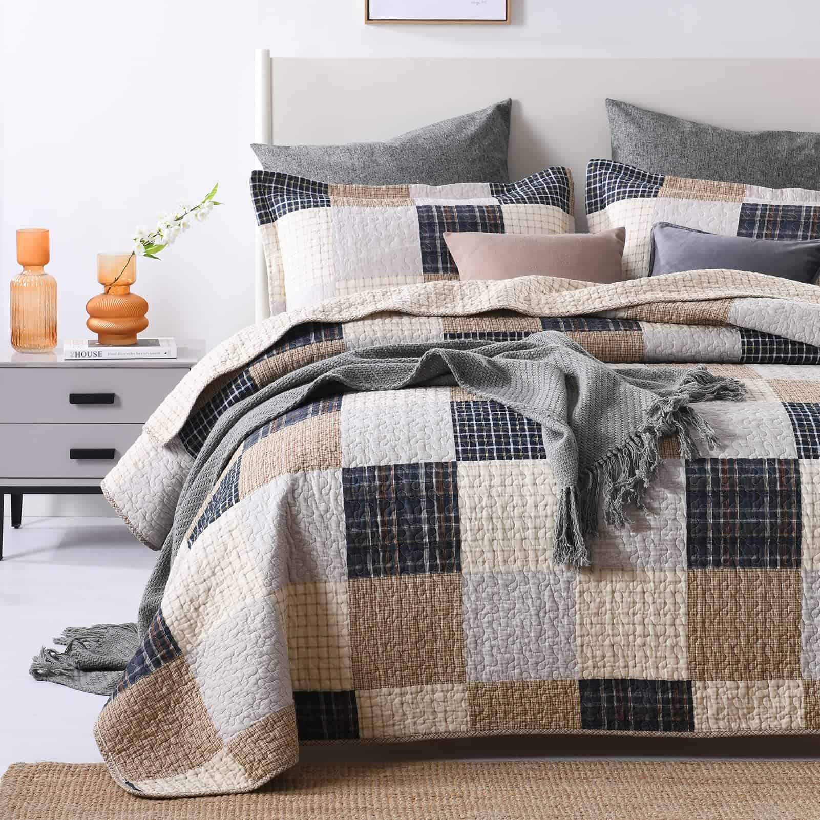 Edredón King Size 100% algodón, Edredón King Size a cuadros