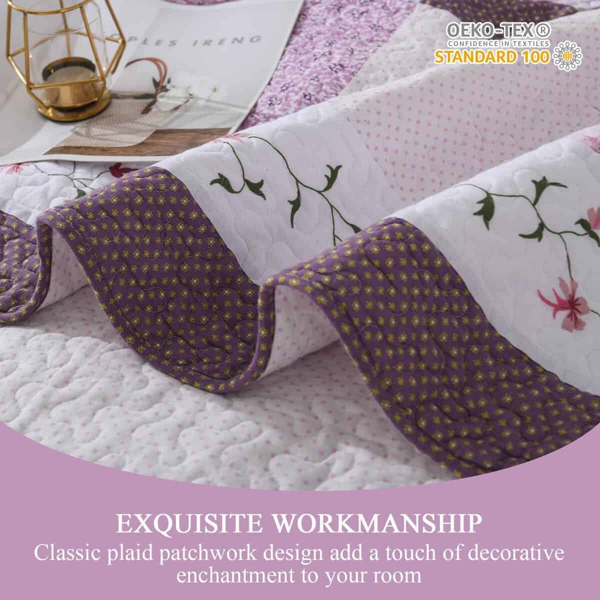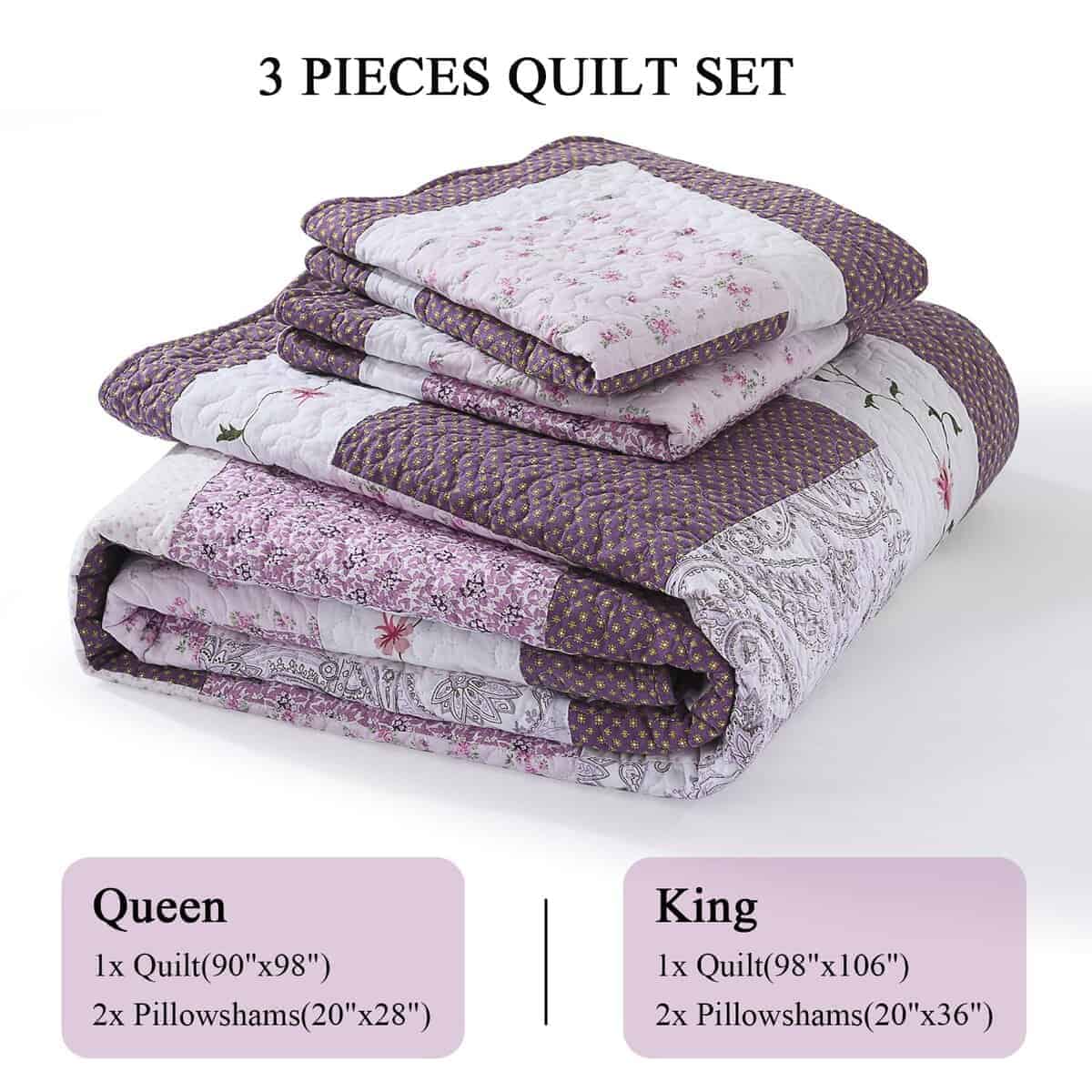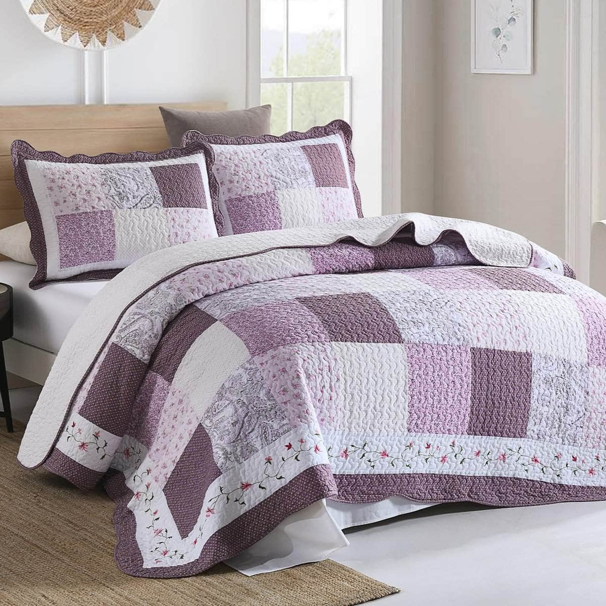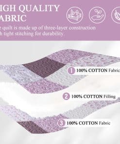 El juego de edredón FineStichery King Size en patchwork morado y blanco es la elección perfecta para darle a tu dormitorio un toque de estilo granja. El edredón está hecho de 100% algodón natural, lo que lo hace transpirable y suave para la piel. El diseño de patchwork presenta flora alrededor de los bordes y el centro a cuadros está decorado con flores moradas, puntos y diseños, que le dan un aspecto vibrante y rústico. El edredón es duradero y resistente, con costuras ajustadas y es ligero y cálido, ideal para todas las estaciones. El juego de edredón de 3 piezas incluye un edredón de 106″ x 98″ y 2 fundas de almohada de 20″ x 36″. Fácil de cuidar, este edredón se puede lavar a máquina por separado en agua fría y secar a baja temperatura. Añade este hermoso y funcional edredón a tu dormitorio para un toque de estilo único.