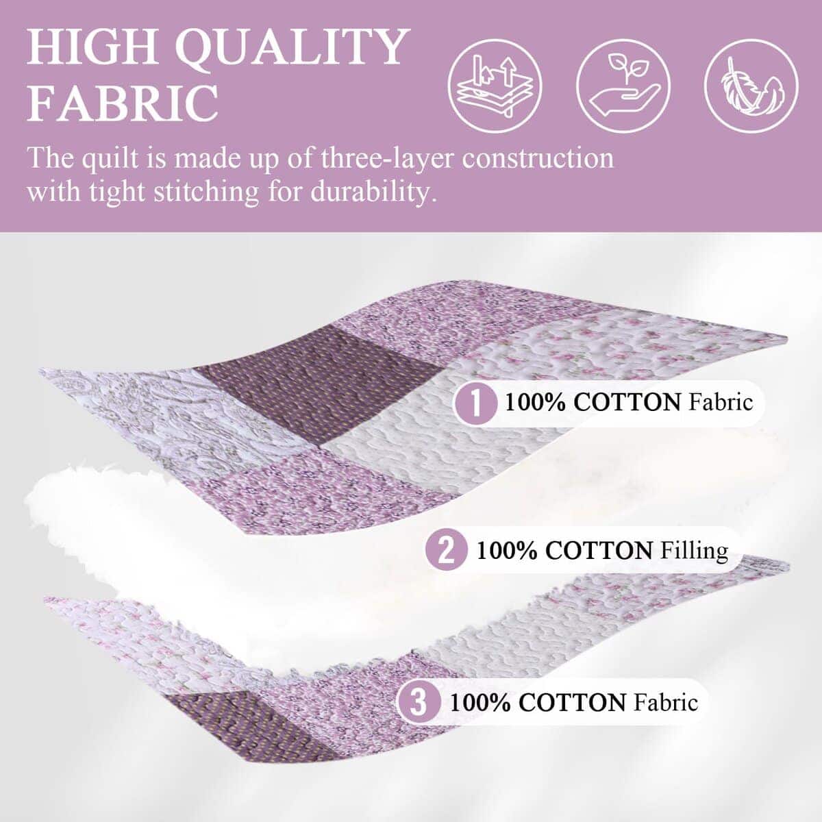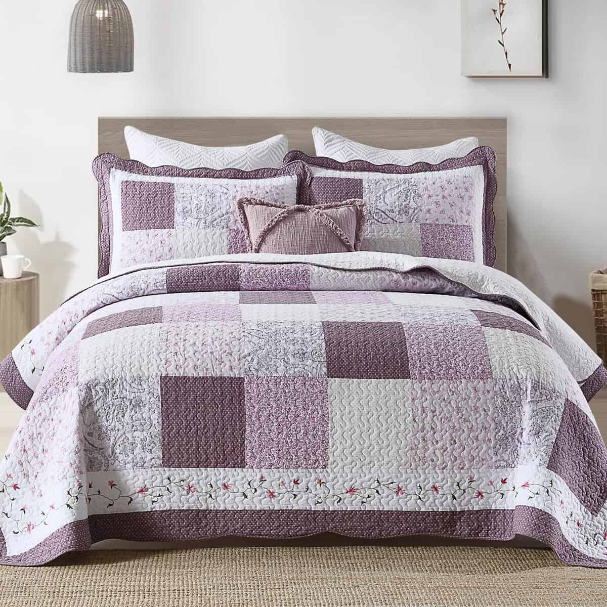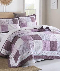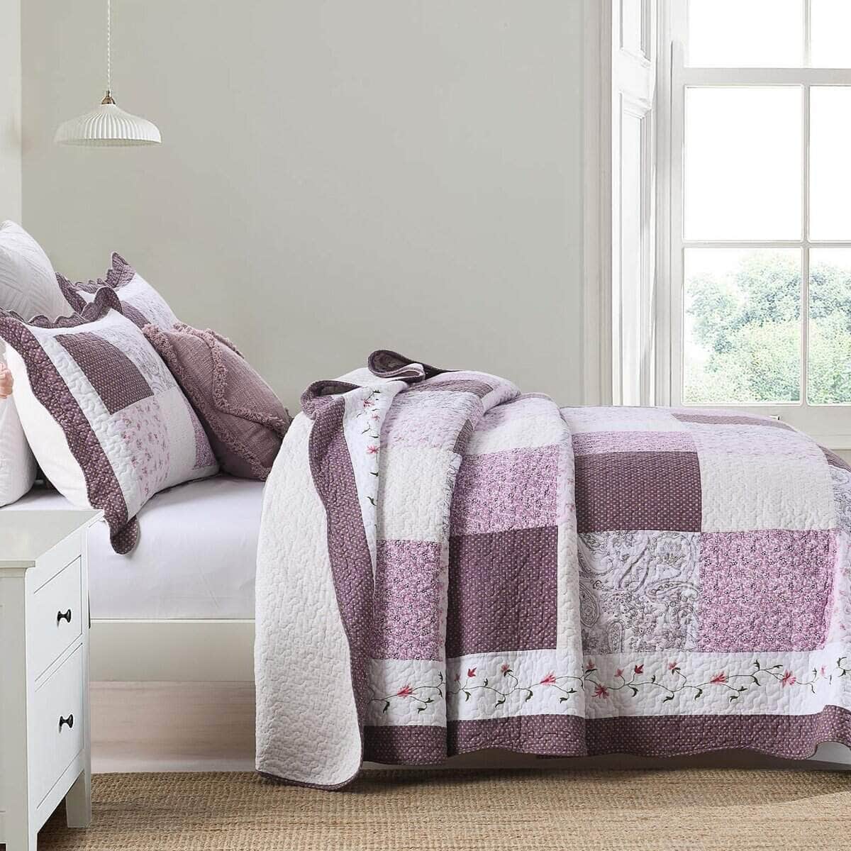 El juego de edredón FineStichery King Size en patchwork morado y blanco es la elección perfecta para darle a tu dormitorio un toque de estilo granja. El edredón está hecho de 100% algodón natural, lo que lo hace transpirable y suave para la piel. El diseño de patchwork presenta flora alrededor de los bordes y el centro a cuadros está decorado con flores moradas, puntos y diseños, que le dan un aspecto vibrante y rústico. El edredón es duradero y resistente, con costuras ajustadas y es ligero y cálido, ideal para todas las estaciones. El juego de edredón de 3 piezas incluye un edredón de 106″ x 98″ y 2 fundas de almohada de 20″ x 36″. Fácil de cuidar, este edredón se puede lavar a máquina por separado en agua fría y secar a baja temperatura. Añade este hermoso y funcional edredón a tu dormitorio para un toque de estilo único.