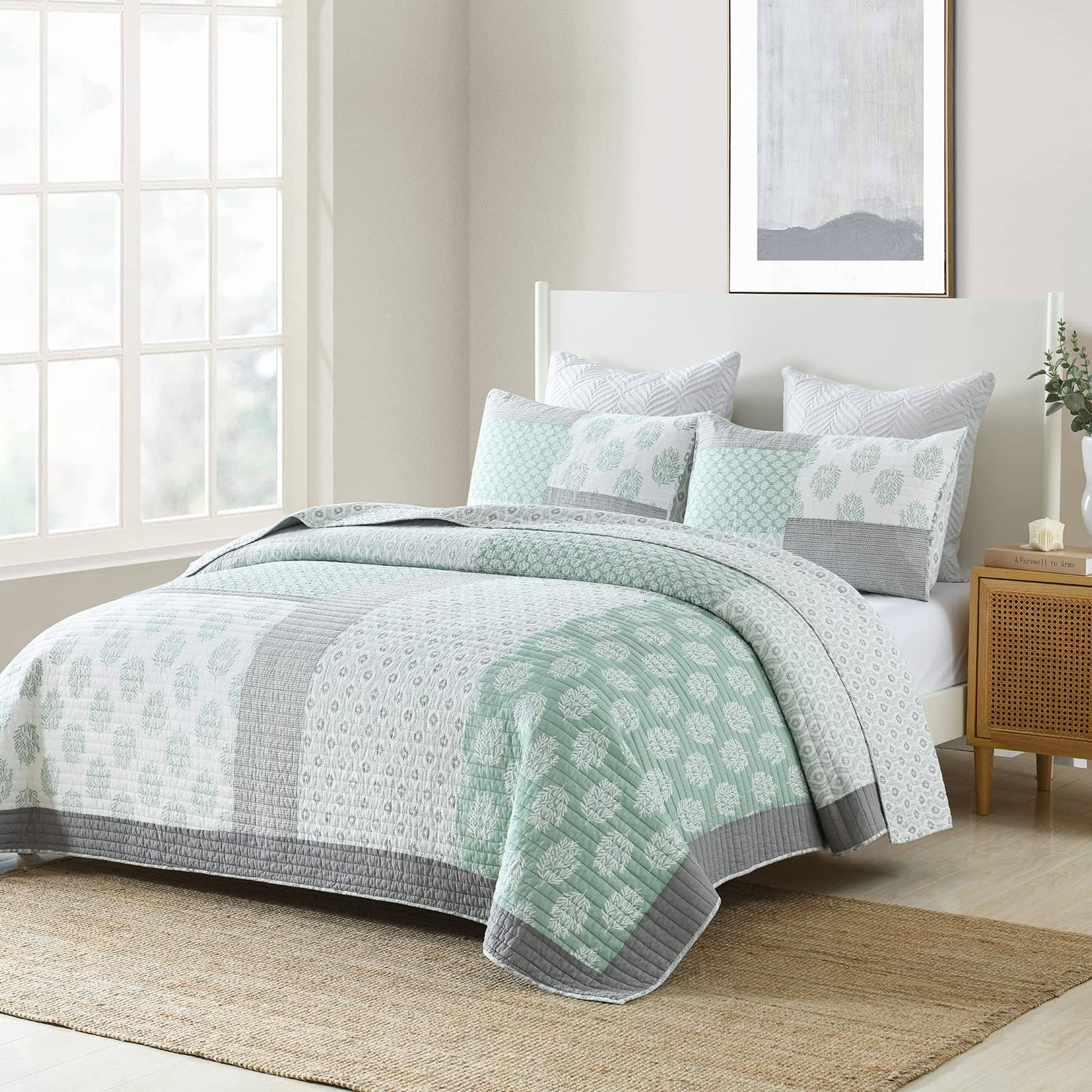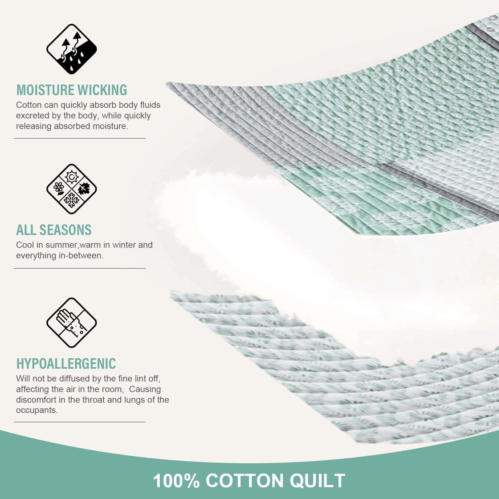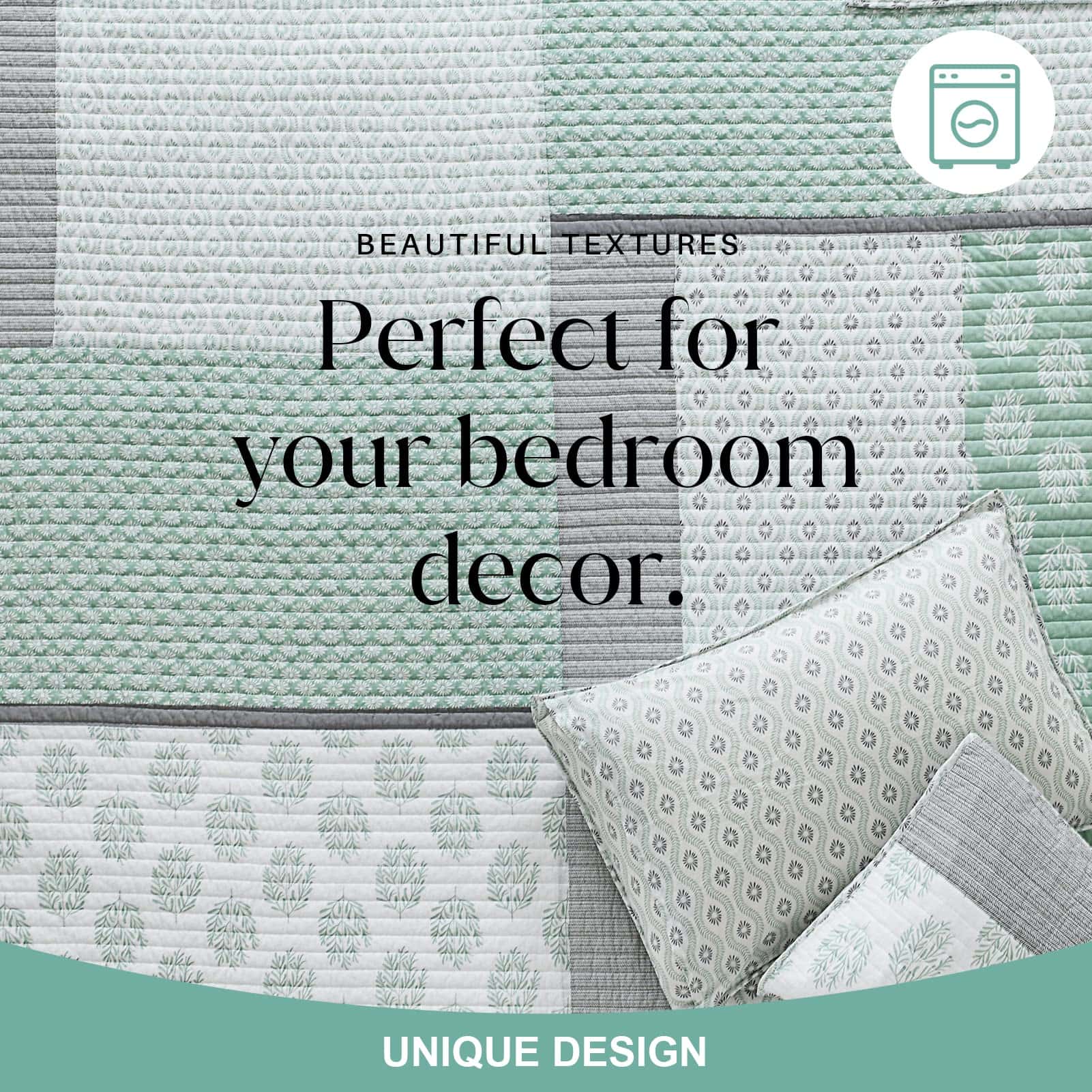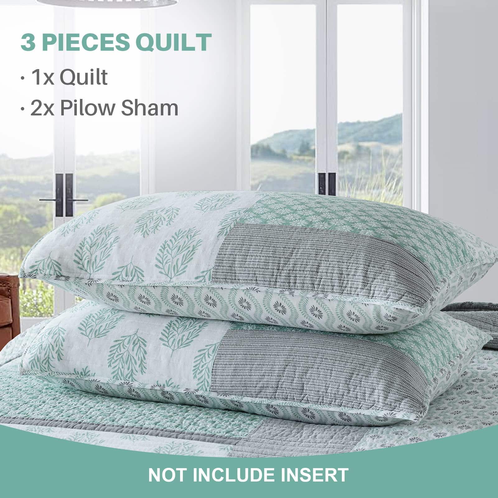 El edredón king size de Y-PLWOMEN está hecho con 100% algodón, lo que lo hace más saludable, suave y amigable con la piel, brindando comodidad transpirable para que disfrutes de días especiales y tranquilos en familia. El diseño de patchwork con patrón floral mejora aún más la combinación de colores verde, gris y blanco, haciéndolo único y elegante, la mejor elección para la decoración de tu habitación de estilo brillante o campestre. Este juego de edredón king size de 3 piezas incluye 1 edredón king size (98 x 106 pulgadas) y 2 fundas de almohada (20 x 36 pulgadas), una elegante decoración para el hogar que combina perfectamente con tu habitación. Ideal para todas las estaciones, este edredón king size es ligero y fresco para las temperaturas más cálidas, y puede usarse como edredón o colcha en primavera y verano, y como juego de edredón en otoño e invierno. Fácil de cuidar, lavar a máquina en ciclo suave con agua fría y no usar lejía, el edredón king size de algodón seguirá manteniendo su forma suave y cálida en cada lavado.