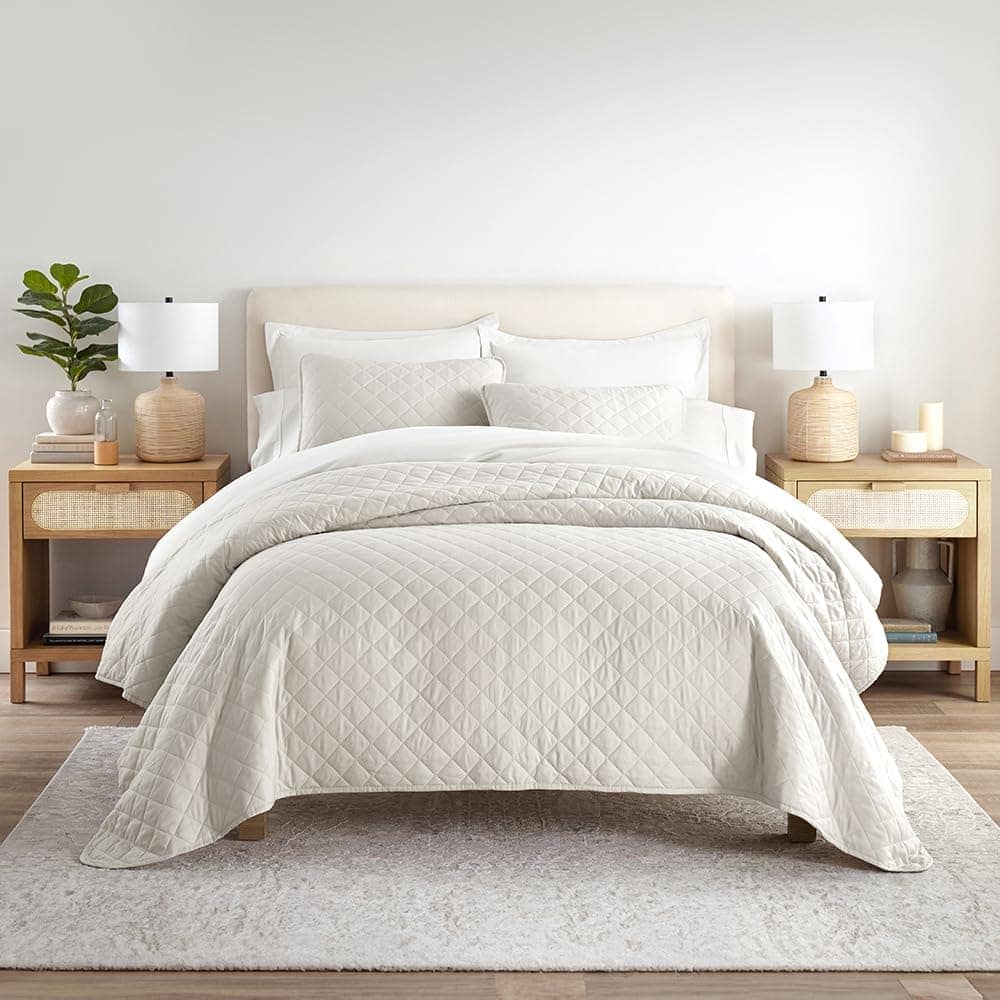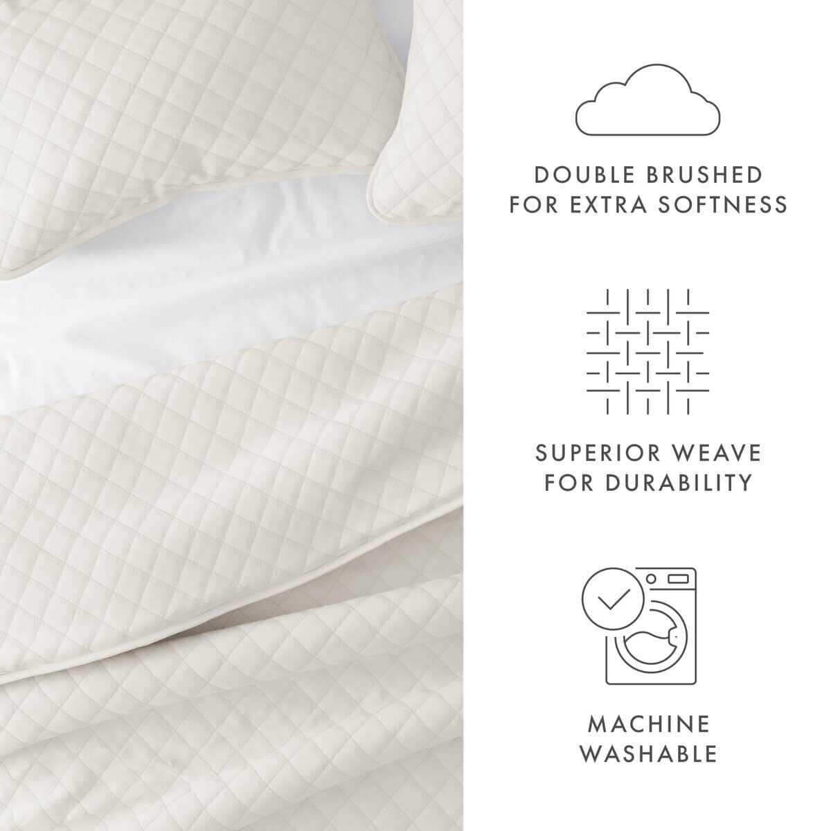 Dale a tu habitación una nueva y confortable adición con este juego de edredón ultra suave con fundas a juego. Lo hemos rellenado generosamente con plumas artificiales, y cada pieza está doblemente cepillada para darle esa sensación súper suave y acogedora. Los hermosos y sutiles pespuntes acolchados añaden dimensión y un toque magnífico a cualquier dormitorio. Hilado a partir de nuestras fibras premium, este juego es dos veces más resistente que el algodón, resistente a las arrugas y una opción perfecta para aquellos con alergias o piel sensible. Disponible en 3 elegantes diseños pespunteados de rayas, florales y diamantes, elevando el aspecto y la sensación de cualquier dormitorio. Los juegos están disponibles en 6 colores magníficos, ¡será difícil elegir solo uno para refrescar tu cama!