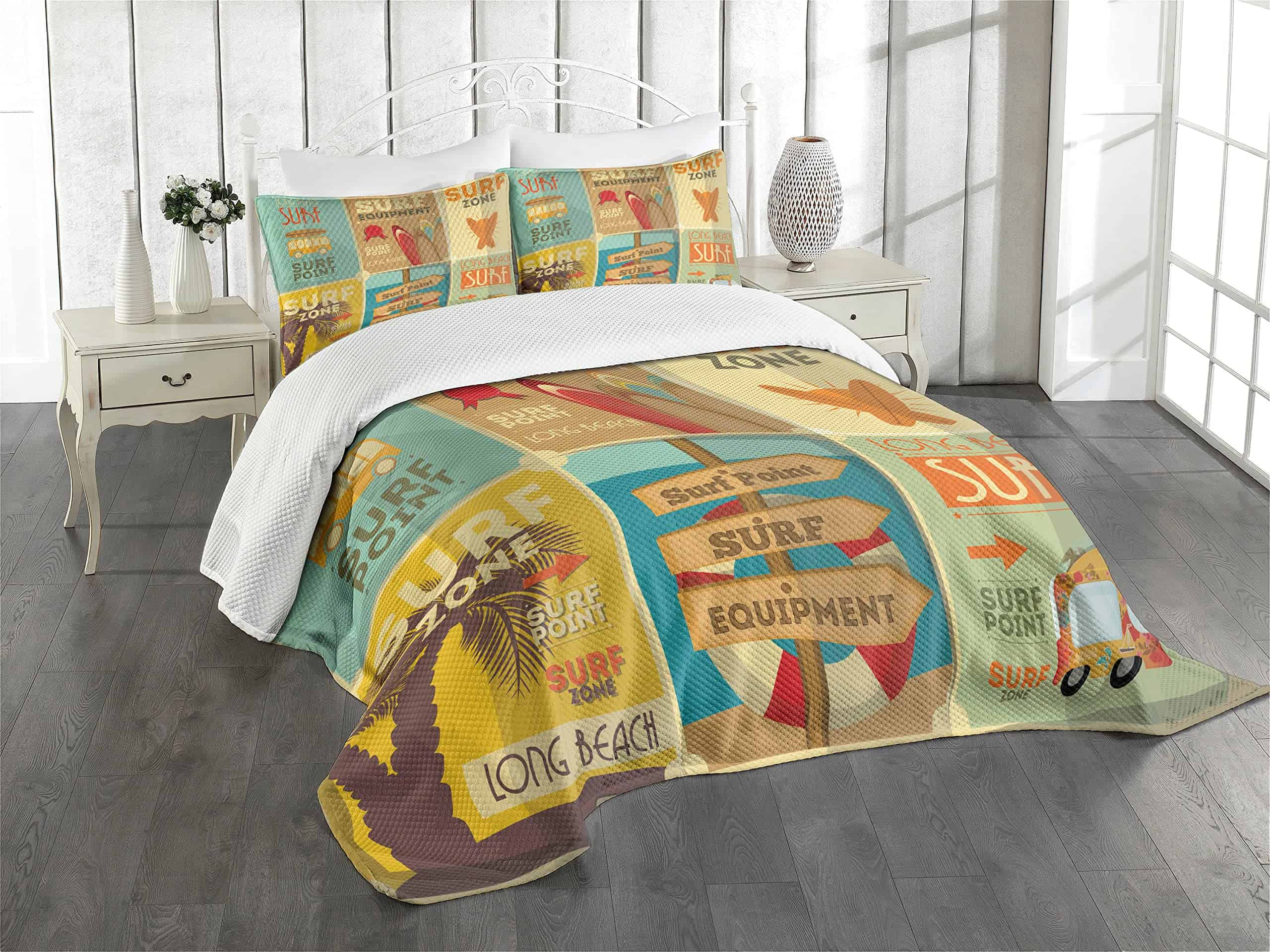 Edredón Lunarable Surf, Carteles Retro Grupo Tema de Vacaciones de Verano Hobby Deportes Acuáticos Playa de California, Juego de 3 Piezas de Cubrecamas Decorativos con 2 Fundas de Almohada, Tamaño Queen, Marrón Claro. No se cae fácilmente de la cama. Puede ser usado como manta. Edredón de punto de alta tecnología. Lavar a máquina – ciclo frío, seguro para secadora. Fácil de planchar. SIN DESGASTE. Excelente costura y mano de obra. Impreso con tecnología digital de última generación. El edredón y las fundas de almohada están impresos solo en el LADO FRONTAL.