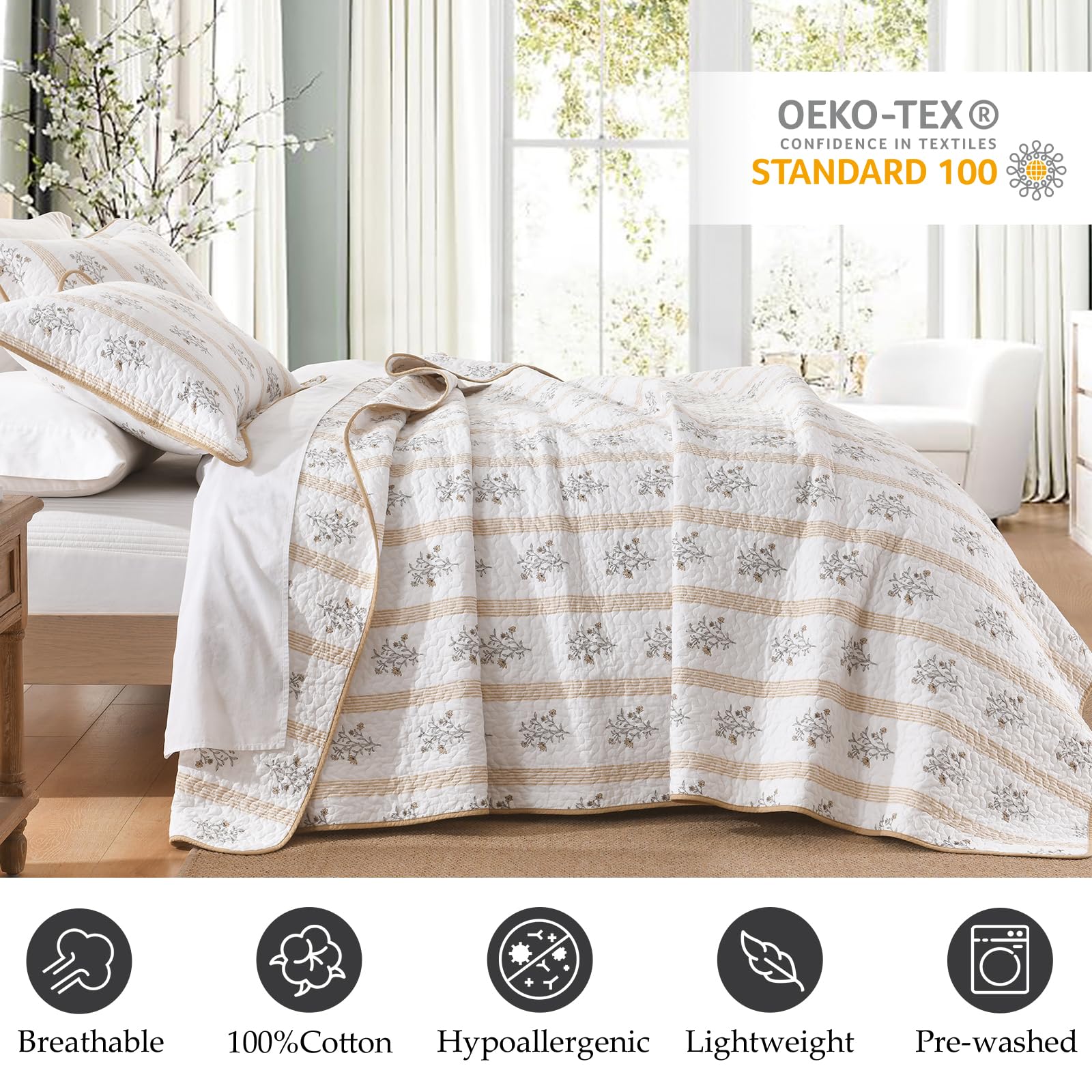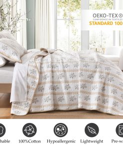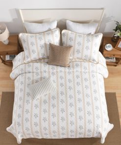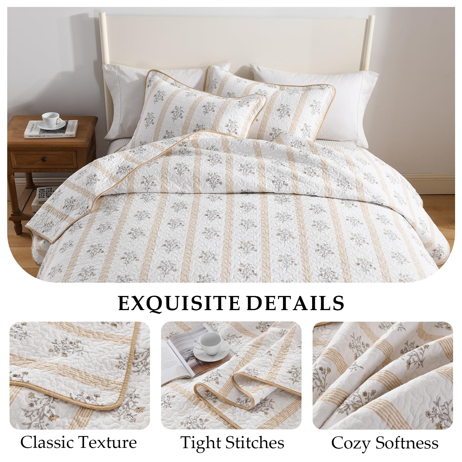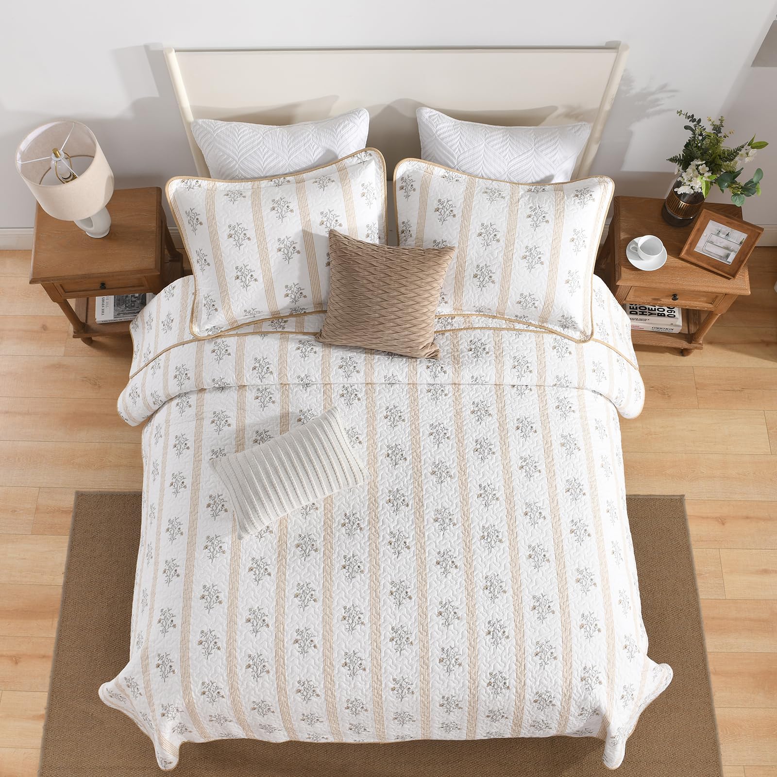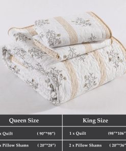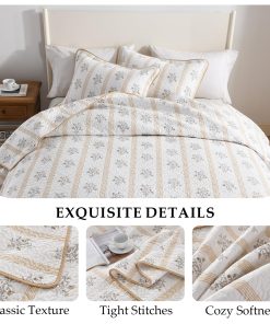 3. Estilo floral: El edredón es de color blanco y beige, ambos lados del edredón tienen el mismo patrón de rayas y flores. El patrón vintage se combina perfectamente con el esquema de colores múltiples, bonita decoración para su habitación.