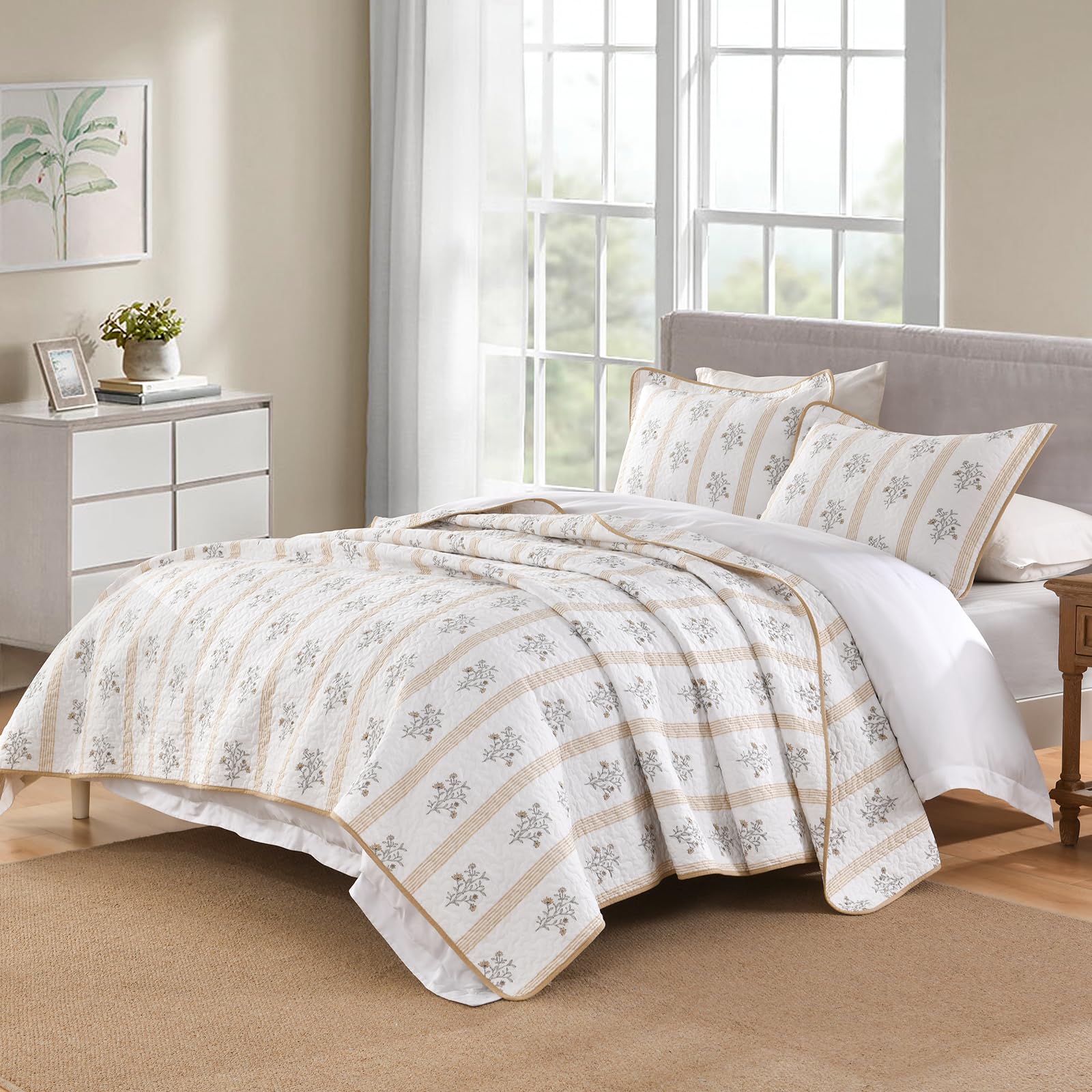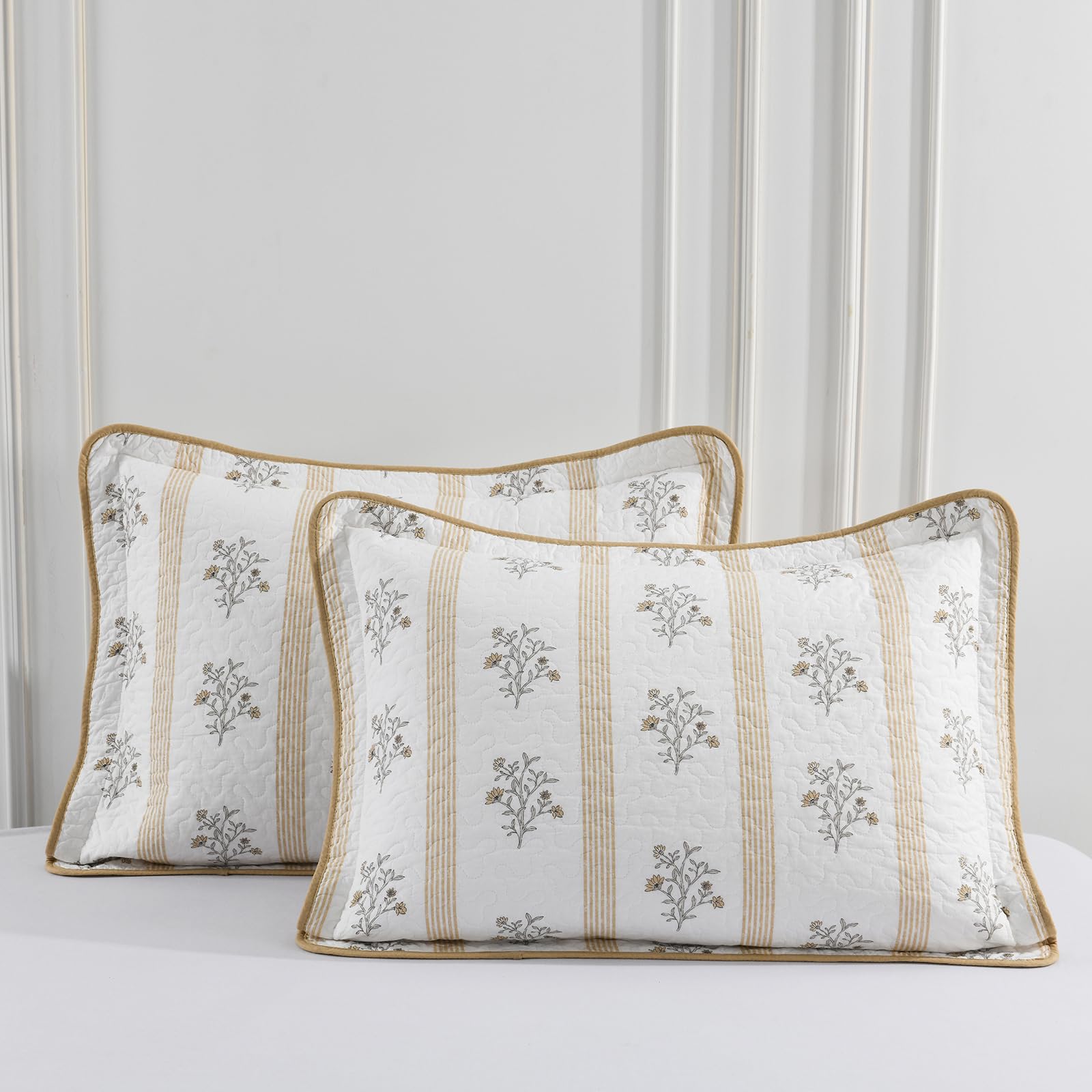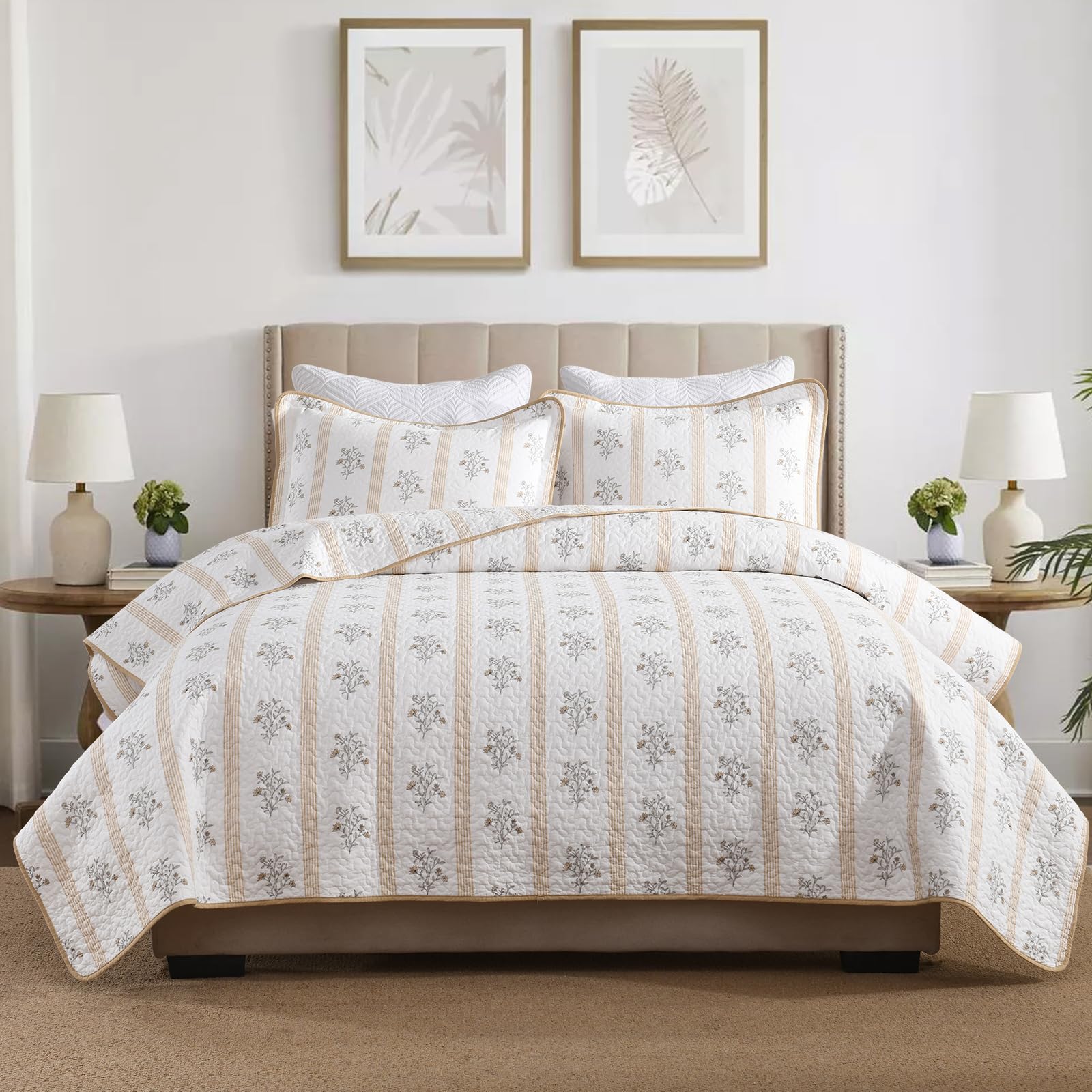 3. Estilo floral: El edredón es de color blanco y beige, ambos lados del edredón tienen el mismo patrón de rayas y flores. El patrón vintage se combina perfectamente con el esquema de colores múltiples, bonita decoración para su habitación.