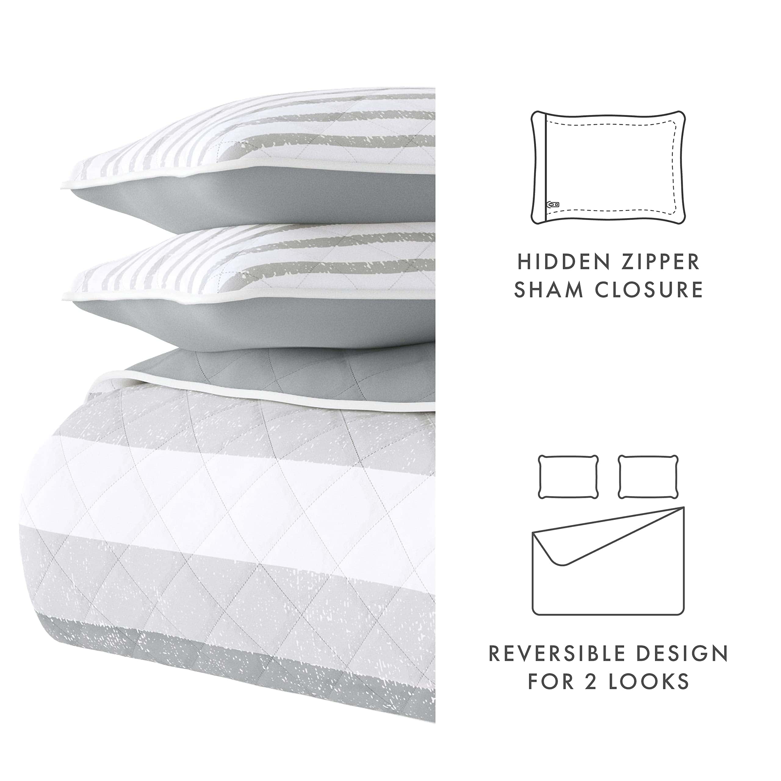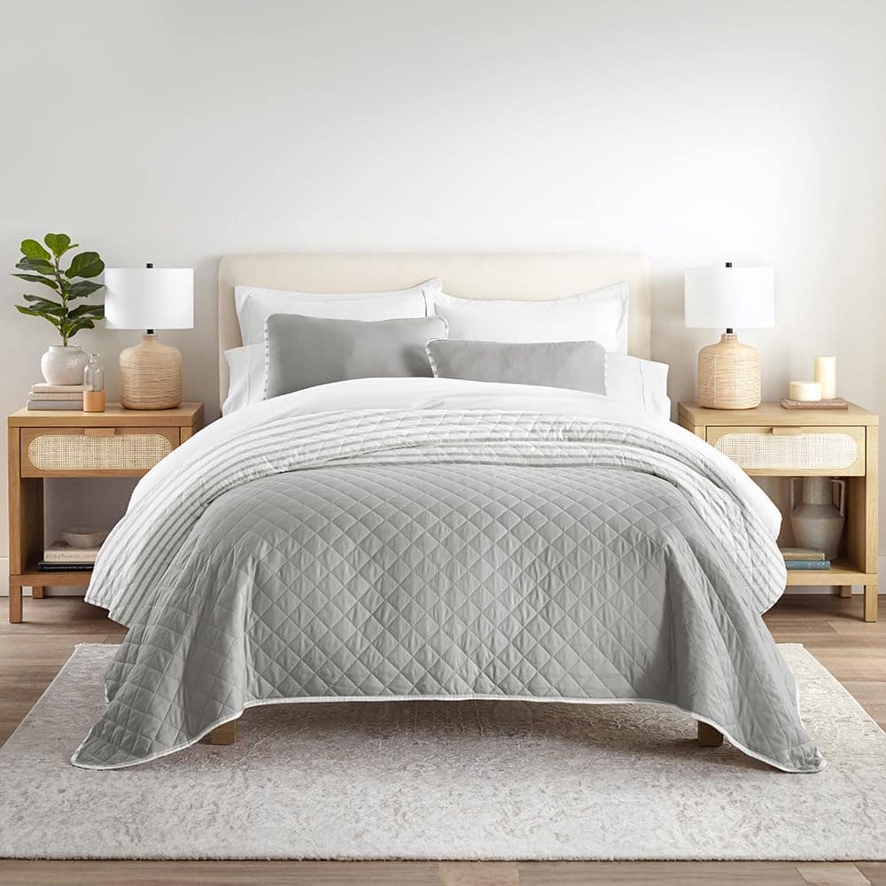 Edredón Queen de Verano Rayas Gris Claro