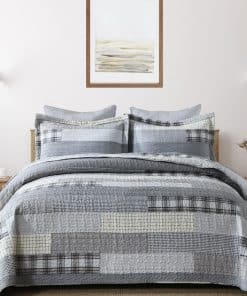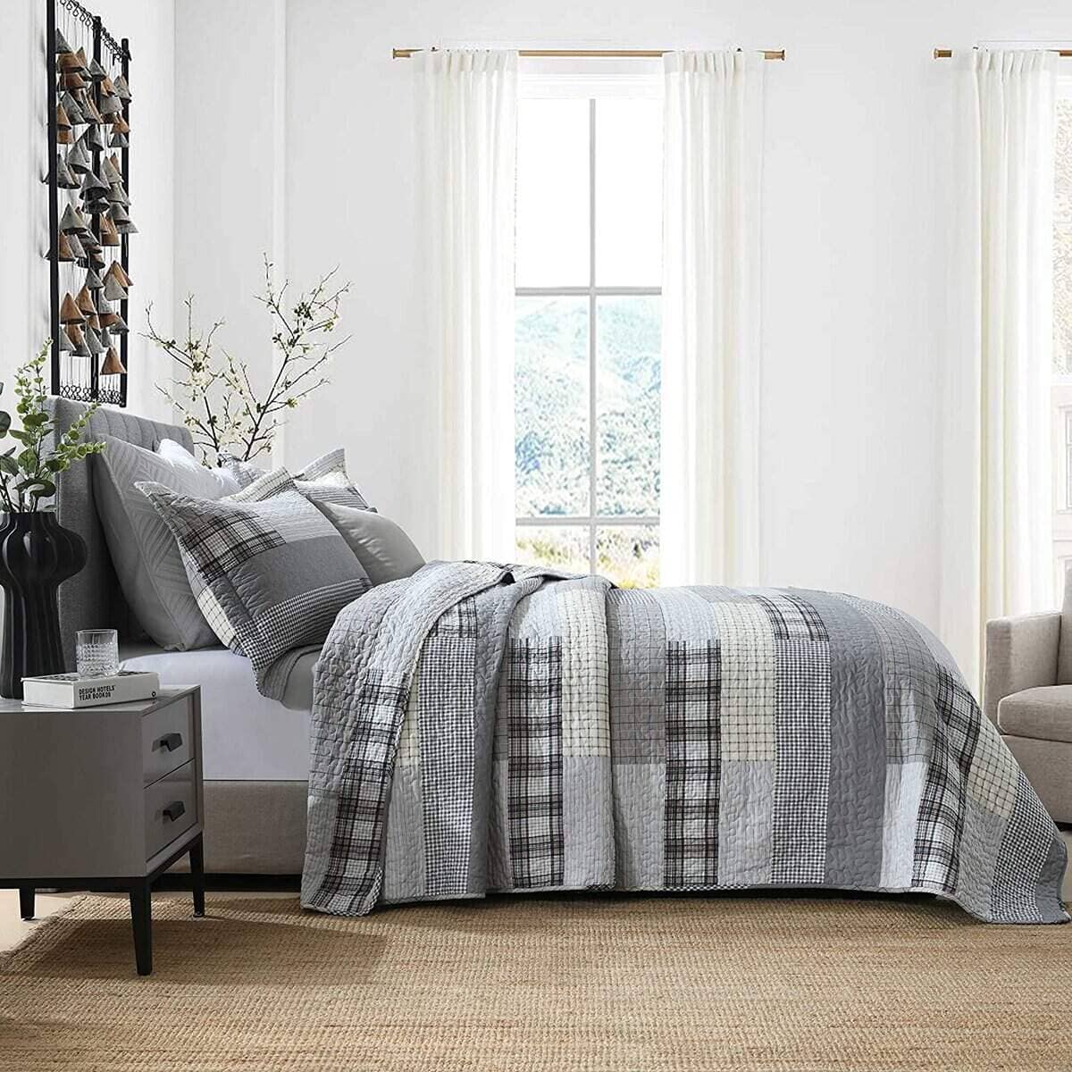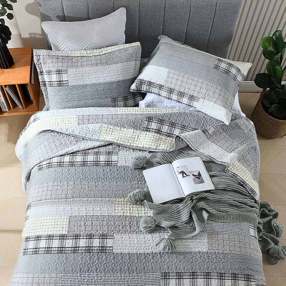 3. Colcha Ligera: El edredón Queen de tamaño patchwork a cuadros que es una colcha de granja con color gris, ligero pero cálido, el edredón Queen puede usarse aún cálido como manta en primavera y verano, como un juego de edredón en otoño e invierno.