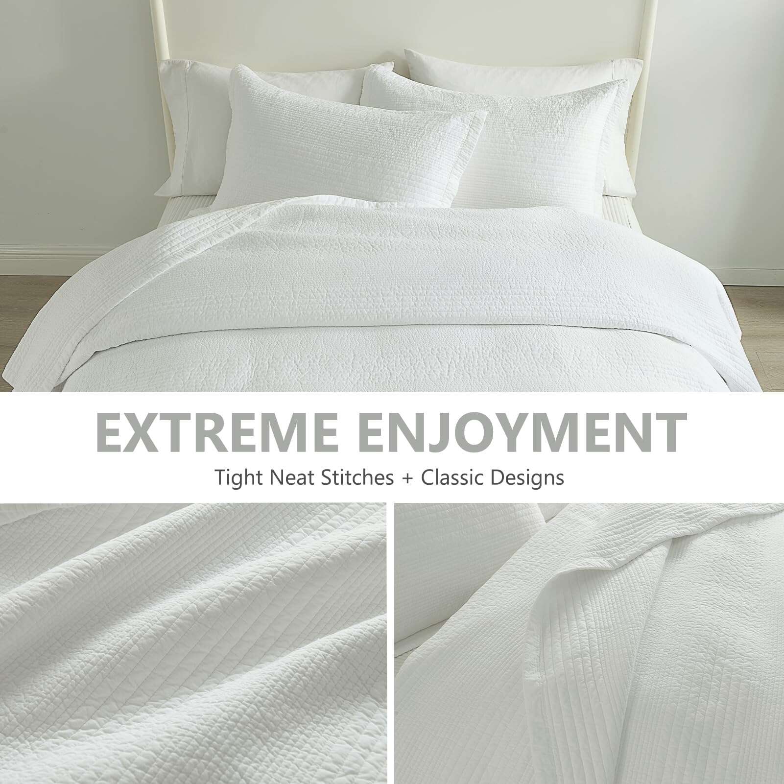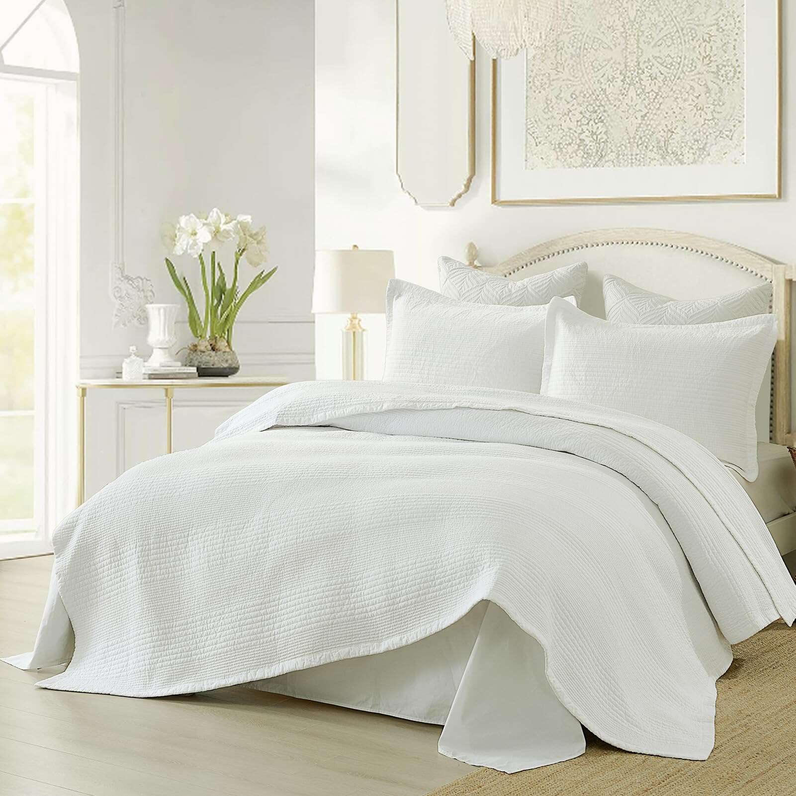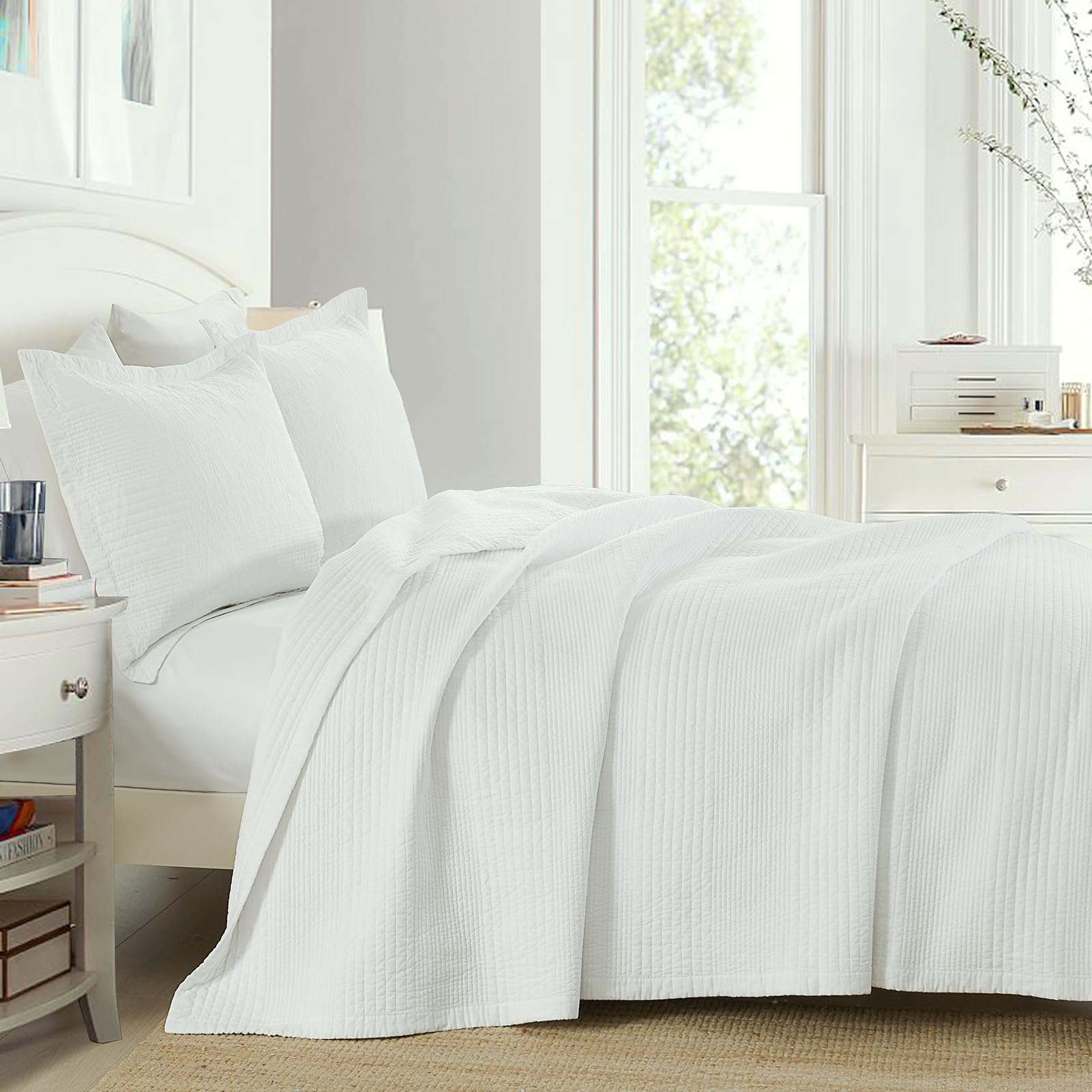 Edredón Queen Size de Algodón 100%, Juego de ropa de cama con cama de edredón blanco sólido para cama Queen, ligero y cómodo con patrones de rayas clásicas para cama Queen, 3 piezas, blanco. La tela y el relleno están hechos de algodón natural al 100%. El algodón natural es más suave, más transpirable y respetuoso con la piel, más duradero y adecuado para todas las edades. Este juego de ropa de cama de edredón se puede utilizar como juego de edredón, cubrecama, colcha, edredón para el verano, primavera, otoño/invierno. Si tiendes a sudar al dormir, úsalo solo o con una manta en clima frío. Las puntadas dobles en ambos lados garantizan un uso a largo plazo. Edredón elegante de color sólido con diseños clásicos. Una combinación de estilo moderno y rústico de granja para combinar fácilmente con la decoración de tu habitación y hacerte relajar. Este juego de edredón es adecuado para dormitorio, sala de estar, habitación principal, habitación de invitados, estudio, residencias universitarias, apartamentos y vehículos recreativos. También es ligero y portátil para habitaciones interiores y camping al aire libre. Incluye 1 edredón queen (90″ x 98″) y 2 fundas de almohada (20″ x 28″).