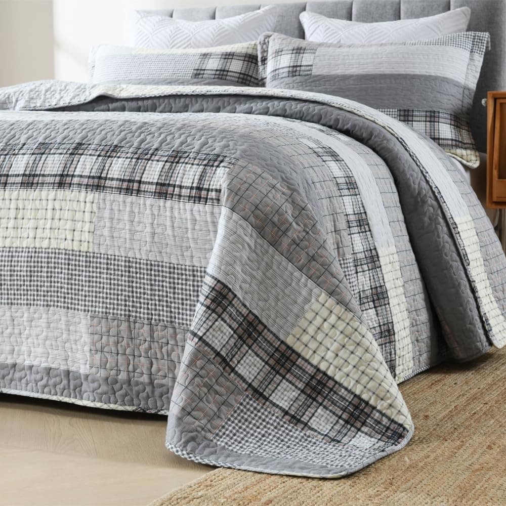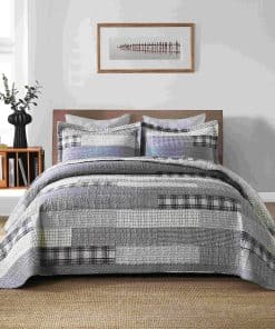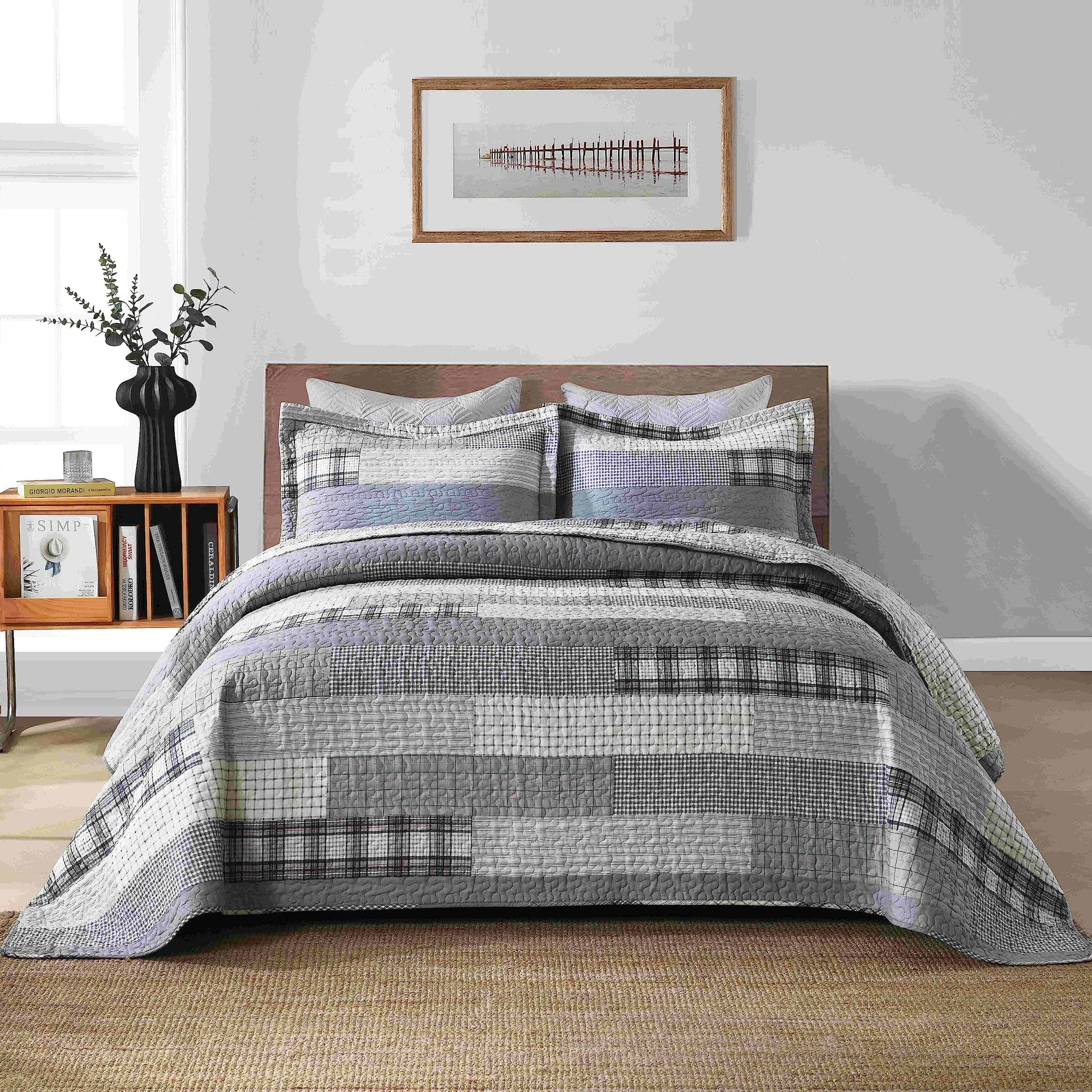 3. Cubrecama ligero: El edredón Queen de tamaño completo, diseño de cuadros de la granja con color Gris, ligero pero cálido, el edredón Queen se puede usar todavía caliente como una manta en primavera y verano, como un juego de edredón en otoño e invierno.
