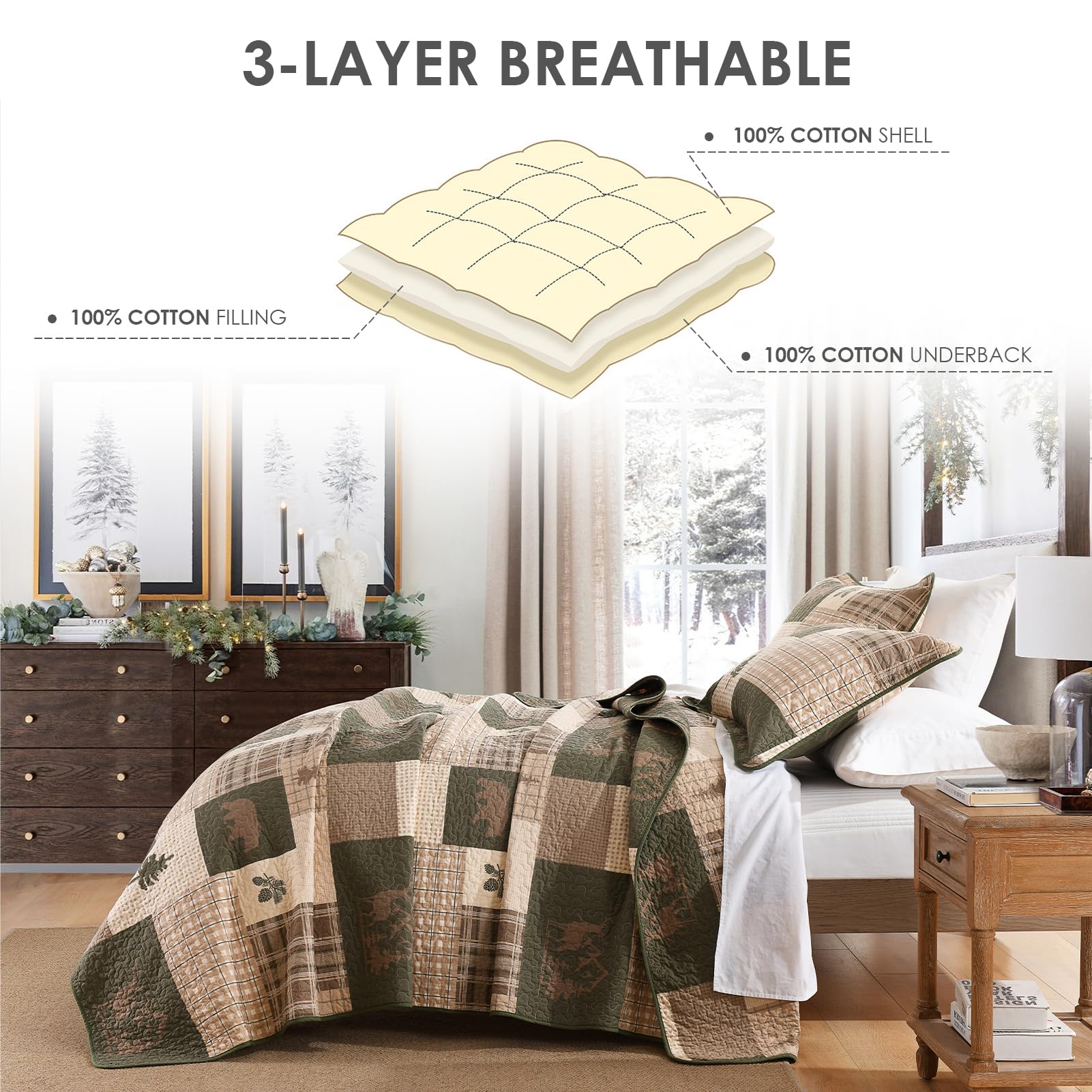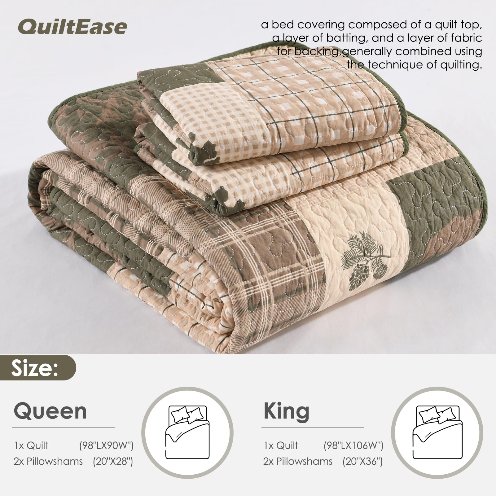 Edredón QuiltEase Cabin Plaid Tamaño Queen – Juego de