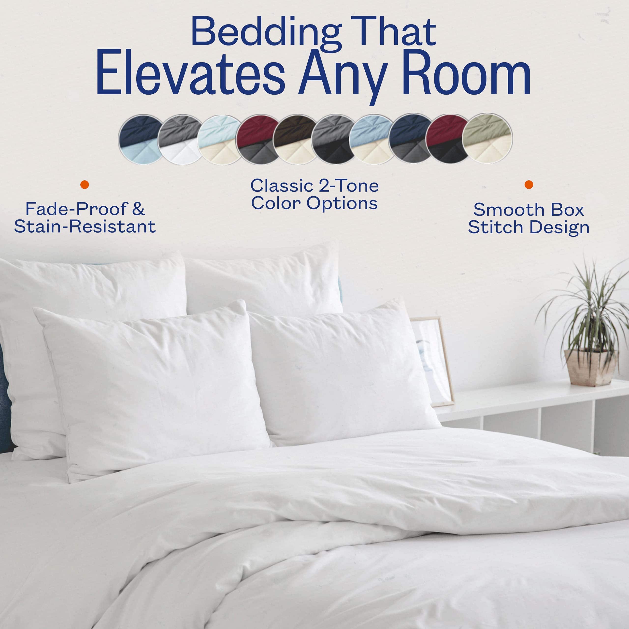 1. PERFECTAMENTE MULLIDO – La altura del lujo y la comodidad te espera con nuestro edredón tamaño king y california king. Es un edredón tan suave que sentirás que estás acostado entre las nubes. 2. COMODIDAD TODO EL AÑO – Un edredón para todas las estaciones es una forma excepcional de mantenerse acogedor. Nuestro edredón extra esponjoso te mantendrá fresco en noches calurosas de verano y agradablemente cálido en las frías noches de invierno. 3. CALIDAD DE LUJO – Haz realidad el edredón de tus sueños con este edredón premium de alternativa de plumón. Cada uno está hecho con materiales ultra suaves y transpirables y dobladillos duraderos cosidos a la perfección. 4. DISEÑO REVERSIBLE – Desde blanco y gris, hasta azul marino e marfil, este edredón tamaño king y california king viene en 8 combinaciones de colores diferentes para transformar cualquier dormitorio en un santuario de sueño de lujo. 5. FÁCIL CUIDADO – Independientemente de si necesitas edredones tamaño queen, king o twin, deberían ser fáciles de limpiar. Todos los edredones de esta colección son lavables a máquina y aptos para secadora.