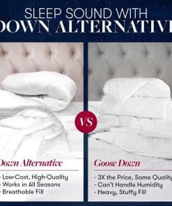 1. SUAVIDAD LUXURIOSA TODO EL AÑO Nuestro edredón alternativo de plumas de ganso está lleno de microfibras sintéticas para ofrecer comodidad durante todo el año. También puede usarlo como un relleno nórdico o como un edredón independiente.