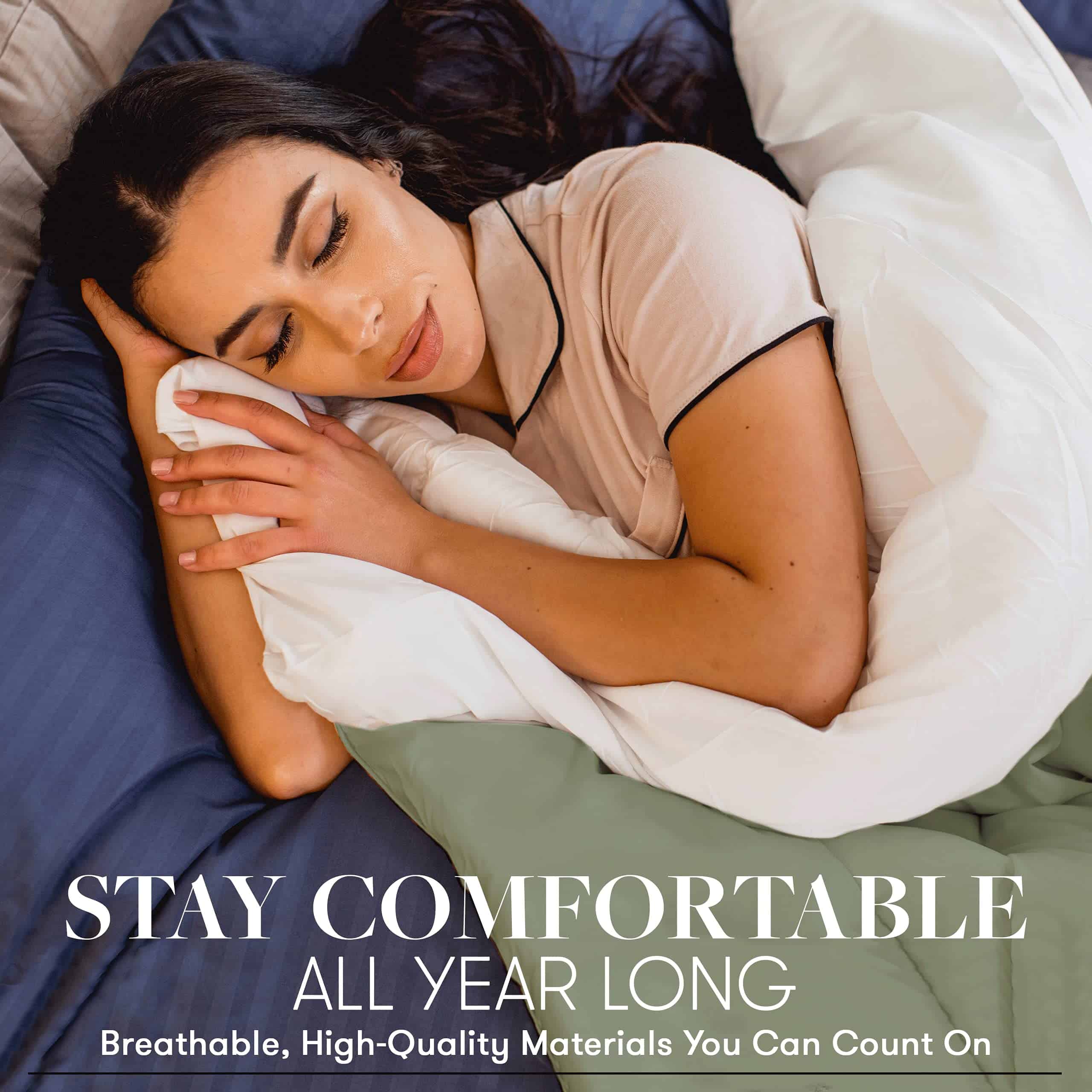 2. ARTESANÍA Y DISEÑO EXPERTO – Duerma con la máxima comodidad con nuestra Colección de edredones alternativos. Nuestra obra maestra está confeccionada con costuras precisas y duraderas, lo que le da a este producto una excelente longevidad. Nuestro esquema de colores reversible agrega clase y estilo al diseño de su dormitorio.