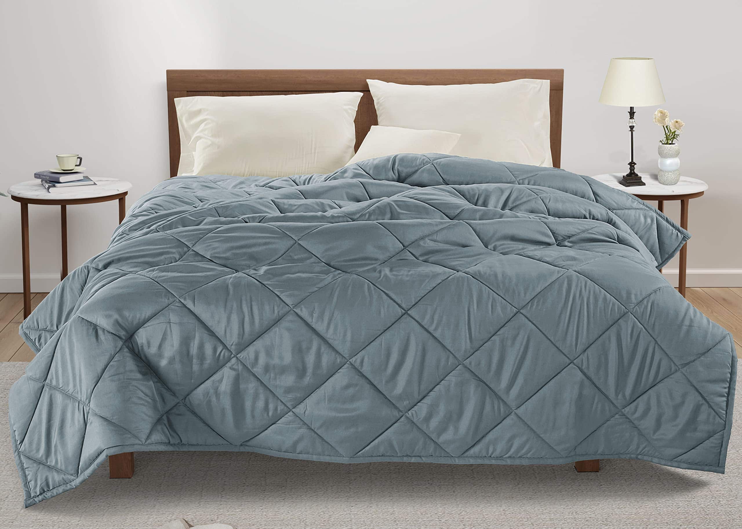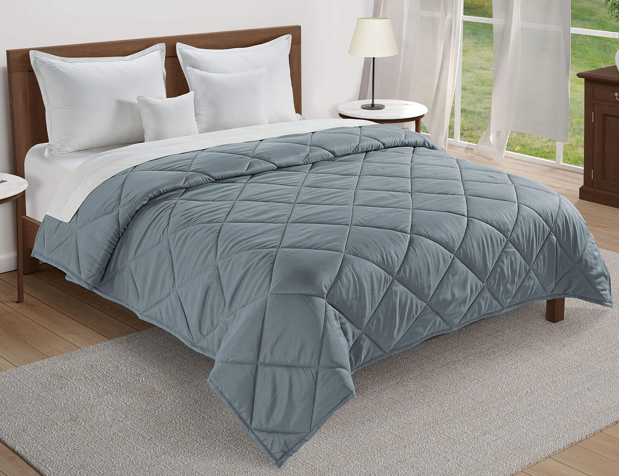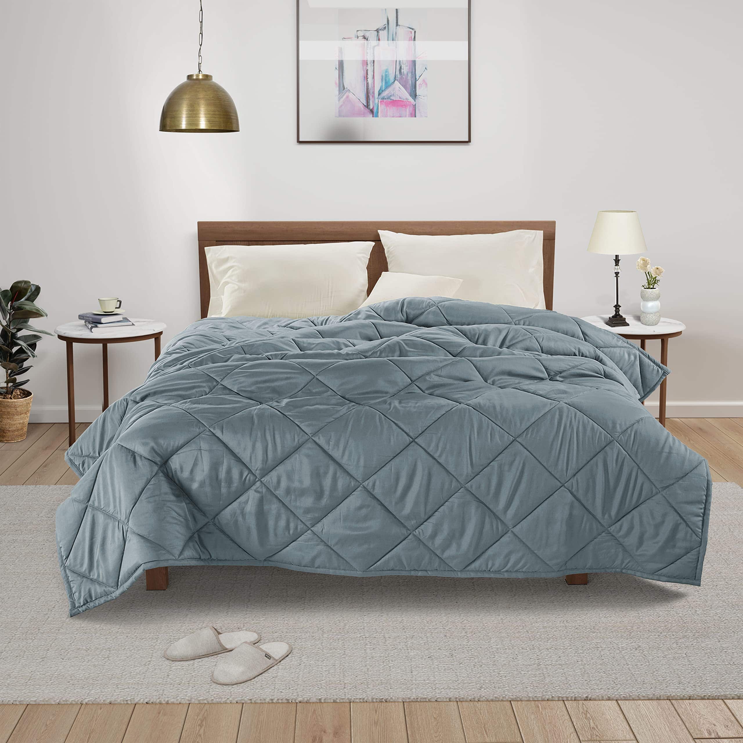 Agrega otra capa de calor y comodidad a tu cama con este edredón ligero de alta calidad para todas las estaciones. El relleno de poliéster al 100% es suave y reconfortante, lo que hace que esta manta sea una excelente alternativa cálida y acogedora. La cara de microfibra acolchada en caja está terminada con ribete de satén y rellena de poliéster esponjoso para el calor. Elige entre tres tamaños y muchos colores versátiles para combinar con tu ropa de cama. Twin: 68 x 90 Full/queen: 88 x 90 King: 108 x 90