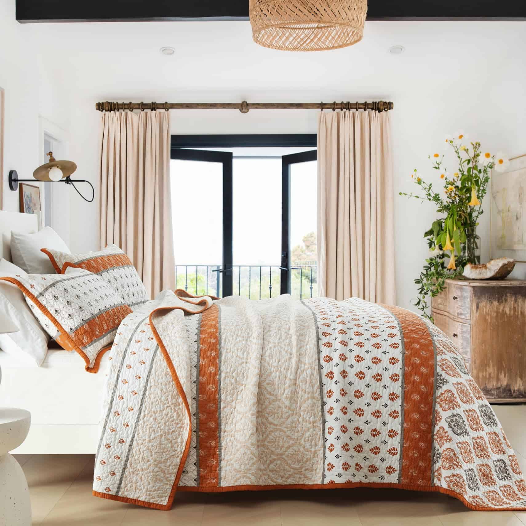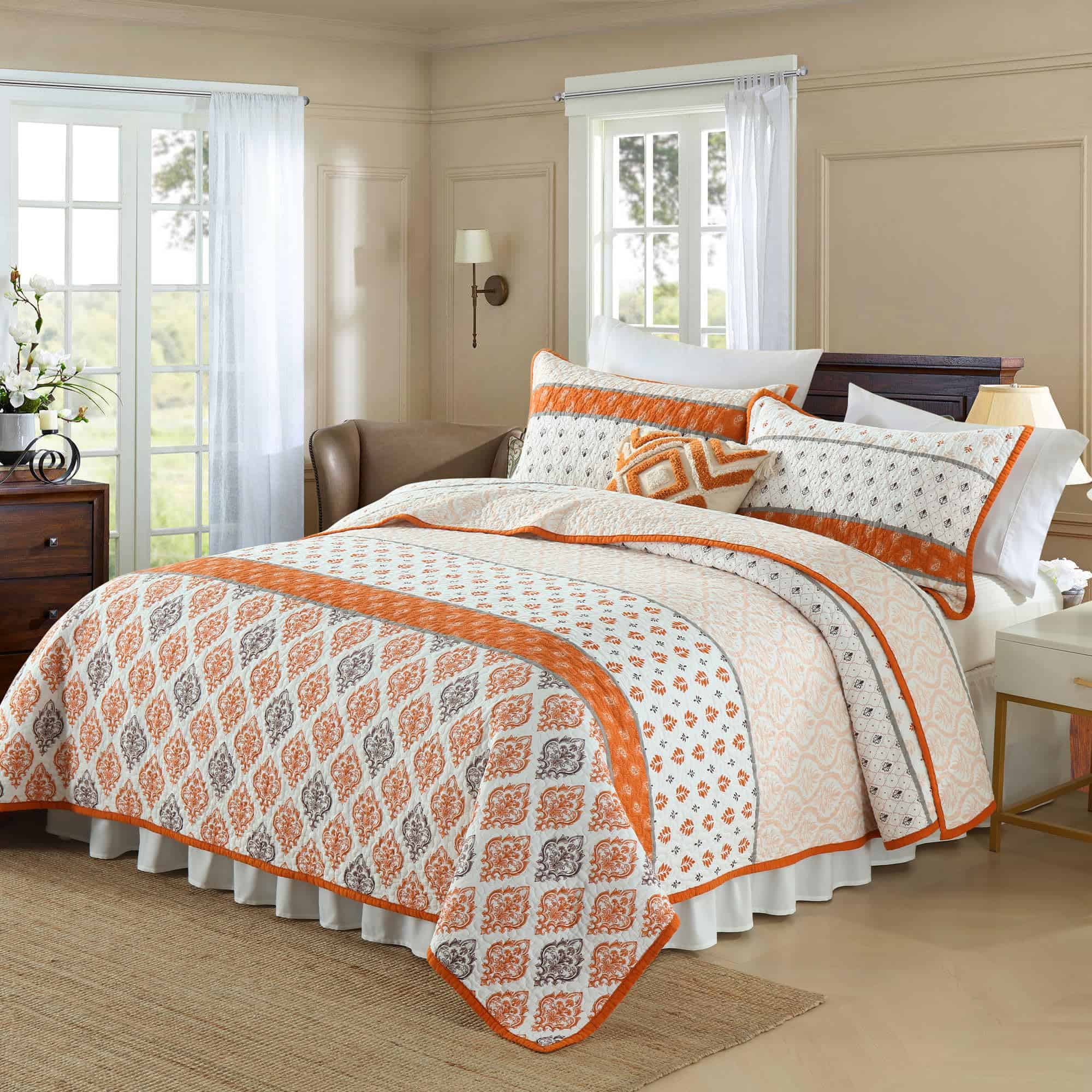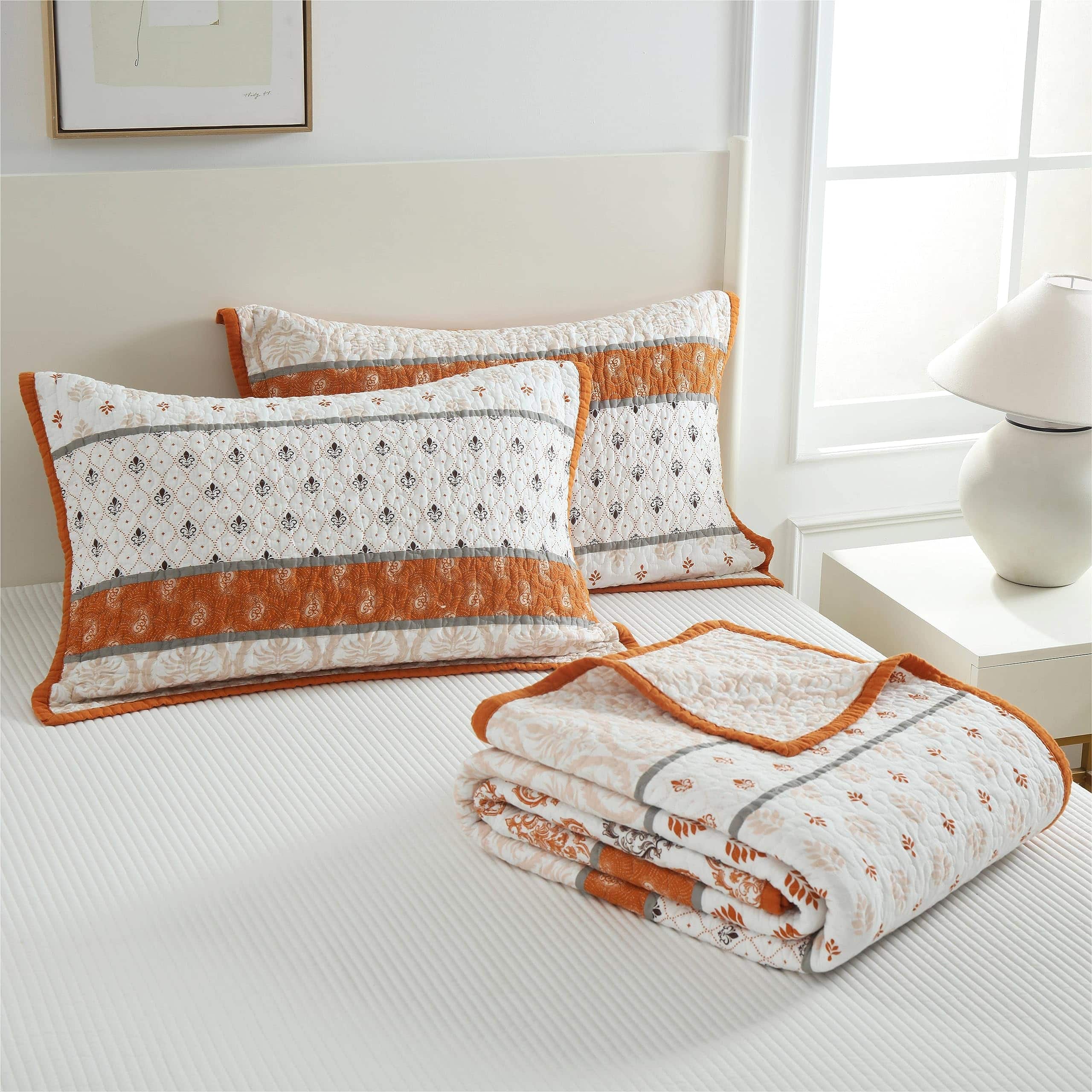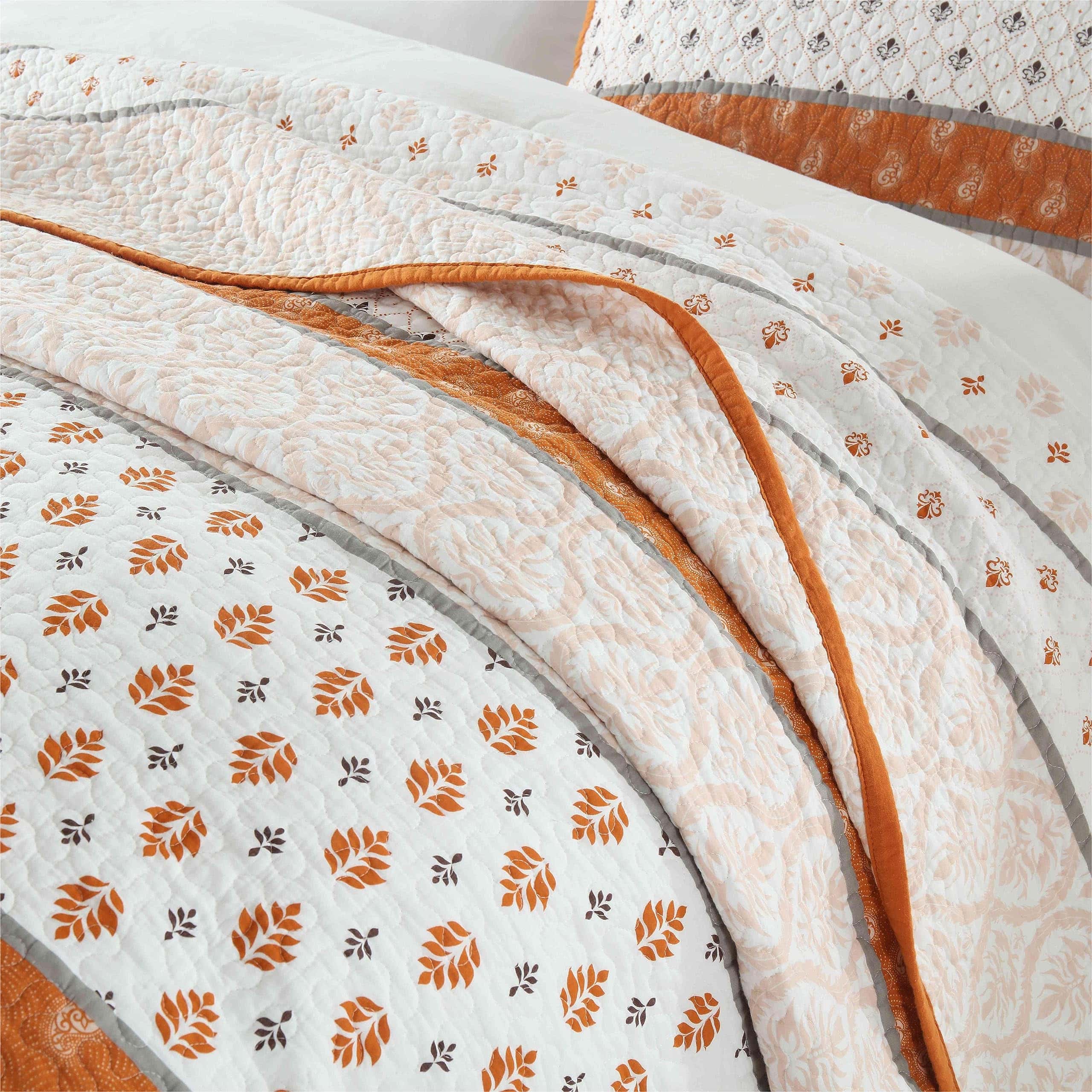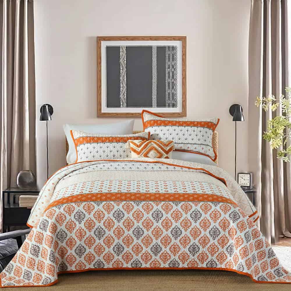 2. Colcha Ligera: Nuestro edredón tamaño king con detalles florales y su encanto campestre en tonos naranja y blanco, ligero pero cálido, puede usarse como manta en primavera y verano, como un juego de edredón tamaño king en otoño e invierno.