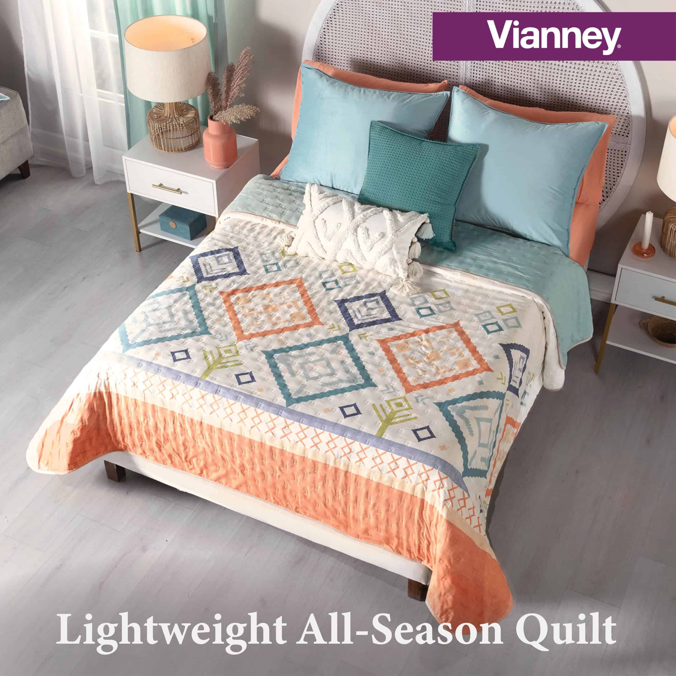 El Edredón King de Vianney, con el diseño Novo Comitan, ofrece confort y estilo de lujo para tu dormitorio. Con medidas de 110×93 pulgadas, este edredón suave y acogedor tiene el tamaño perfecto para cualquier cama king estándar, brindando una caída impresionante. Confeccionado con materiales ultrafinos de alta calidad, proporciona calidez sin abultamiento, lo que lo hace ideal para todas las estaciones. La manta duradera, con un acolchado especial para mayor suavidad, es una elegante adición a cualquier colección de ropa de cama. Vianney se compromete al confort orientado a la familia, ofreciendo opciones de ropa de cama premium para todas las edades para ayudar a crear un hogar acogedor.