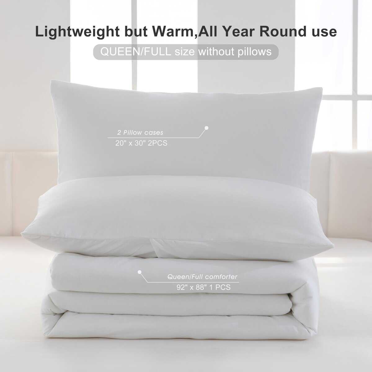 Edredón ultra suave blanco tamaño Queen – 3 piezas de