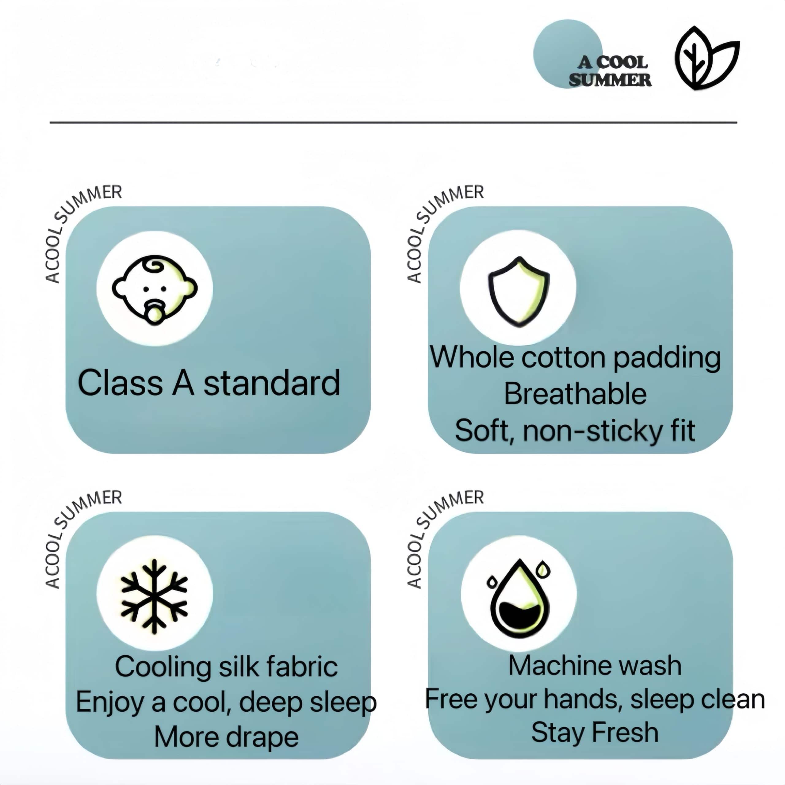 Este edreón ligero y transpirable ofrece dos tamaños para elegir: edredón infantil (siesta) tamaño: 120×150 cm, edredón doble tamaño: 200×230 cm; dos colores disponibles: azul cielo, verde menta. Ambos lados del edredón están hechos de tela de seda super suave fresca con tecnología japonesa, que puede absorber rápidamente el calor y la humedad, disipación eficiente y rápida del calor, valor Q-max de 0.31 justo, relleno de alta calidad de algodón de seda para formar una estructura hueca 3D, permitiendo más flujo de aire, proporcionando de manera duradera una temperatura ideal de 28 – 32 para un sueño profundo, ni muy frío ni muy caliente, adecuado para personas que buscan frescura. El edredón es suave y transpirable, sin aditivos químicos, puro y natural, te permite experimentar la nube de suavidad. Toque de seda fresco, suave y transpirable, sin importar la primavera, verano u otoño, te mantiene cómodo, seco y sin pegajosidad, te acompaña para dormir tranquilamente. Este edredón suave y transpirable de las cuatro estaciones está hecho con tecnología de acolchado de aguja única para garantizar una conexión más estrecha en las costuras, el relleno no se desplaza o se agrupa, no se engancha, no se apelotona, sin pelusas ni pelo pegajoso, de alta calidad y duradero. Puede ser limpiado en seco, lavado a mano, a máquina, no pierde color ni se encoje. Por favor, no blanquear ni planchar el edredón, secarlo al aire sin secadora para no dañar la fibra de refrigeración. Perfecto para interiores, exteriores y donde quiera que quieras estar acogedor y suave para mantenerte fresco. Ideal para personas calurosas, sofocos durante la noche, madres calurosas y niños. Empaquetado en una caja de regalo, el mejor regalo de cumpleaños, vacaciones, Navidad, Día del Padre o Día de la Madre. Equipo de Zelakul disponible 24 horas para brindarte una experiencia de compra perfecta. ¡Haz tu pedido ahora y disfruta de un mejor sueño!