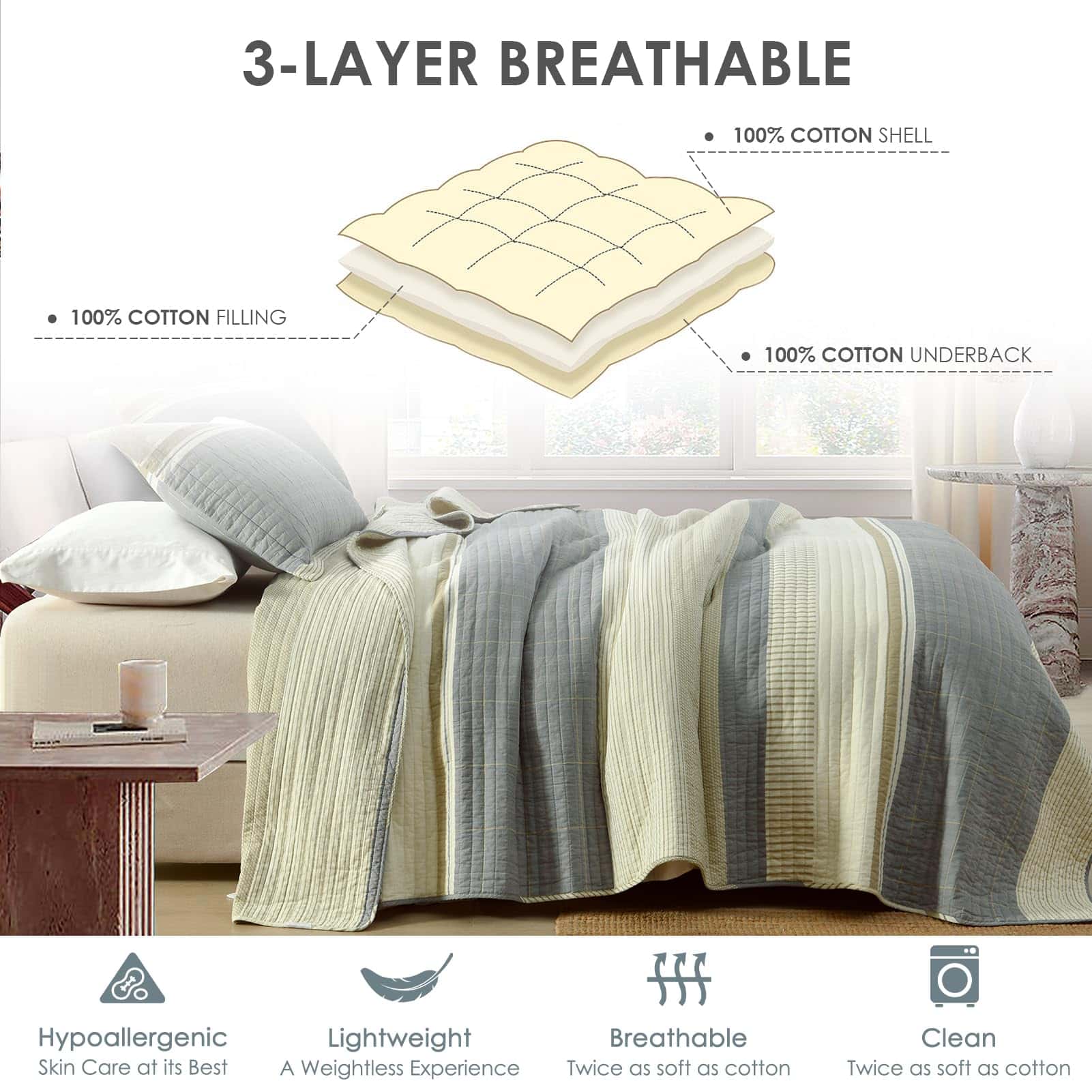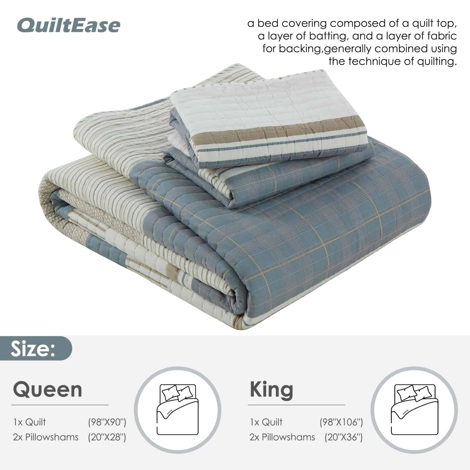 Edredones a rayas QuiltEase de tamaño King – Juego de