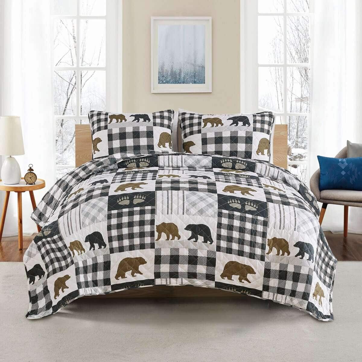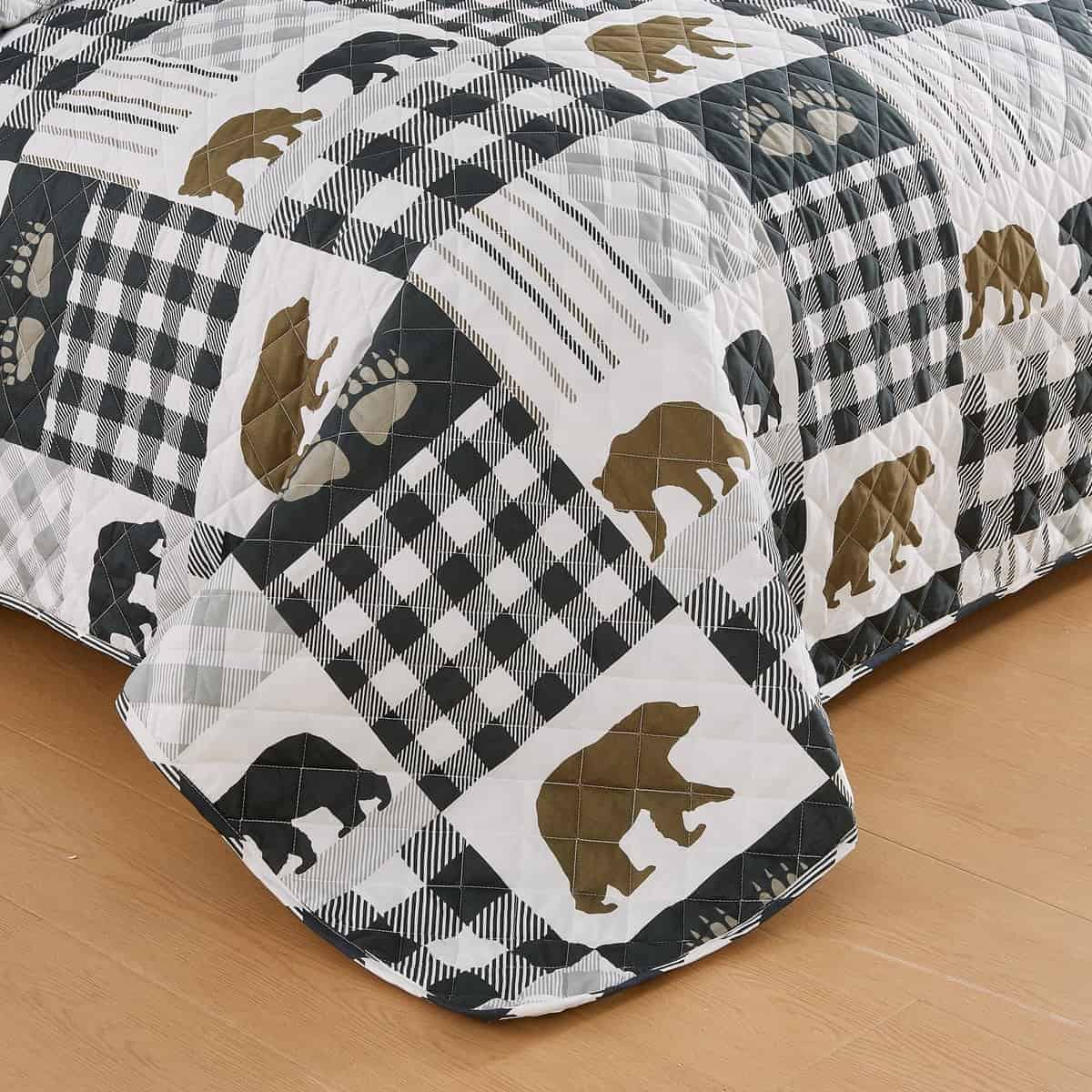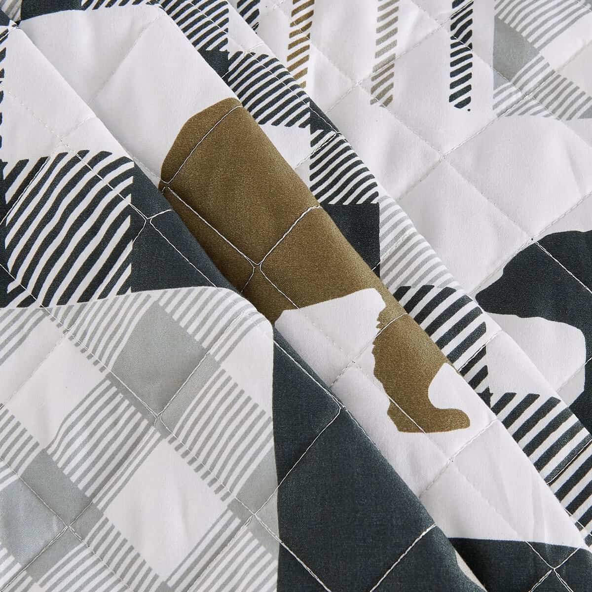 Agrega un toque rústico y moderno a tu hogar con este hermoso juego de colcha reversible de la colección Orson de 3 piezas de Market & Place. Elaborado con un tejido exterior de microfibra suave y transpirable y relleno de poliéster, este juego de colcha te mantiene acogedor y cómodo durante todo el año. Su encantador diseño de patrón a cuadros temático de cabaña con osos, ciervos y árboles es el complemento perfecto para colocar encima de tu cama. Este juego de colcha es lavable a máquina para un cuidado fácil y uso duradero. Cada set de colcha viene con una colcha y dos fundas (una funda para tamaño Twin). Elige entre tres tamaños: Twin: 1 Colcha (90″ x 66″), 1 Funda Estándar (20″ x 26″), Queen: 1 Colcha (90″ x 90″), 2 Fundas Estándar (20″ x 26″), King: 1 Colcha (90″ x 108″), 2 Fundas King (20″ x 36″)