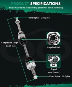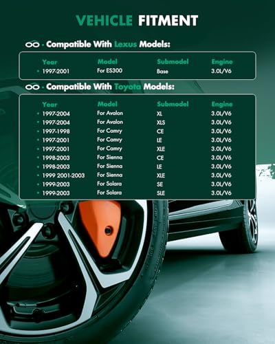 1. Compatibilidad: Eje de árbol de transmisión CV delantero derecho apto para Lexus ES300 Base 3.0L 1997-2001, Toyota Avalon XL 3.0L 1997-2004, Toyota Avalon XLS 3.0L 1997-2004, Toyota Camry CE 3.0L 1997-1998, Toyota Camry LE 3.0L 1997-2001, Toyota Camry XLE 3.0L 1997-2001, Toyota Sienna CE 3.0L 1998-2003, Toyota Sienna LE 3.0L 1998-2003, Toyota Sienna XLE 3.0L 1999 2001-2003, Toyota Solara SE 3.0L 1999-2003, Toyota Solara SLE 3.0L 1999-2003.