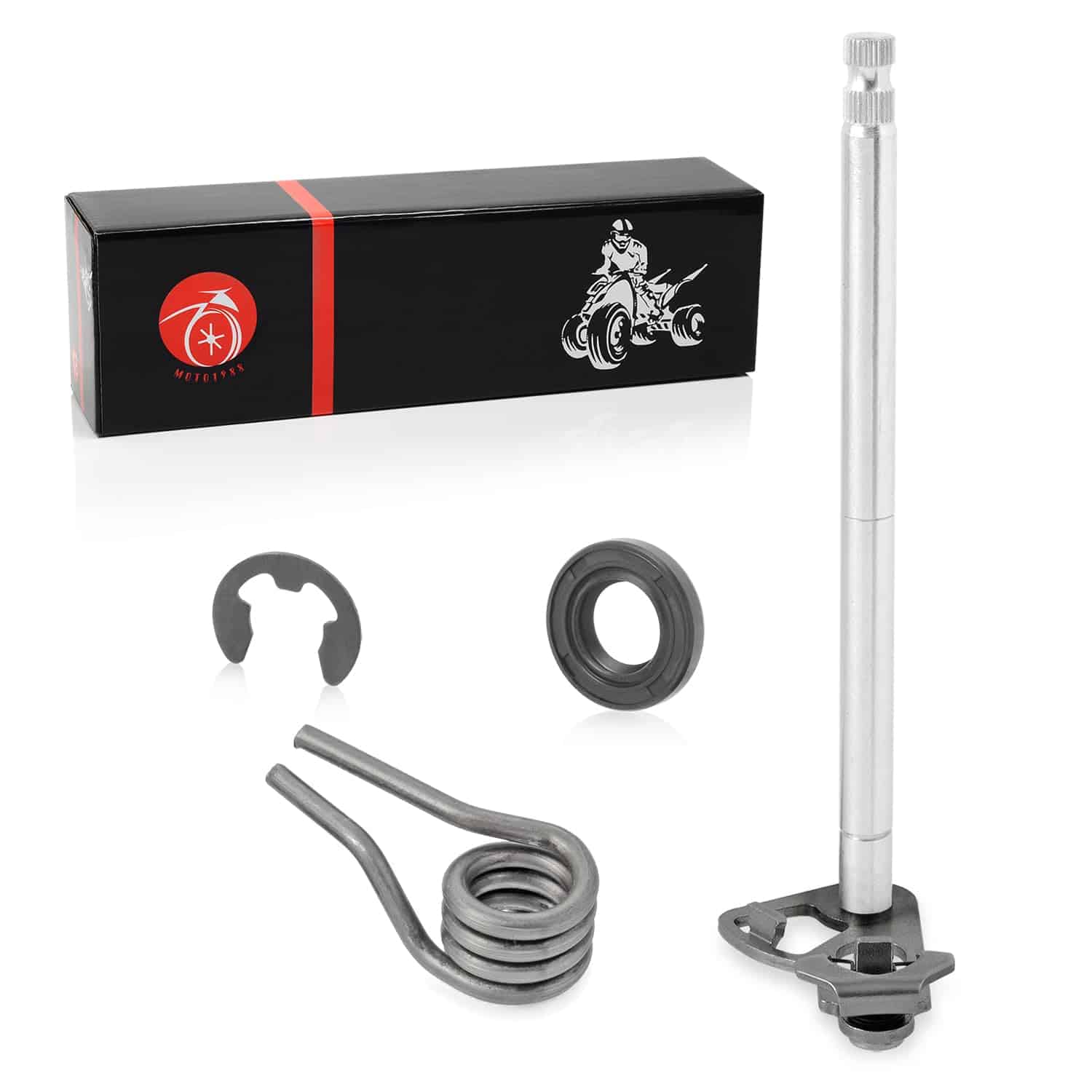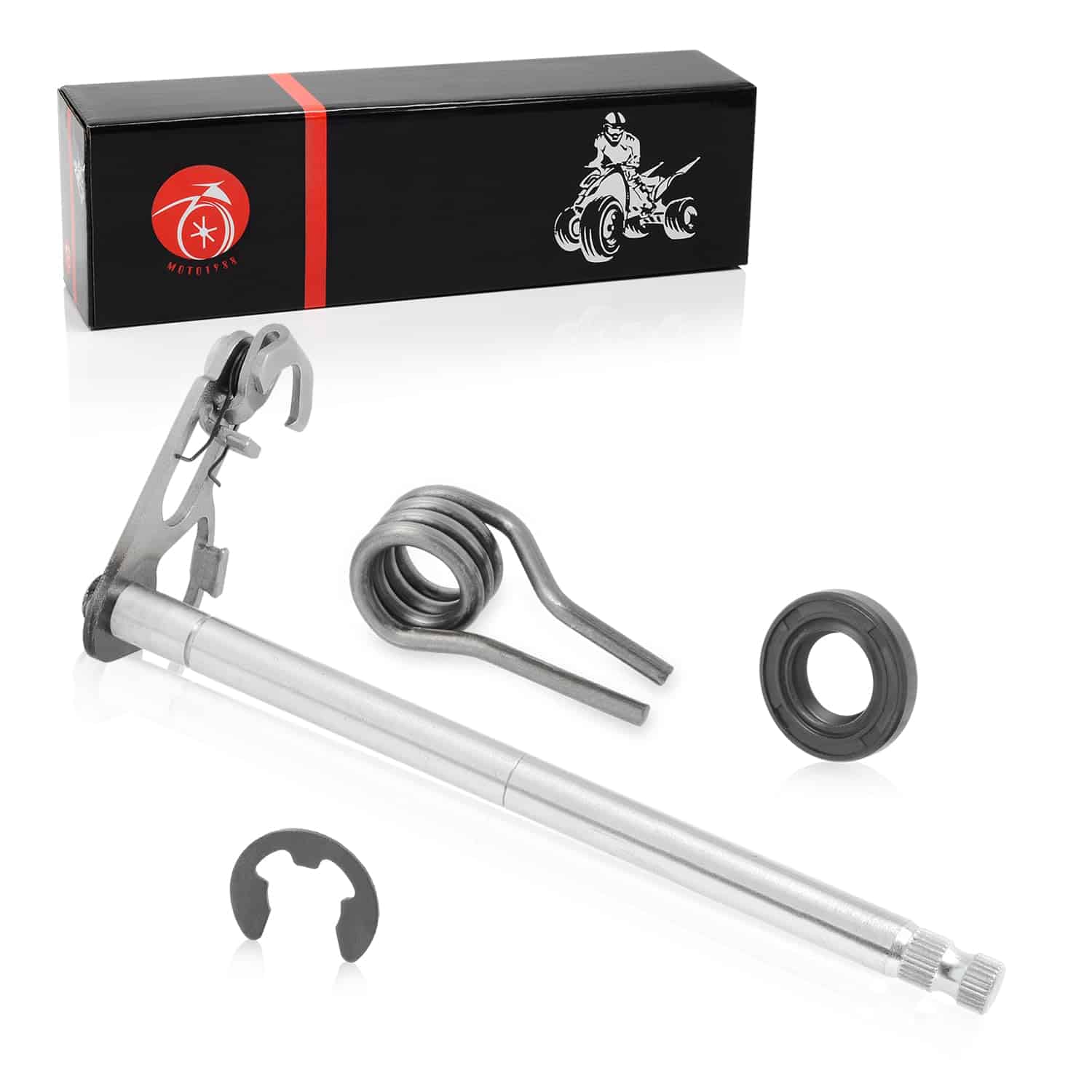Paquete: 1x eje de cambio de marchas, 1x muelle, 1x clip de torsión, 1x grapa, 1x sello de aceite