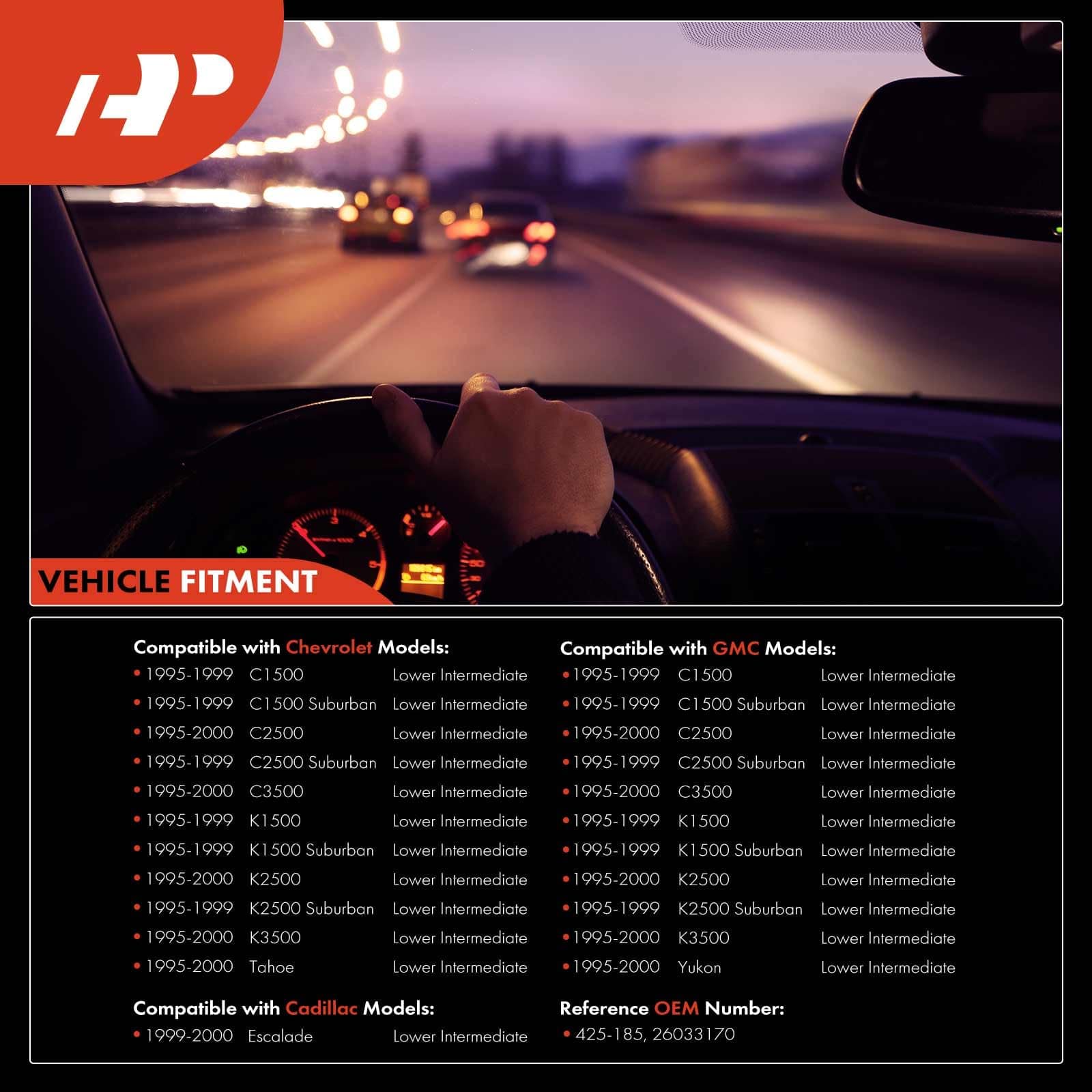 Compatible con Chevrolet Tahoe 1995-1999, Tahoe 2000 V8 5.7L, C1500/C1500 Suburban/C2500 Suburban/K1500/K1500 Suburban/K2500 Suburban 1995-1999, C2500/K2500/K3500 1995-2000, C3500 1995-2000 (Excepto 15,000 lb. GVW). Compatible con GMC Yukon 1995-1999, Yukon 2000 V8 5.7L, C1500/C1500 Suburban/C2500 Suburban/K1500/K1500 Suburban/K2500 Suburban 1995-1999, C2500/K2500/K3500 1995-2000, C3500 1995-2000 (Excepto 15,000 lb. GVW); Compatible con Cadillac Escalade 1999-2000. Número de Parte de Referencia: 425-185, 425185, 26033170. Garantía de Calidad Ilimitada de 1 Año. Si el producto tiene problemas de calidad, como daños o no es adecuado para su automóvil, comuníquese con nosotros en cualquier momento.