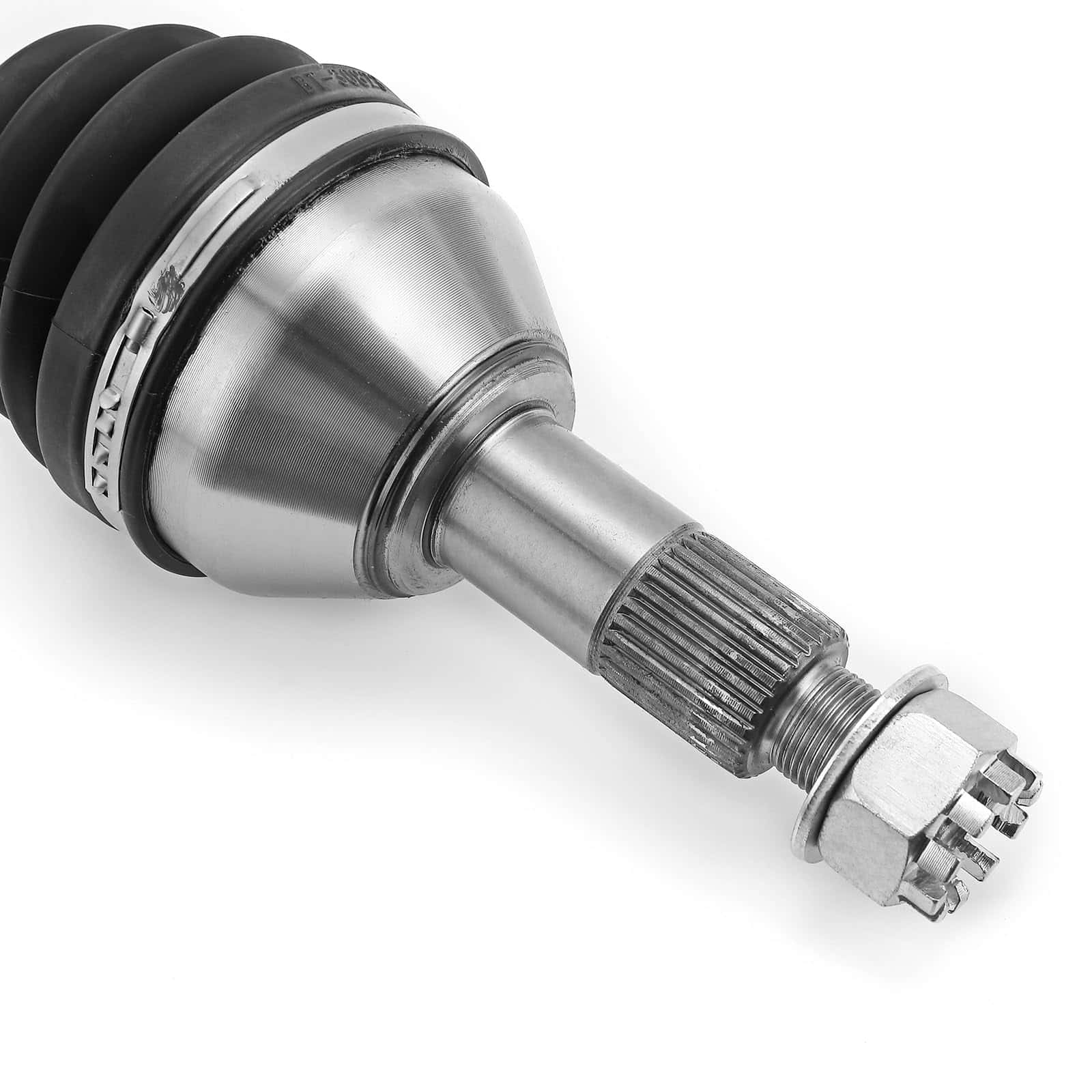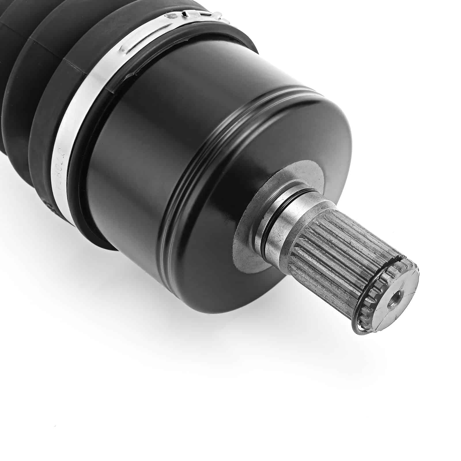 Eje de Transmisión CV Izquierdo Trasero Compatible con Can-Am 2020 2021 2022 2023 Traxter HD10 XT DPS 2020-2023 Traxter Max HD10 XT DPS 2020-2023 Traxter HD10 6×6 XT DPS 705502831. El Eje de Transmisión CV Trasero es compatible con varios modelos de Can-Am, incluyendo Defender HD10, Defender Max HD10, Defender Pro HD10, Traxter HD10, Traxter Max HD10, y Traxter Pro HD10. Está fabricado con acero cromoly 4340 de alta resistencia y viene engrasado con grasa a base de molibdeno para una mejor lubricación de las juntas. Las botas de neopreno CV brindan resistencia adicional al desgaste y a la perforación. Cada ensamblaje de eje de transmisión CV está diseñado con la última tecnología y ha sido sometido a rigurosas pruebas en el laboratorio y en el terreno para garantizar su durabilidad y rendimiento. Incluye juntas internas y externas en el eje. Las especificaciones incluyen estrías de 29 T en la junta externa, longitud comprimida de la junta externa de 3.83 pulgadas, estrías de 24 T en la junta interna, longitud comprimida de la junta interna de 1.95 pulgadas. El producto tiene dimensiones de 29 x 4.2 x 4.2 pulgadas. Se recomienda elegir el eje correcto para su ATV/UTV y se ofrece un servicio de 12 meses en caso de presentar alguna pregunta o inquietud
