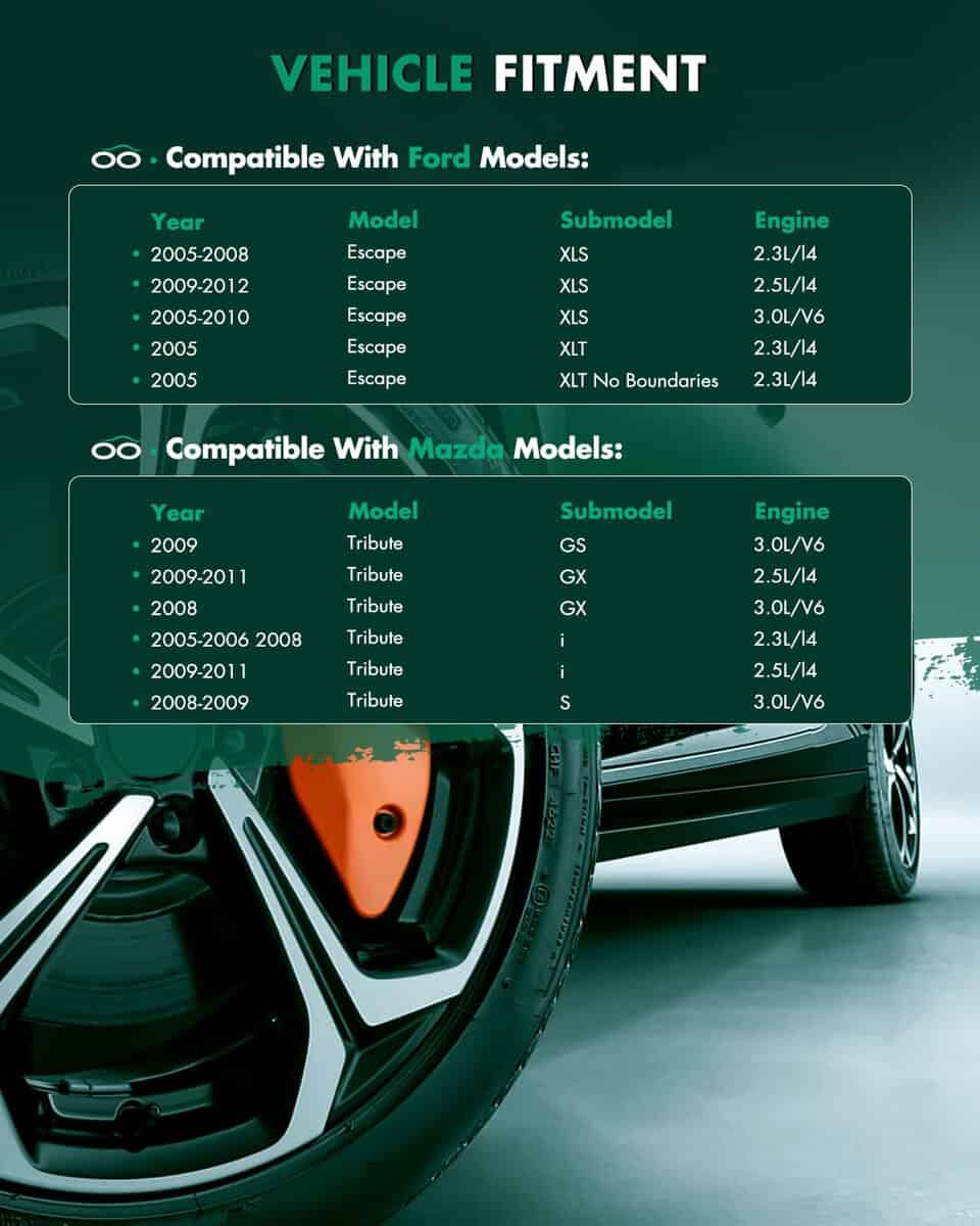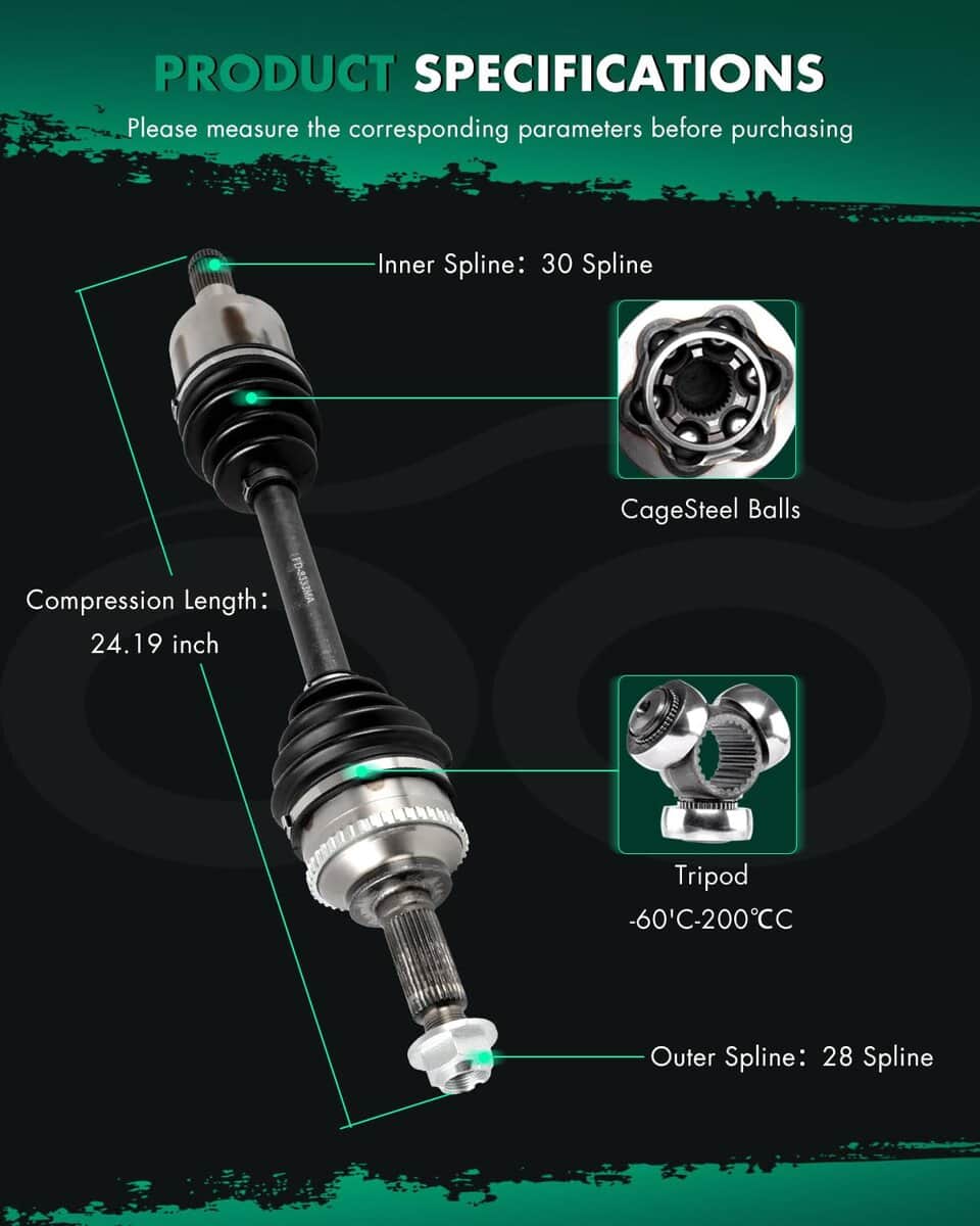 Vehículos compatibles: Ford Escape 2005-2012 2.3L 2.5L 3.0L, Mazda Tribute 2005-2008 2.3L 2.5L 3.0L. SCITOO suministra el ensamblaje del eje de transmisión de la CV para la mayoría de automóviles, SUVs, camiones y remolques. Por favor, seleccione su vehículo (año/marca/modelo/acabado) en la esquina superior izquierda de la página para confirmar la compatibilidad o consulte la información del vehículo en la descripción.