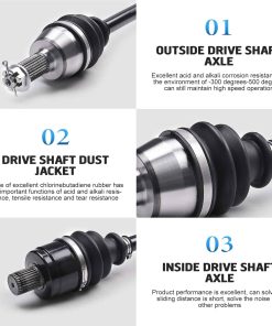 Eje de transmisión del eje trasero izquierdo KLV CV Axle Compatible con Polaris Sportsman 550 850 X2 550 XP 550 XP 850 X2 850 2013 2014 Scrambler XP 850 Scrambler XP 1000 1332642 1332809 2010-2014 es una opción de calidad para tu Polaris ATV/UTV. Este eje está diseñado para ofrecer resistencia y durabilidad superiores, con acero cromoly 4340 de alta resistencia que garantiza una larga vida útil. Las juntas homocinéticas presentan ángulos de articulación altos y están lubricadas con grasa sintética para un funcionamiento fresco y suave. Todos los componentes están mecanizados con precisión para garantizar un movimiento suave y evitar la fricción que puede generar calor excesivo. Las botas de neopreno ofrecen protección contra temperaturas extremas para mantener el eje en óptimas condiciones. Con especificaciones detalladas que incluyen medidas de longitud, diámetros y tamaños de estrías, este eje de transmisión es una opción confiable para tu vehículo todo terreno. ¡No dudes en contactarnos si tienes alguna pregunta sobre este producto!