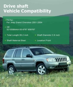 El eje de transmisión delantero SCITOO es compatible con el Jeep Grand Cherokee 2001-2004 con motor 4.0L. Este eje es parte clave del sistema de transmisión de su automóvil, encargado de transmitir la potencia generada por el motor. Cumple con estándares de alta resistencia y precisión para garantizar una larga vida útil y un rendimiento óptimo. Este eje de transmisión es una pieza de repuesto OE, fabricada para ajustarse perfectamente a su vehículo. Disfrute de una conducción potente y eficiente con el eje de transmisión delantero SCITOO.
